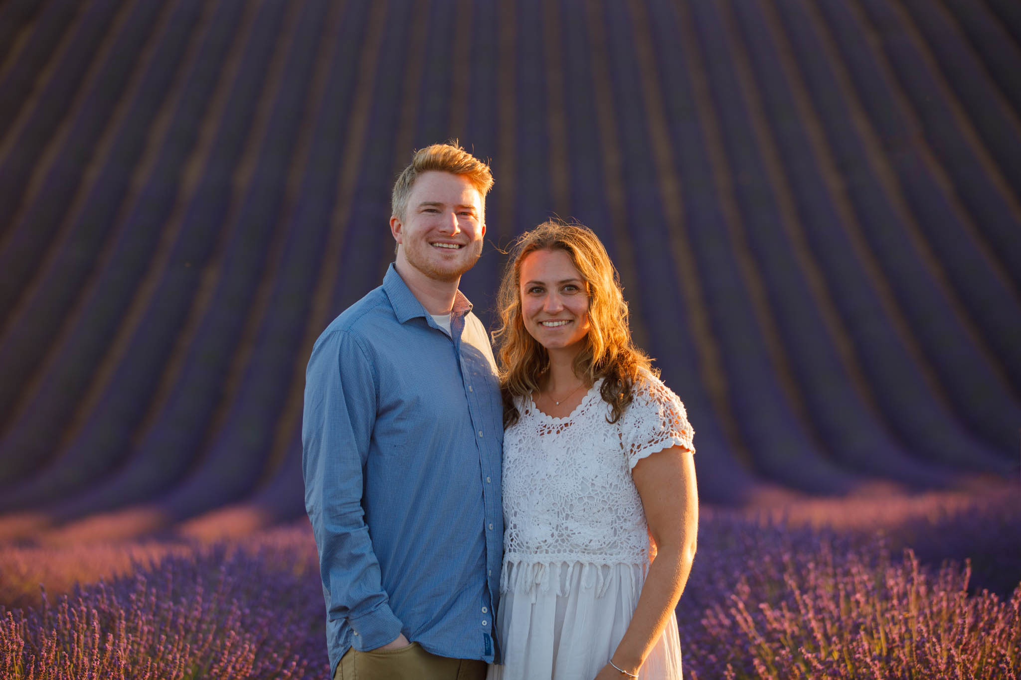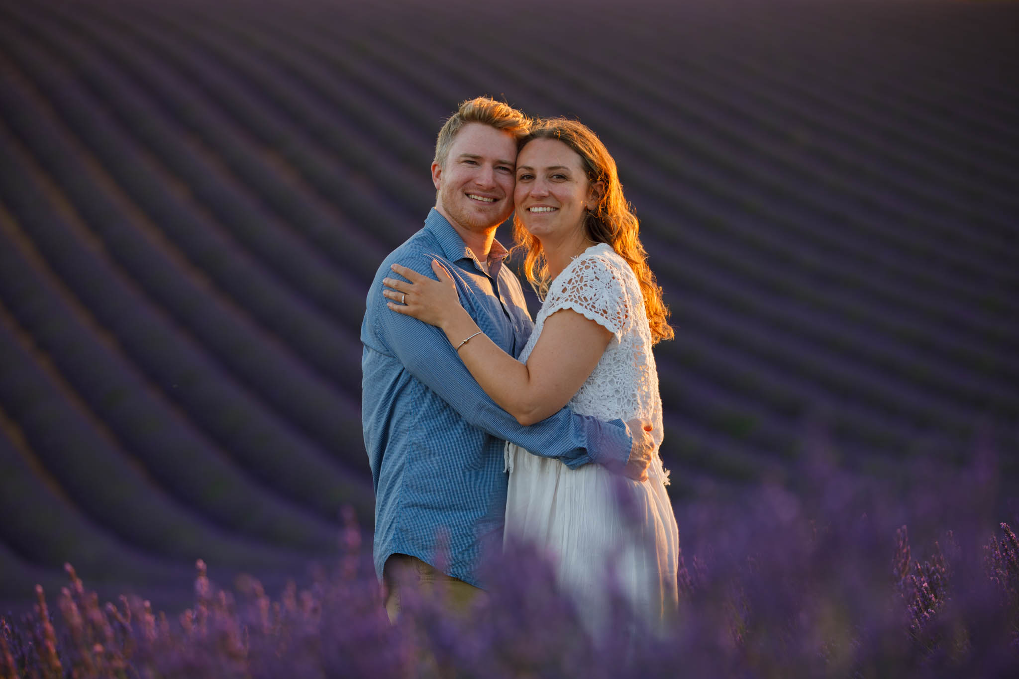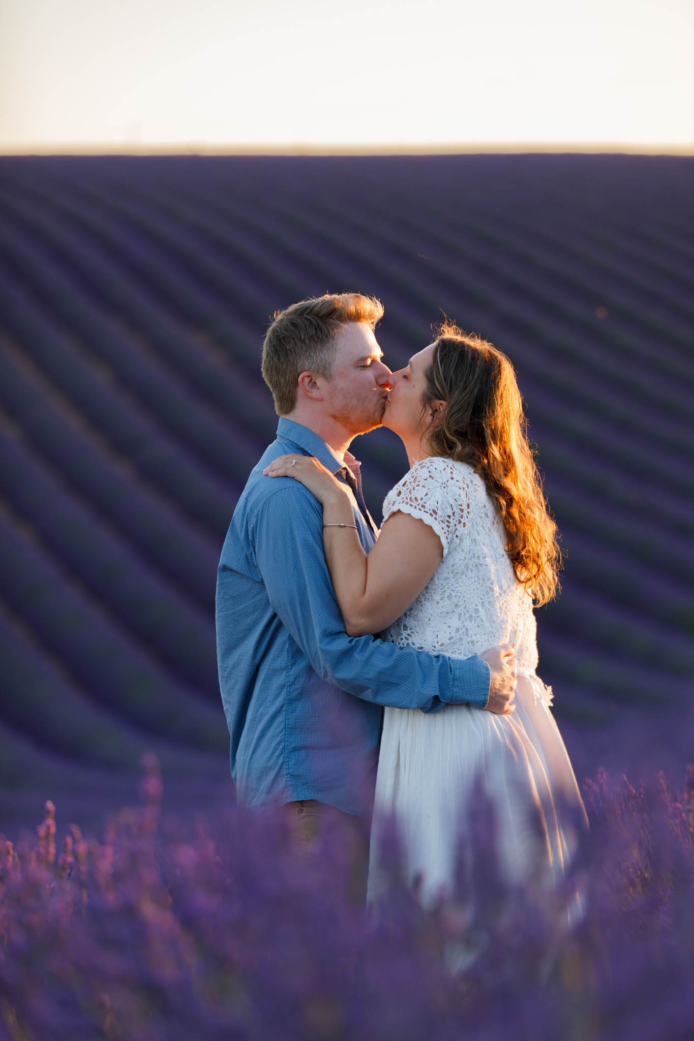 The session was scheduled from 20:30 to 21:30, which is ideal timing for sunset in early July. At that hour, the light becomes soft and golden, gently settling over the lavender and creating a warm glow across the entire field. It is one of the most flattering and romantic times of day for a proposal.