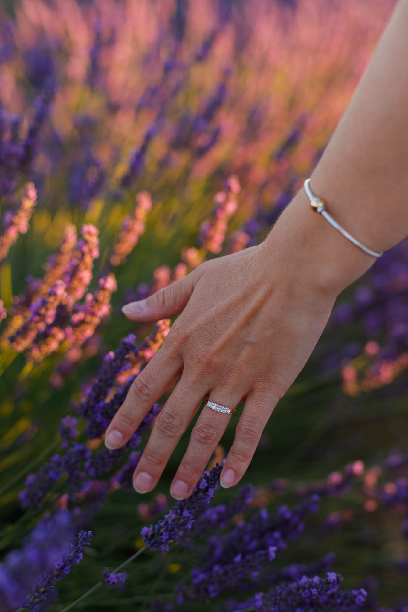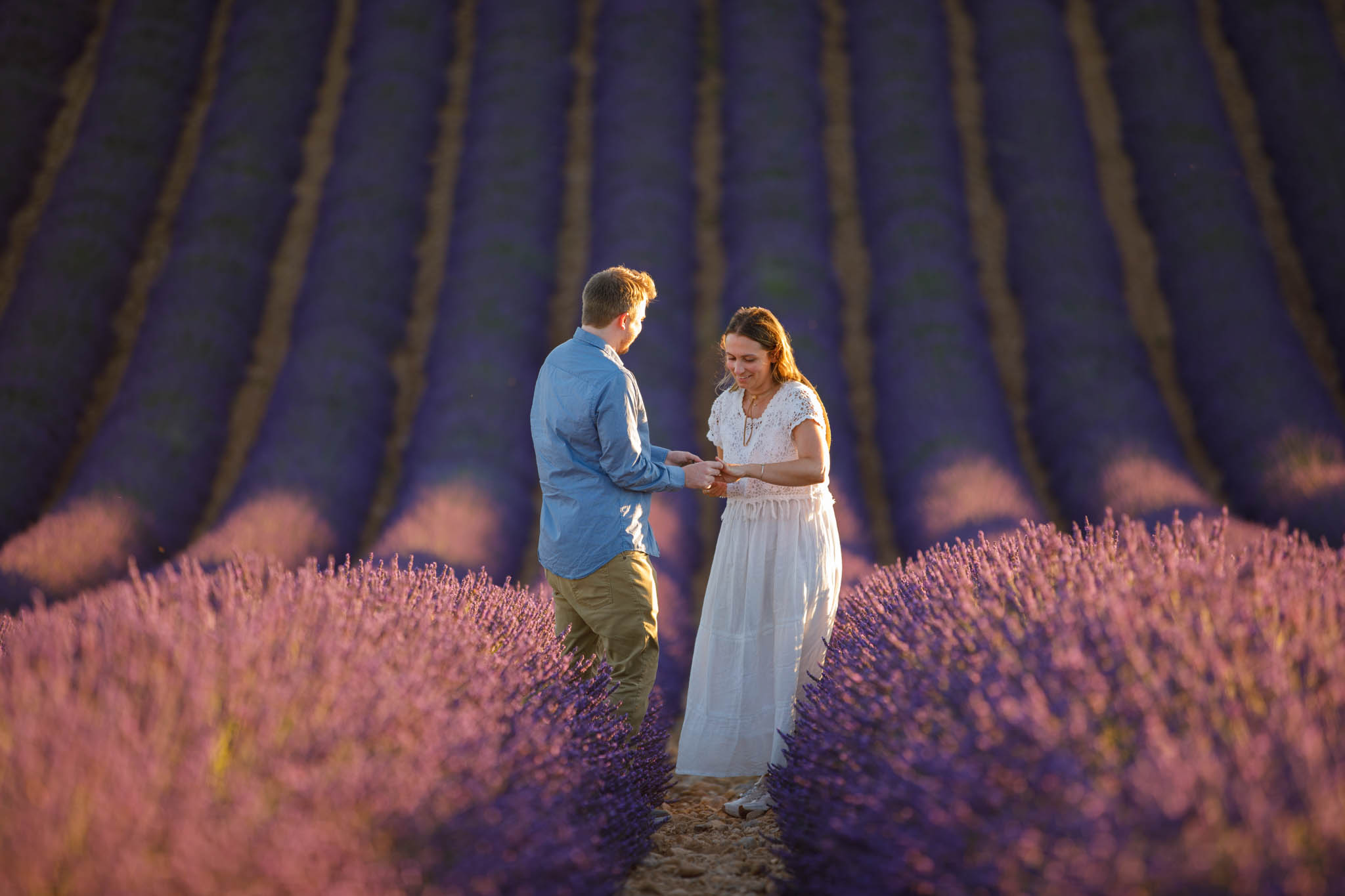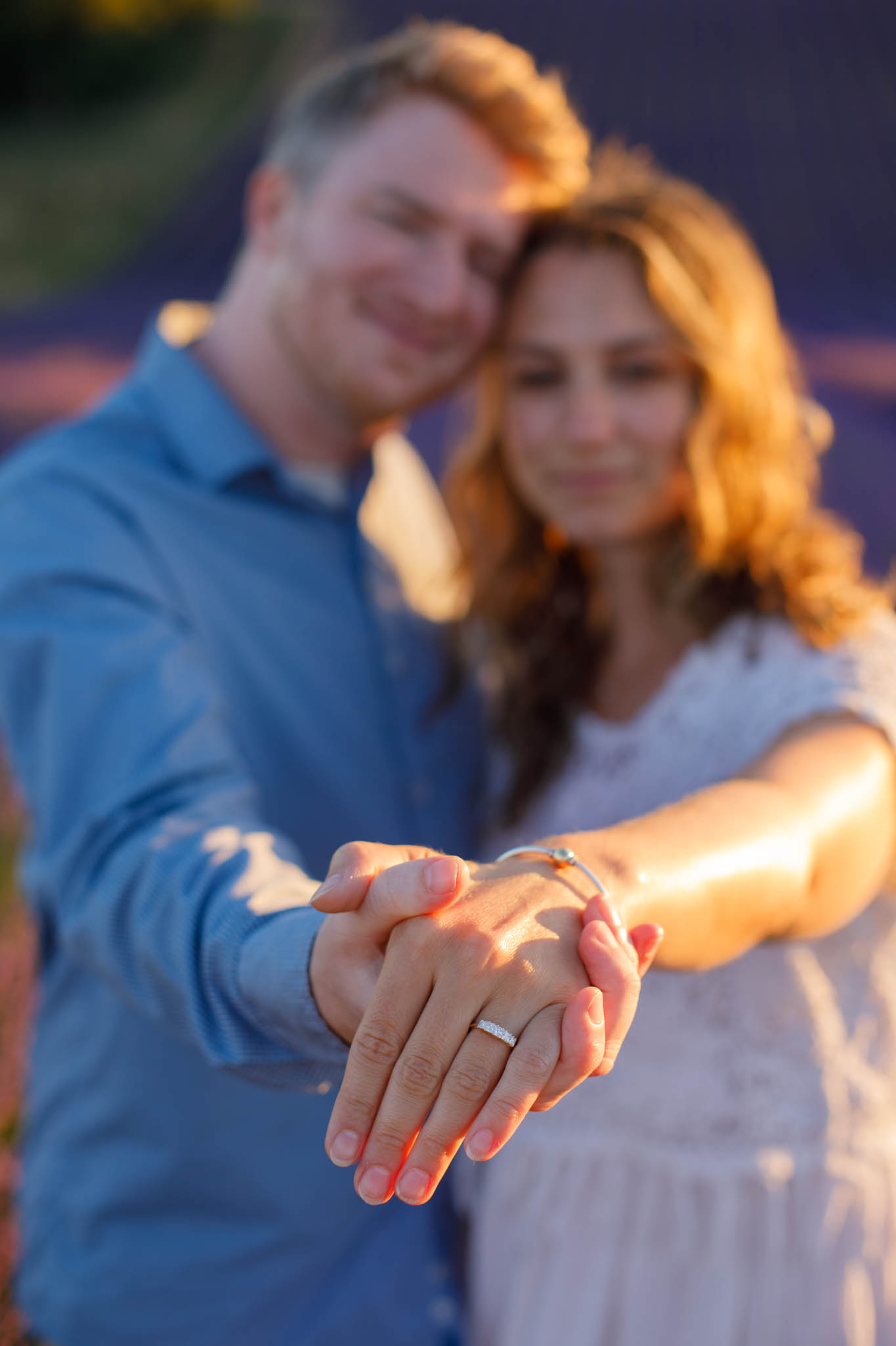 The session was scheduled from 20:30 to 21:30, which is ideal timing for sunset in early July. At that hour, the light becomes soft and golden, gently settling over the lavender and creating a warm glow across the entire field. It is one of the most flattering and romantic times of day for a proposal.