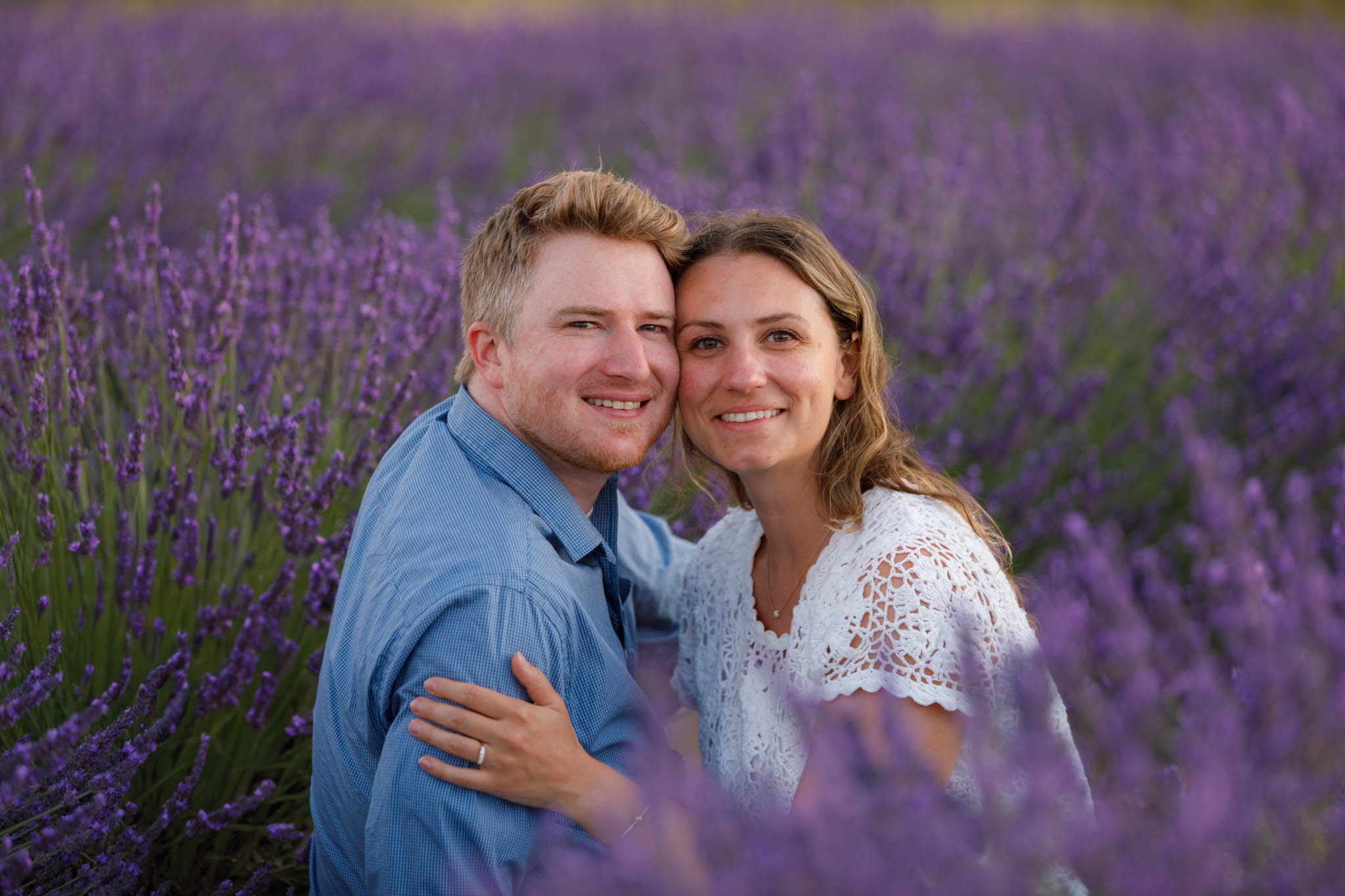 After the proposal, we stayed in the Dip Field for the rest of the session. There was no need to move anywhere else, as this location offers plenty of variety within one space. The gentle curves of the field and the depth of the lavender rows allow for different compositions without changing location.
