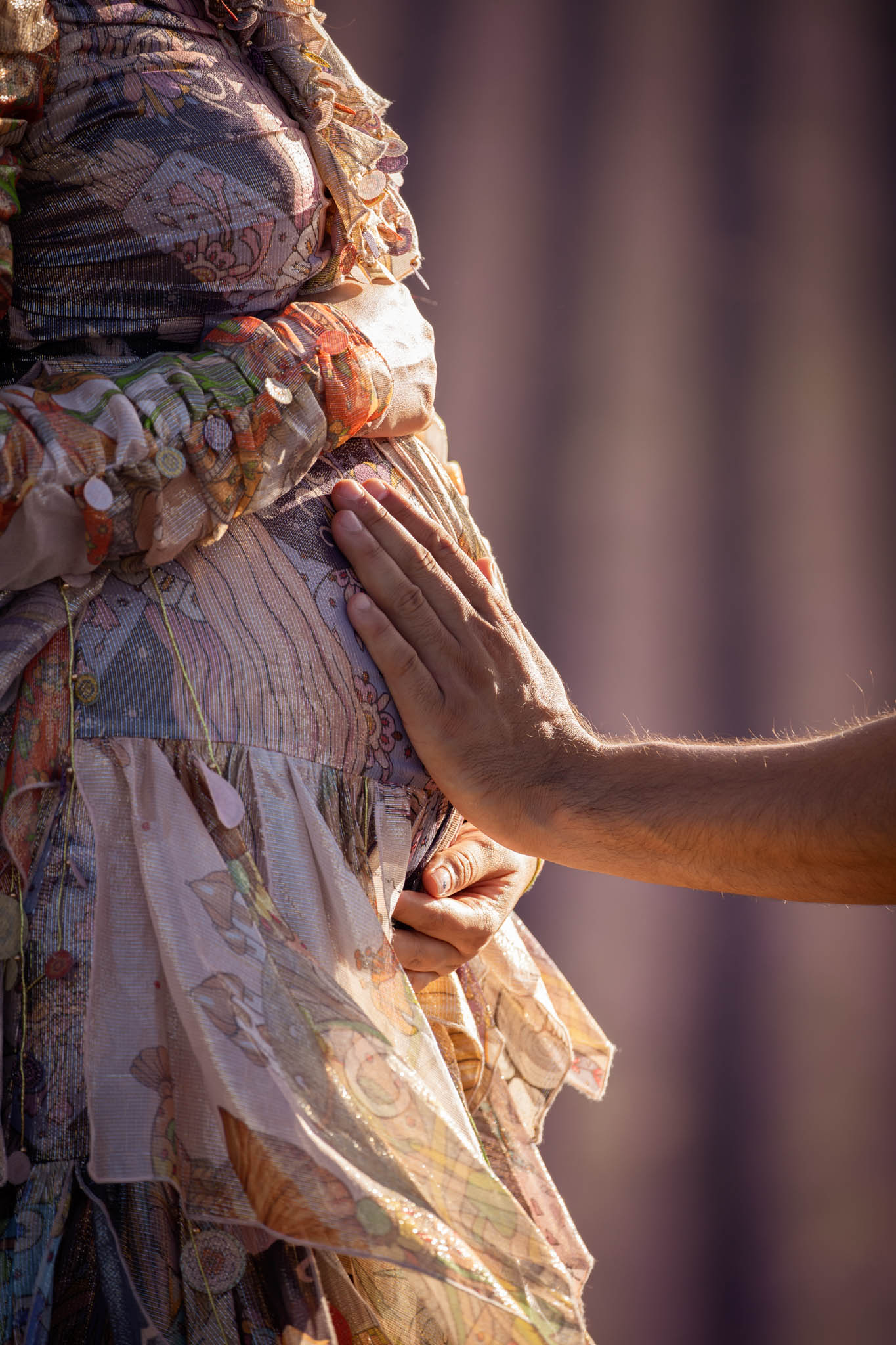 We started shooting solo shots of A, highlighting her baby bump and the props she had brought. We focused on capturing her joy, anticipation, and the natural beauty of the setting. A wore a stunning dress that beautifully showcased her baby bump, and S coordinated his outfit to match her style.