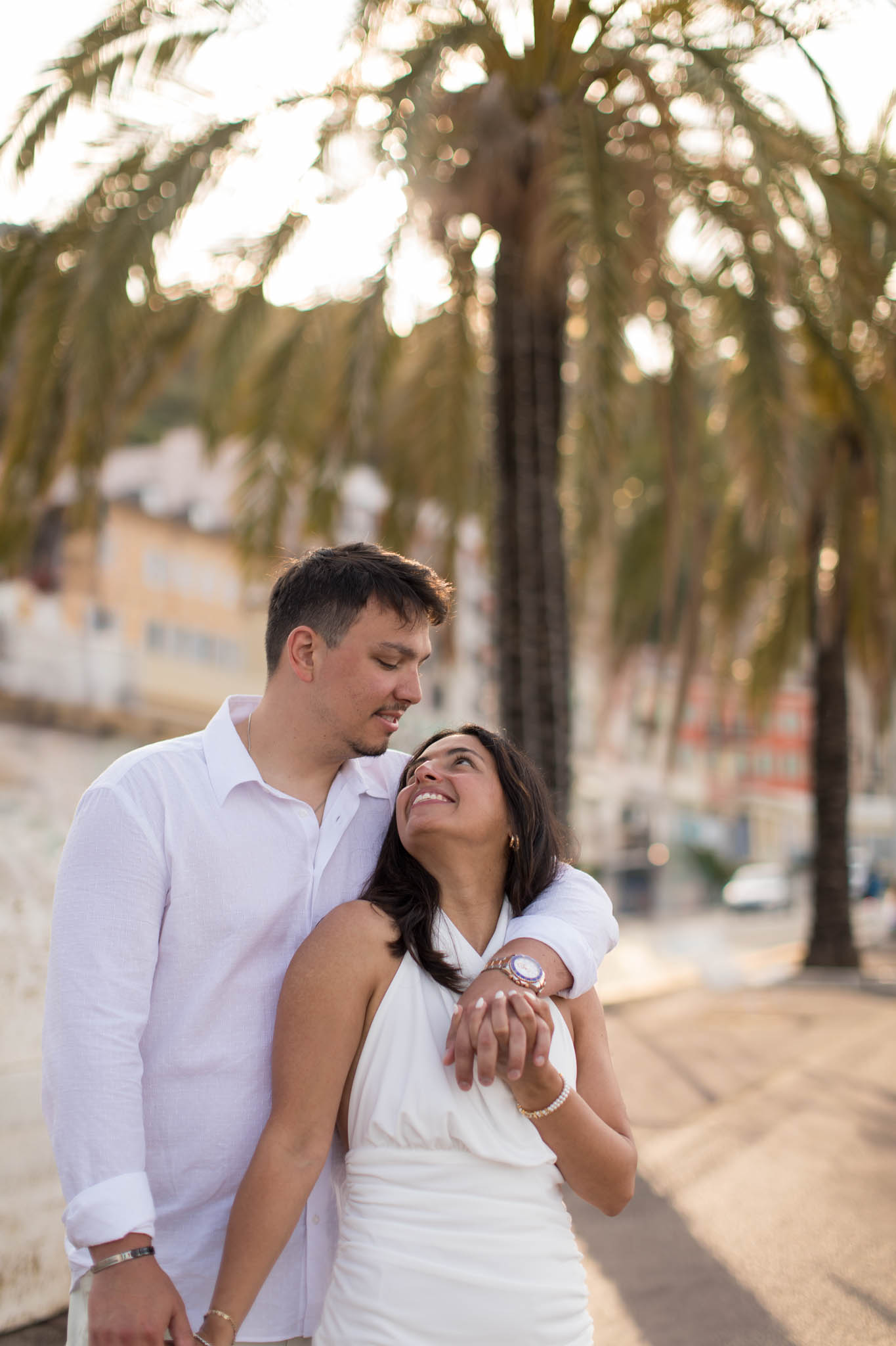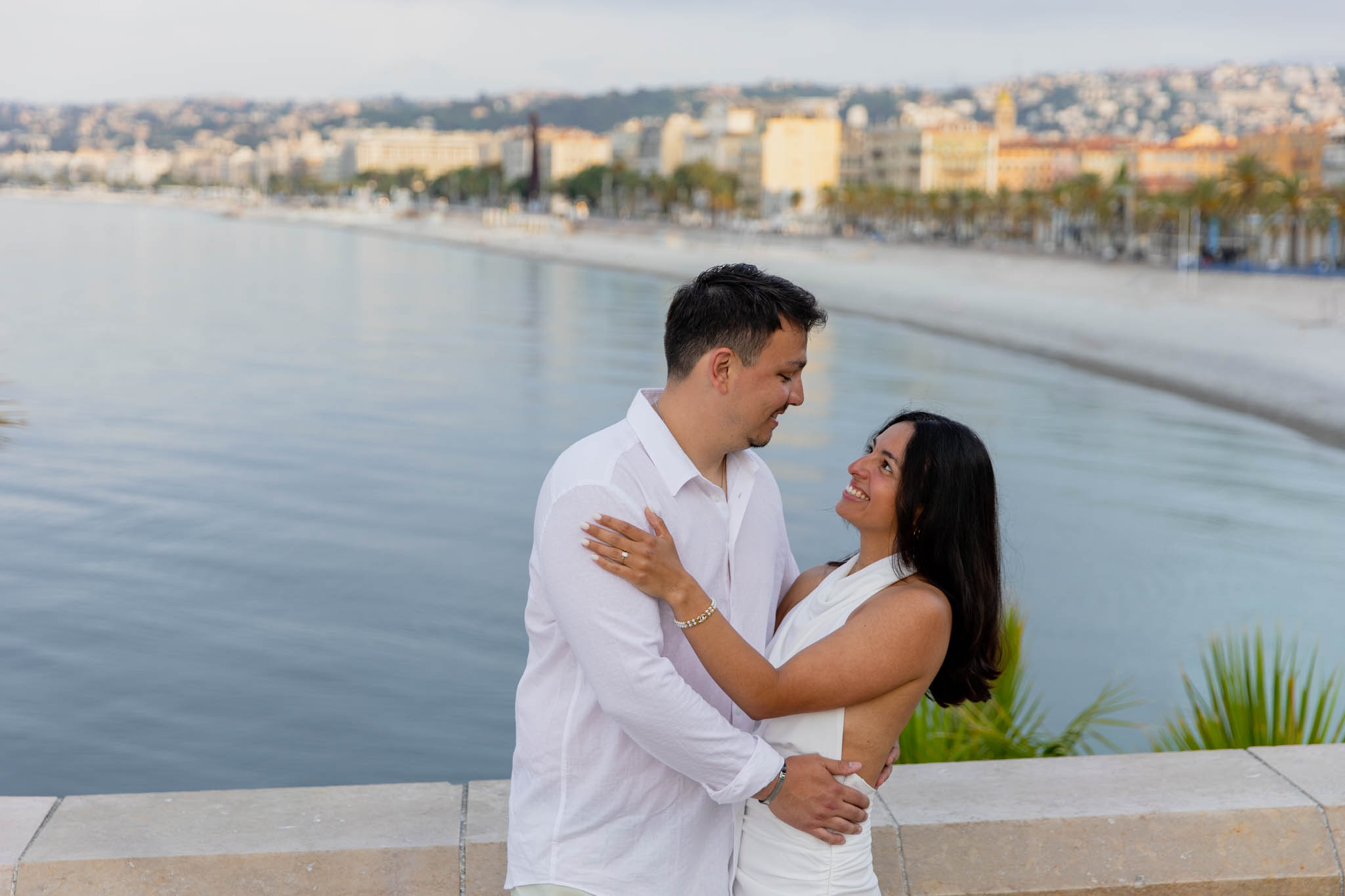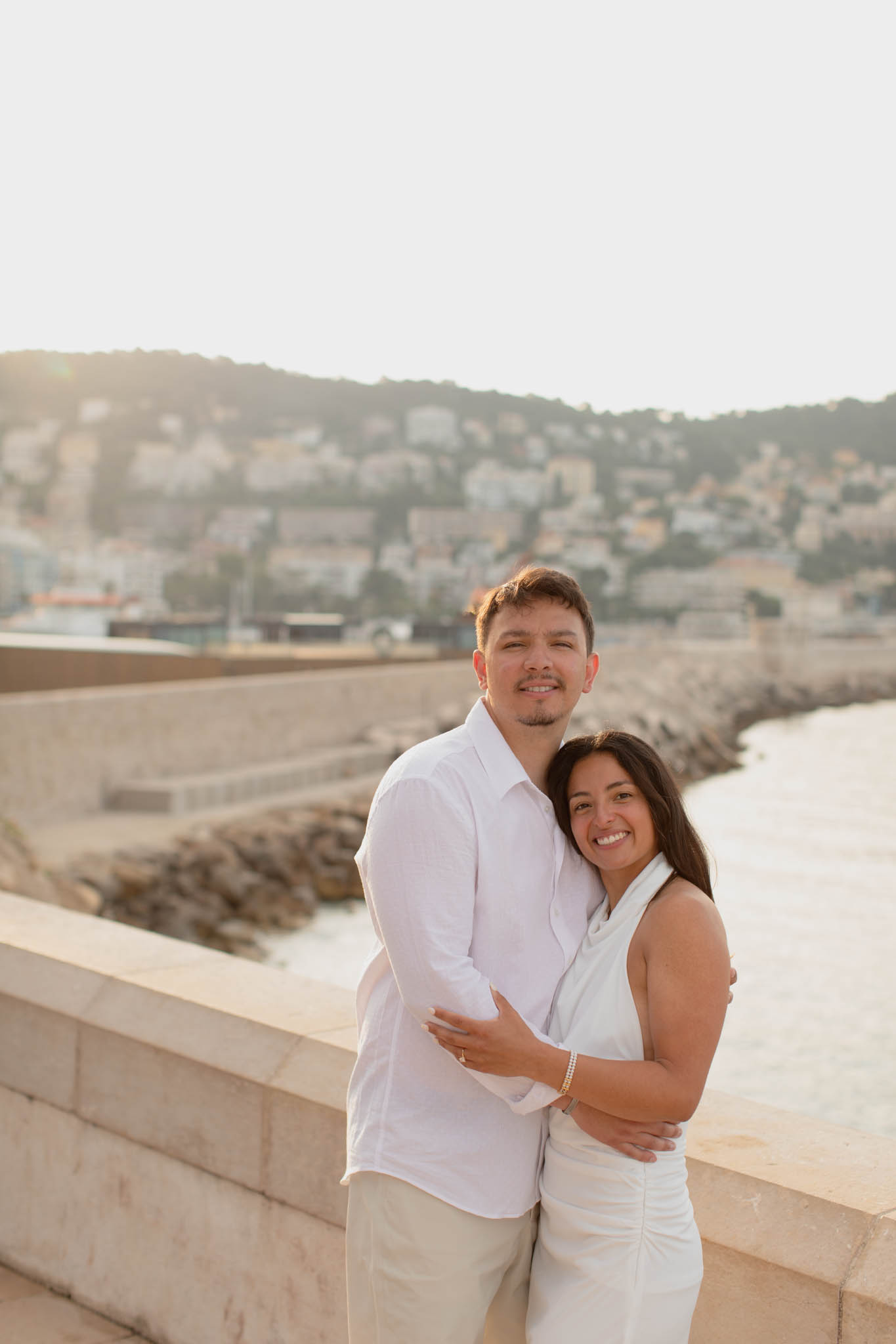 K and M had just got engaged a few days earlier in the Italian Riviera. They wanted to keep the proposal private, which meant there were no photographs of the moment itself. Now, in Nice, they came to capture their newly engaged joy in a relaxed, romantic photo session. This wasn't about recreating the proposal, but about taking time to celebrate their engagement and have beautiful memories together.