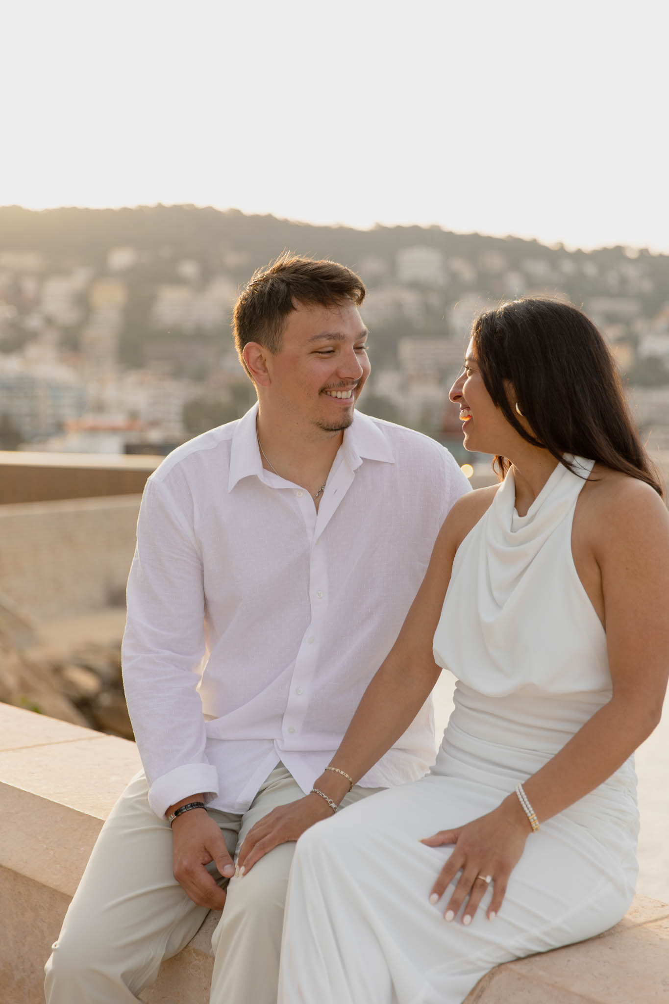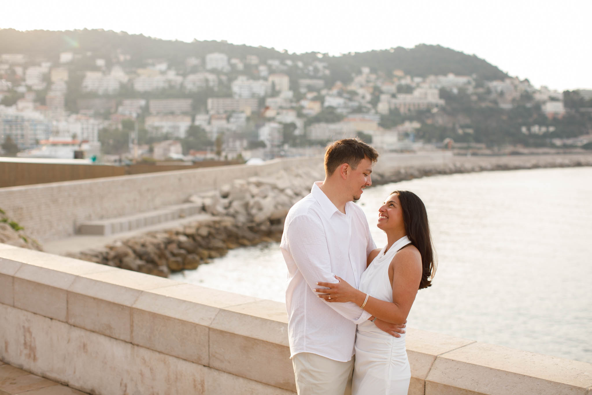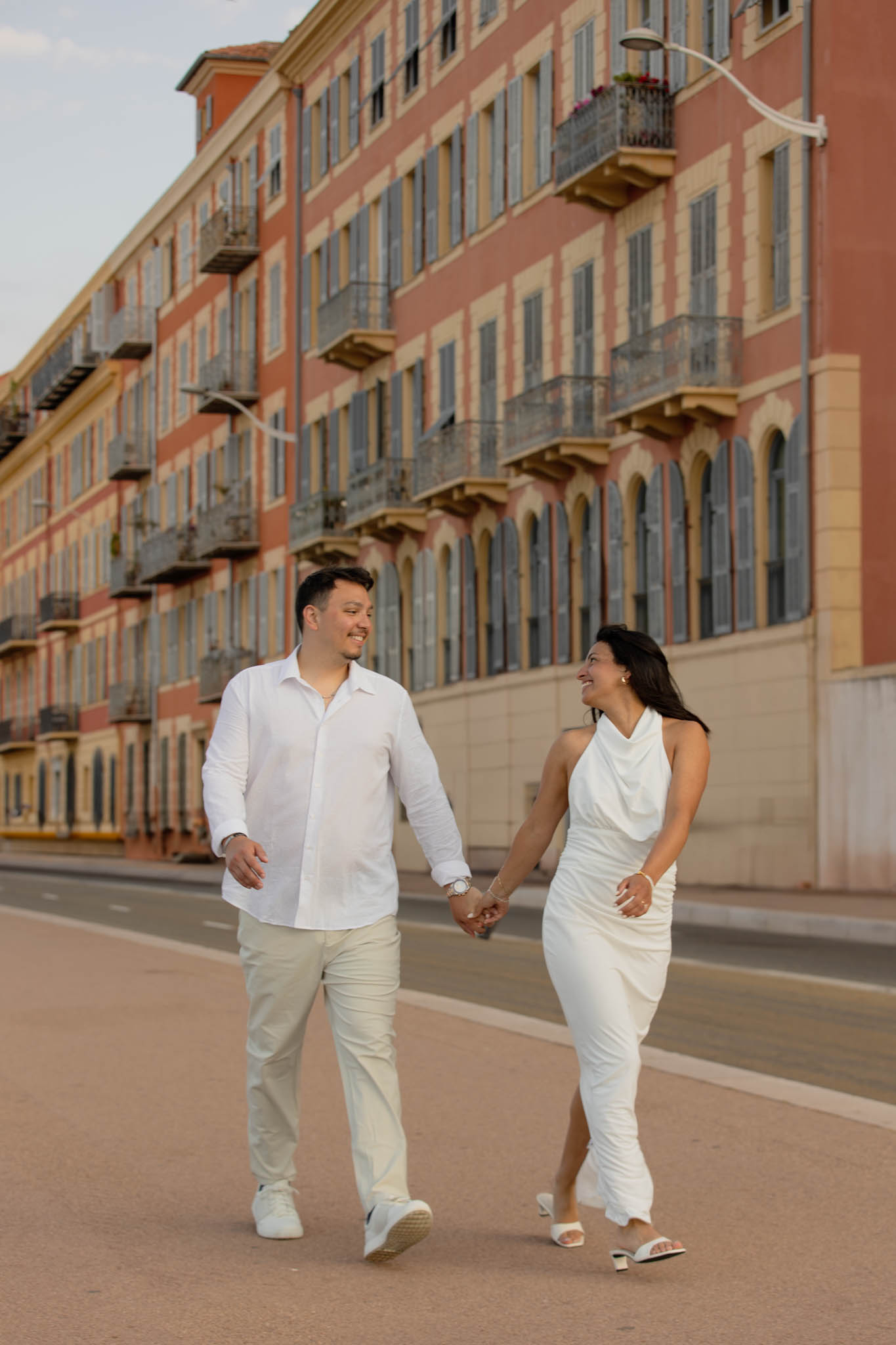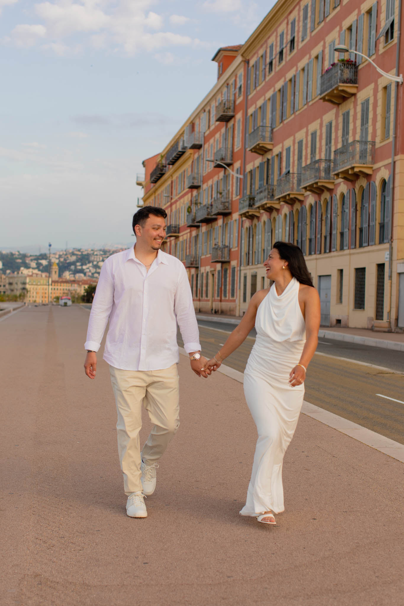 K and M had just got engaged a few days earlier in the Italian Riviera. They wanted to keep the proposal private, which meant there were no photographs of the moment itself. Now, in Nice, they came to capture their newly engaged joy in a relaxed, romantic photo session. This wasn't about recreating the proposal, but about taking time to celebrate their engagement and have beautiful memories together.