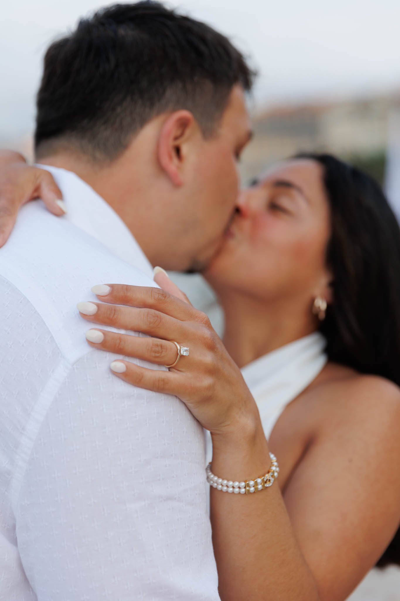 The soft morning light hit this area perfectly, giving the last photos a serene, luminous feel. We captured some close-ups of K’s engagement ring as well, which was stunning against their matching white outfits.