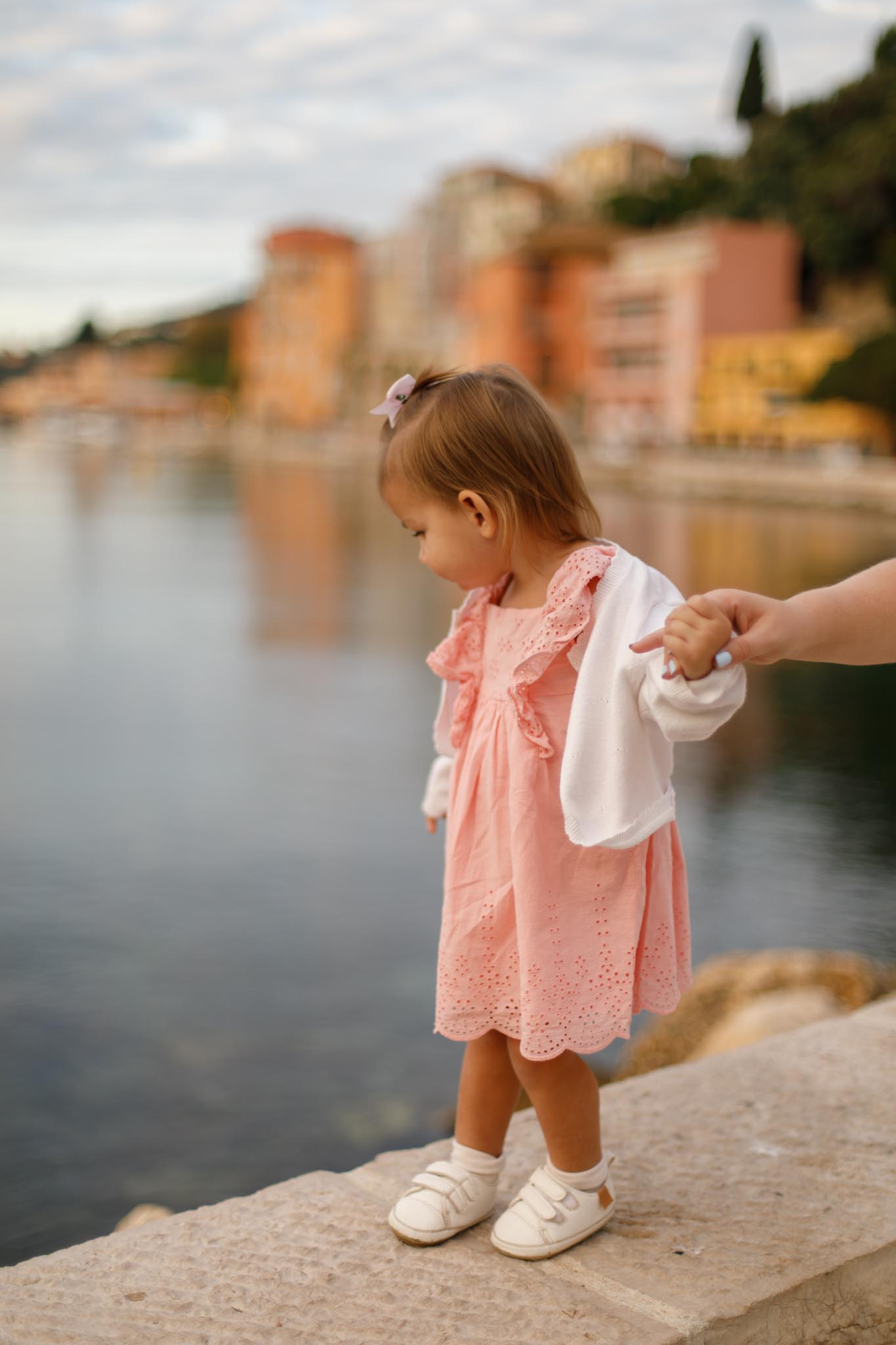 From there, we walked down the main street that runs along the water, Quai Amiral Courbet, taking advantage of the quiet empty streets. A was free to explore and run around, and her natural curiosity and energy made for some adorable candid shots.