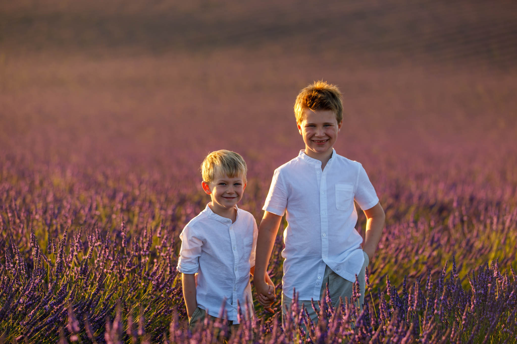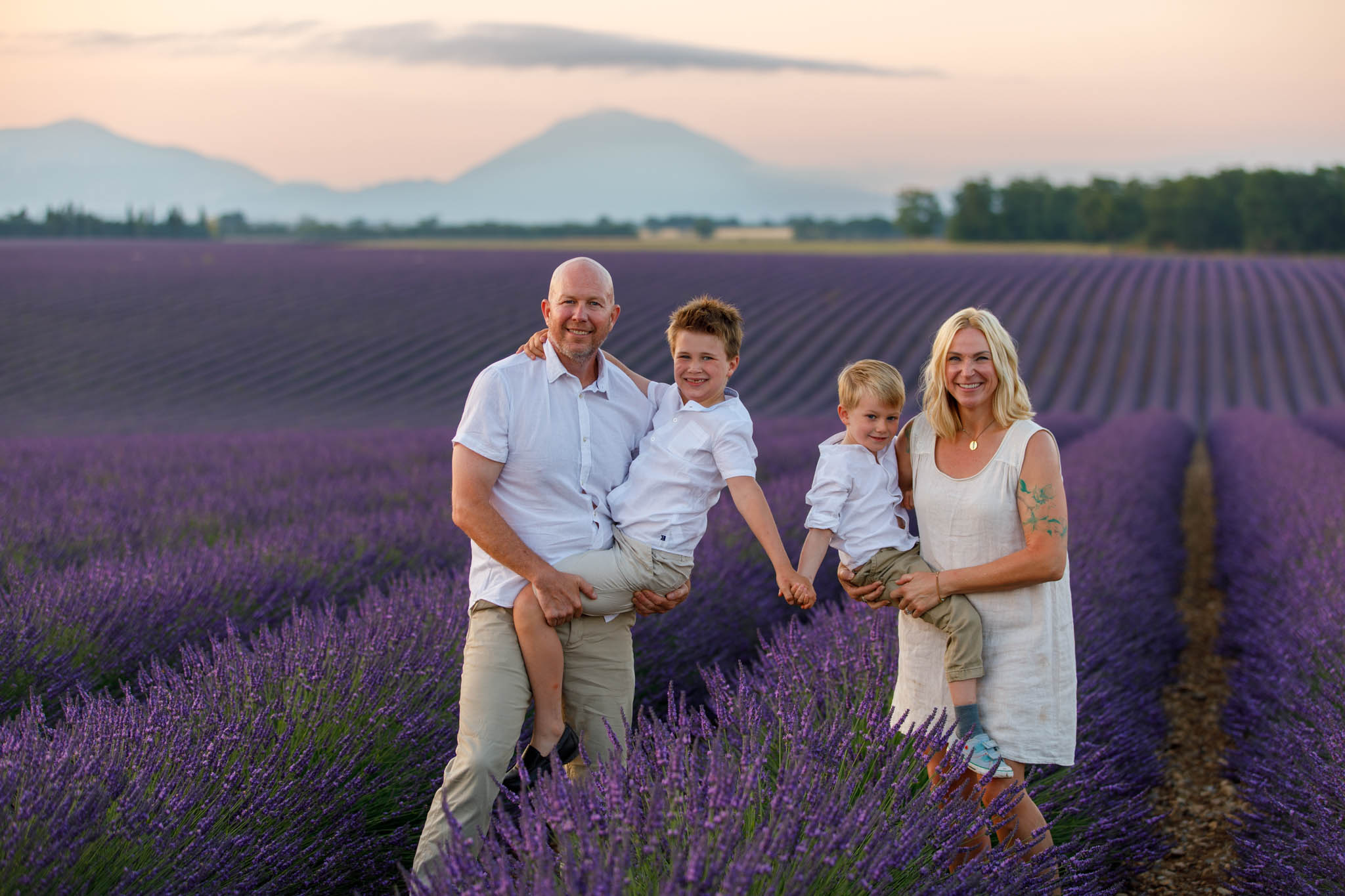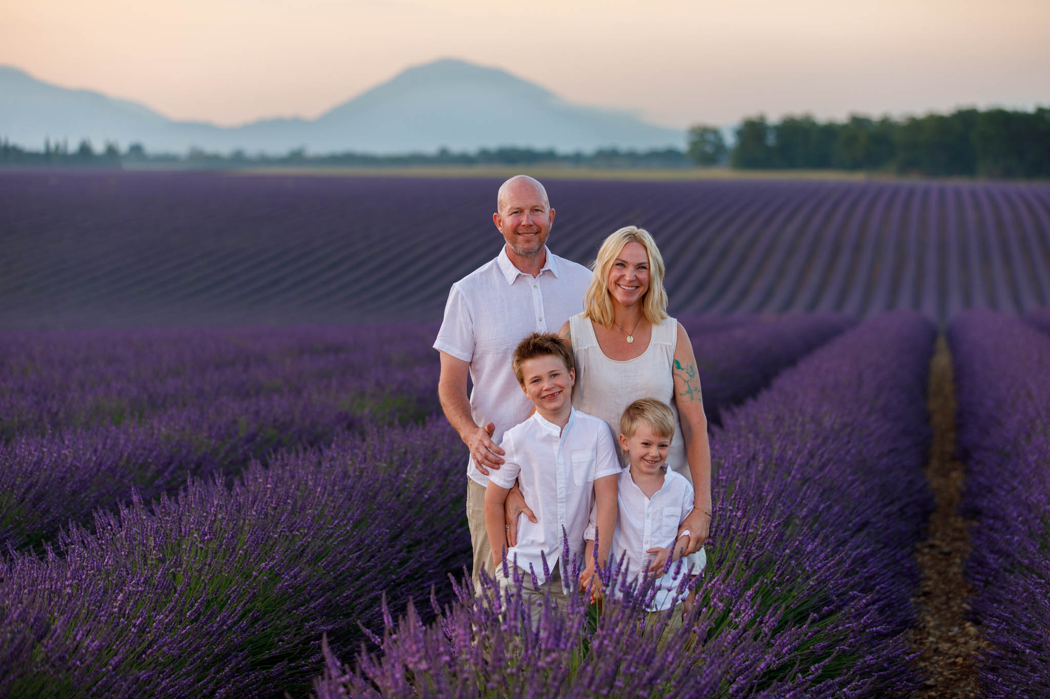 In late June, the I family joined us for a sunrise session from 5:50 to 6:50 in the lavender fields near Valensole. They specifically chose sunrise, which worked perfectly for a family with two young children.