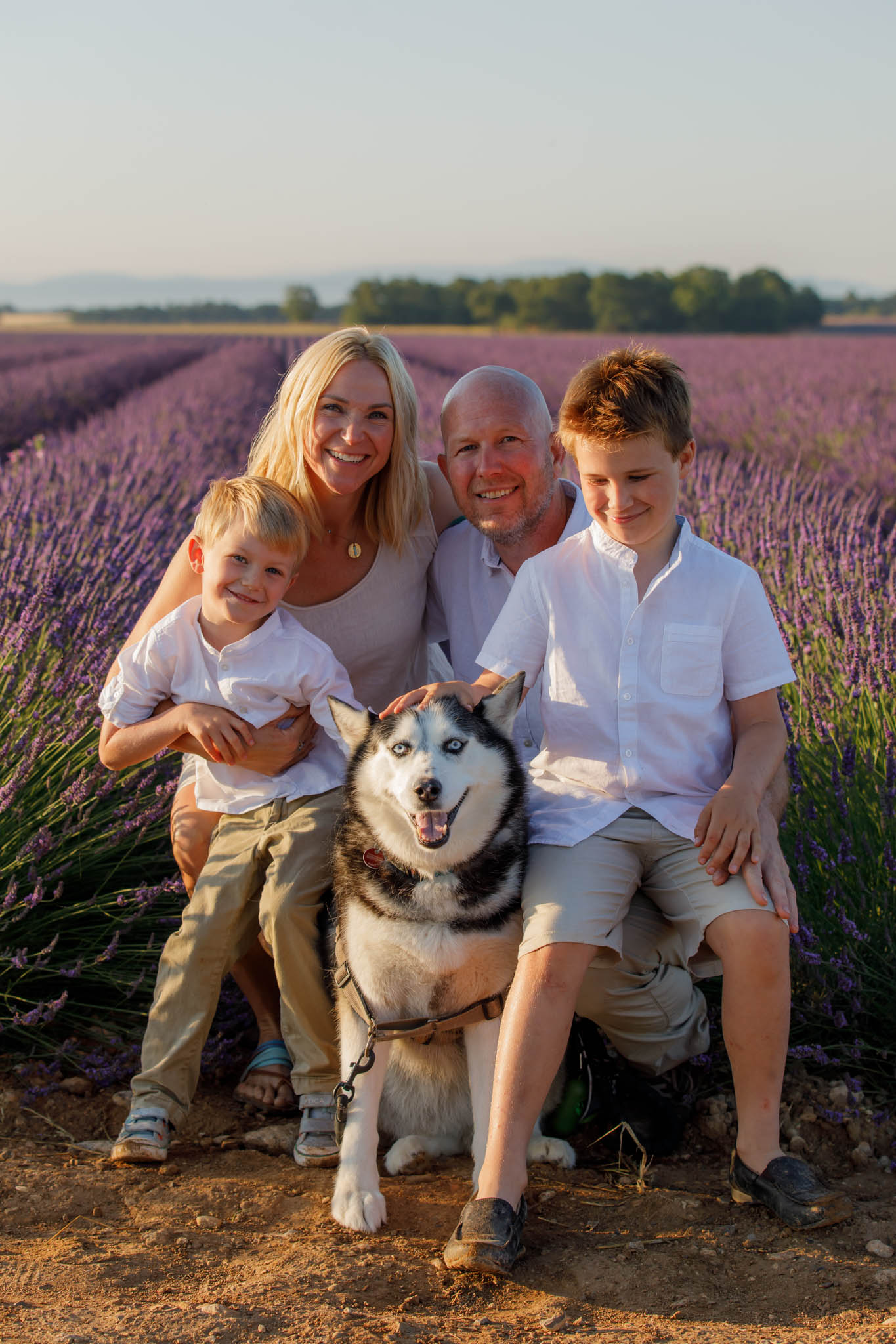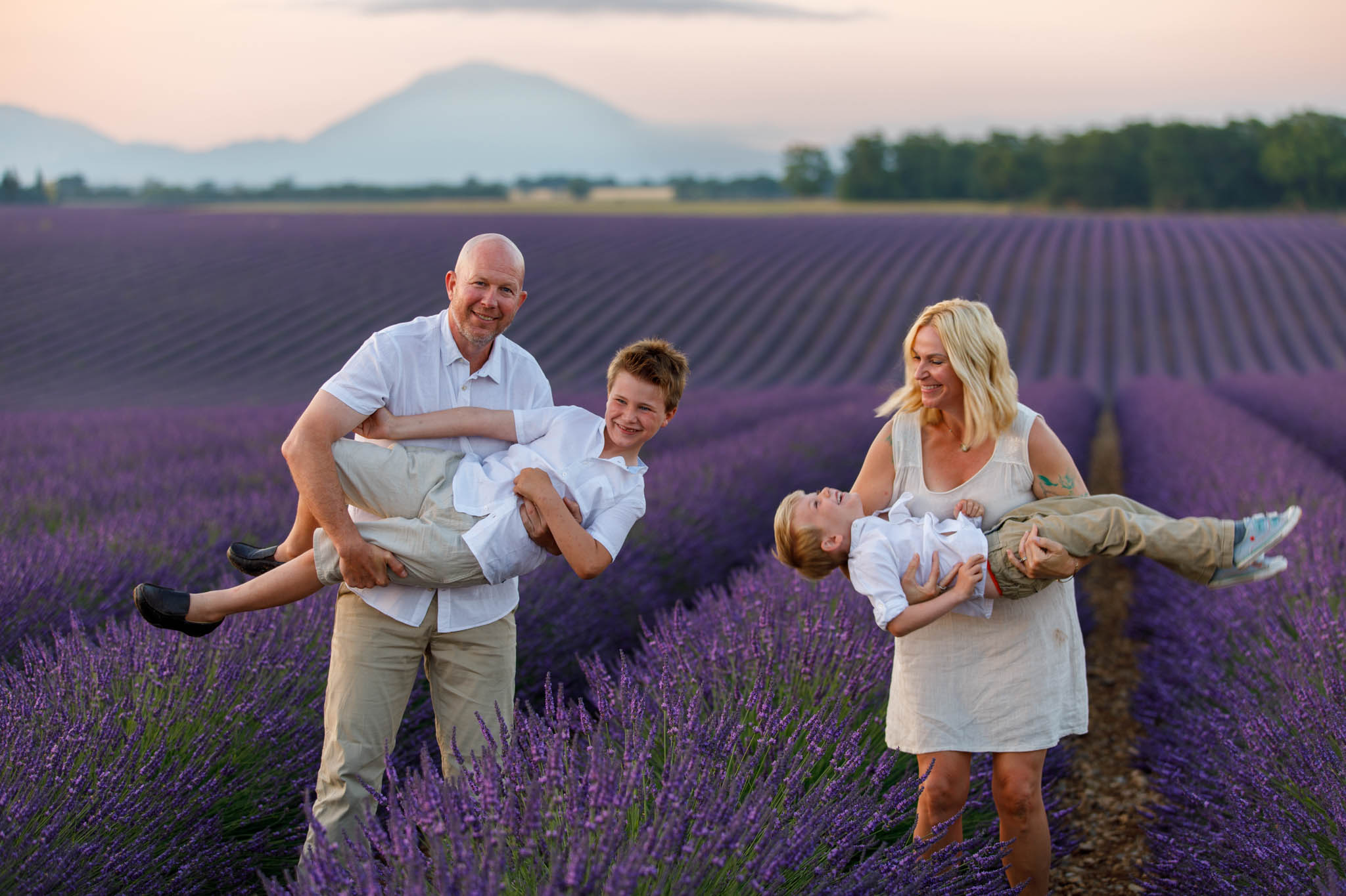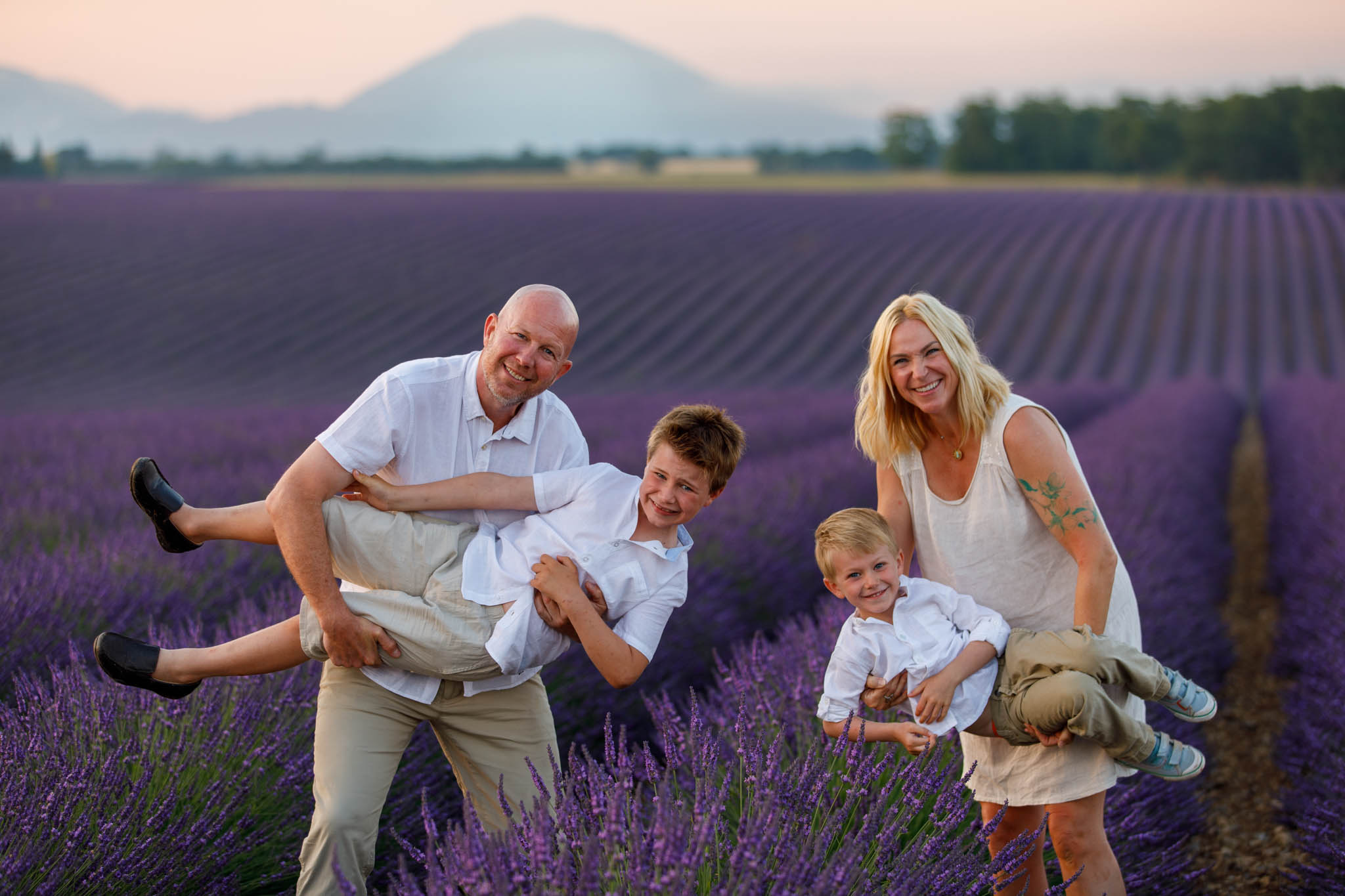 In late June, the I family joined us for a sunrise session from 5:50 to 6:50 in the lavender fields near Valensole. They specifically chose sunrise, which worked perfectly for a family with two young children.