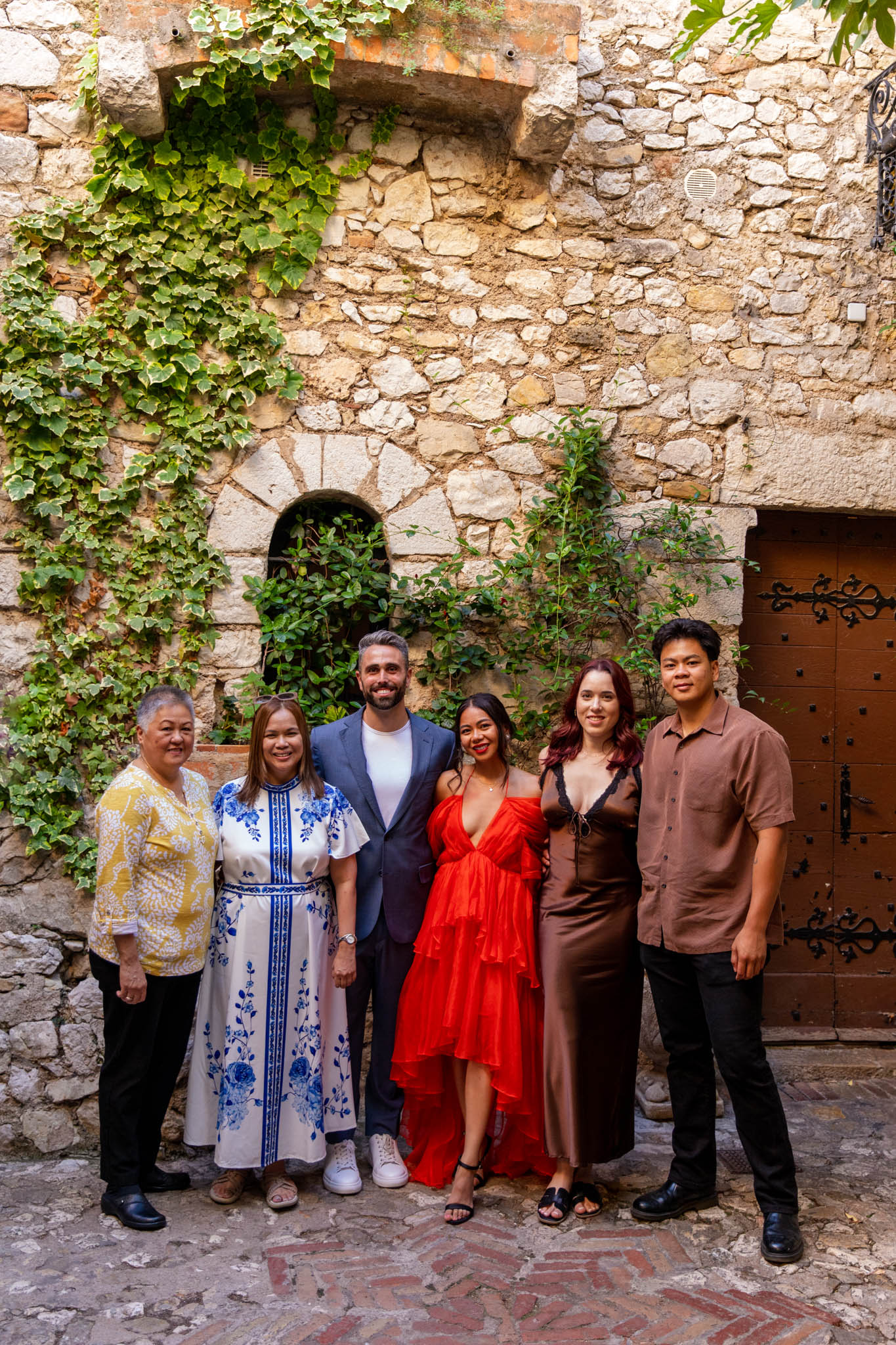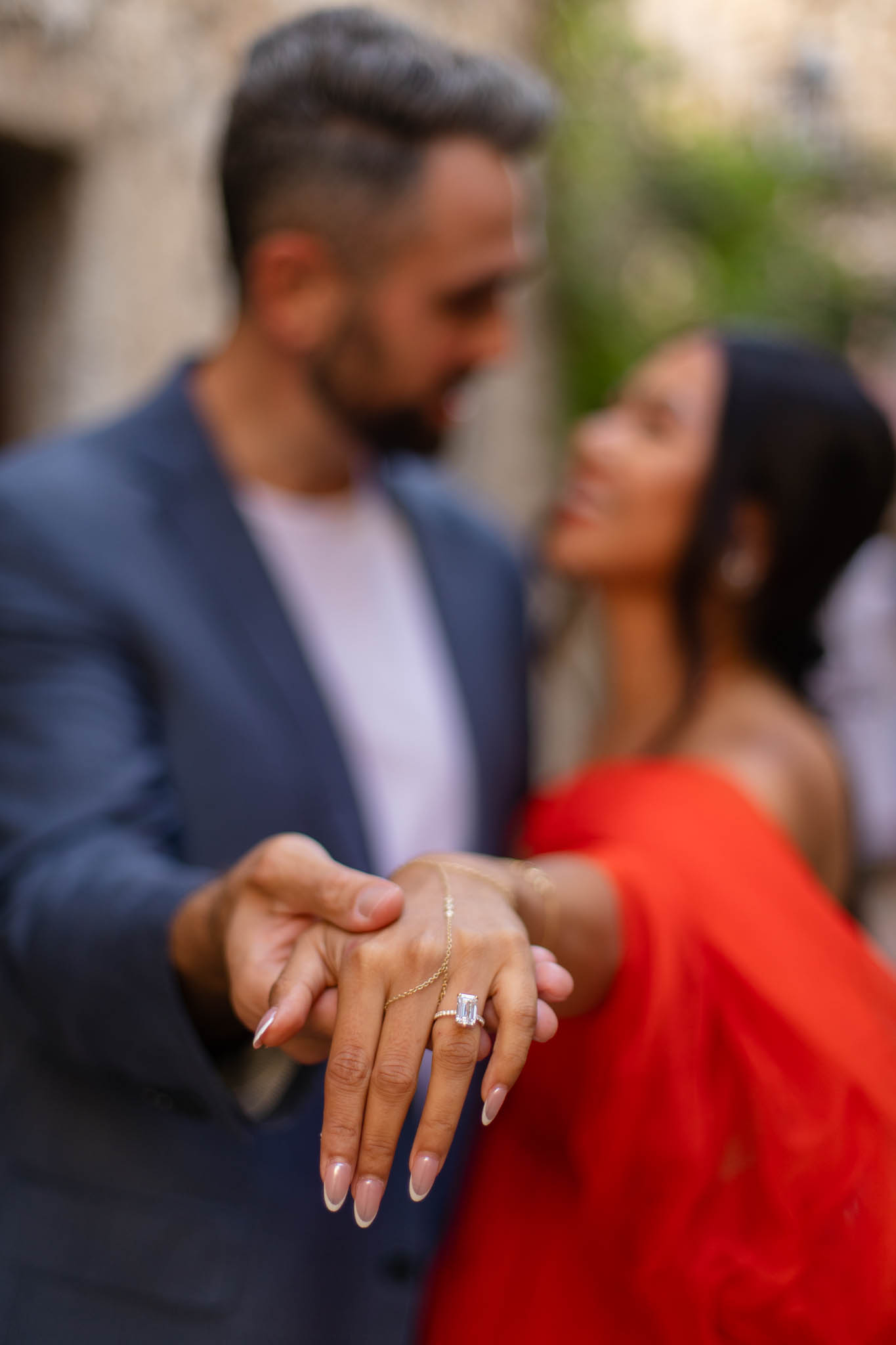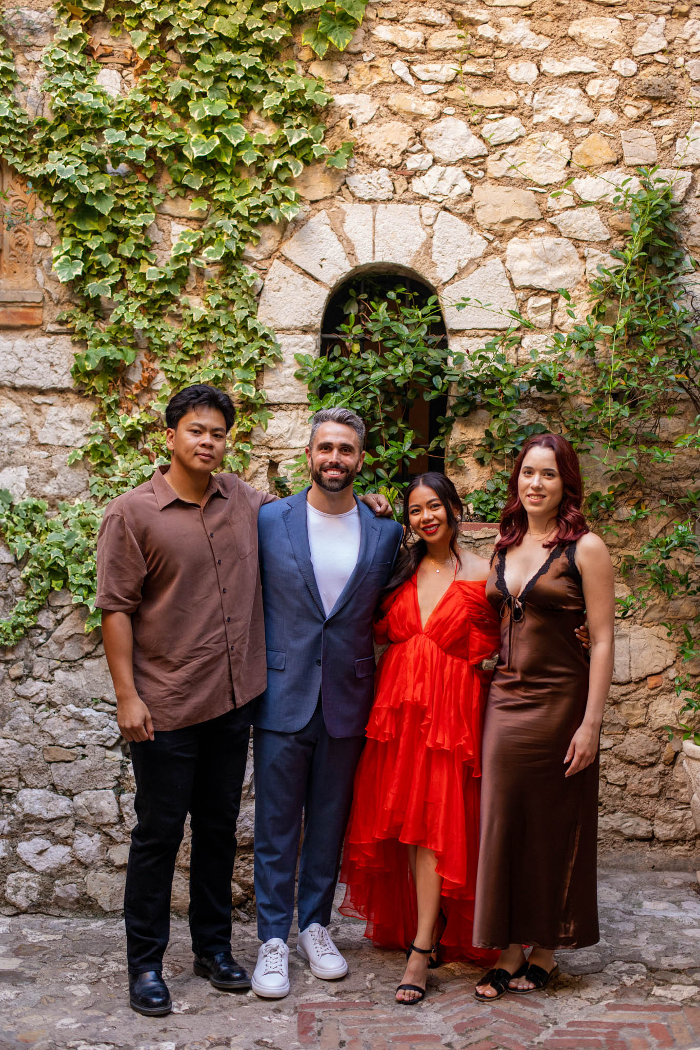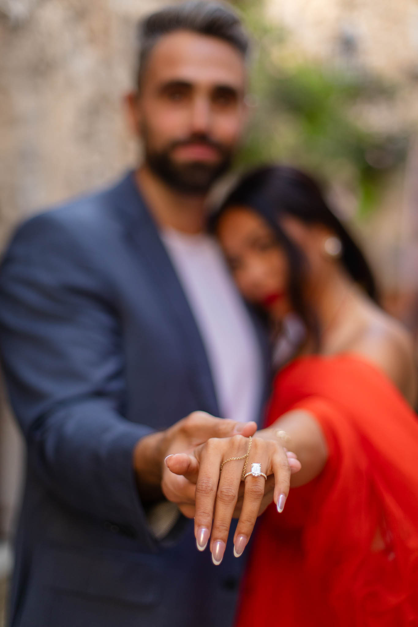 C had thoughtfully planned to propose to K, knowing that she would much prefer the charm of narrow alleyways and quiet stone streets over a formal garden setting. Instead of dramatic viewpoints or grand terraces, he chose one of Èze’s intimate passageways— a location full of character and soft Mediterranean light. In a funny twist of fate, K and C were staying at Château Eza, and it turned out their room was located just beside the very street we had selected. None of us had expected that coincidence. He proposed while pretending to walk back to their room. The proposal itself was incredibly sweet. As C got down on one knee, the quiet stone street felt suspended in time.