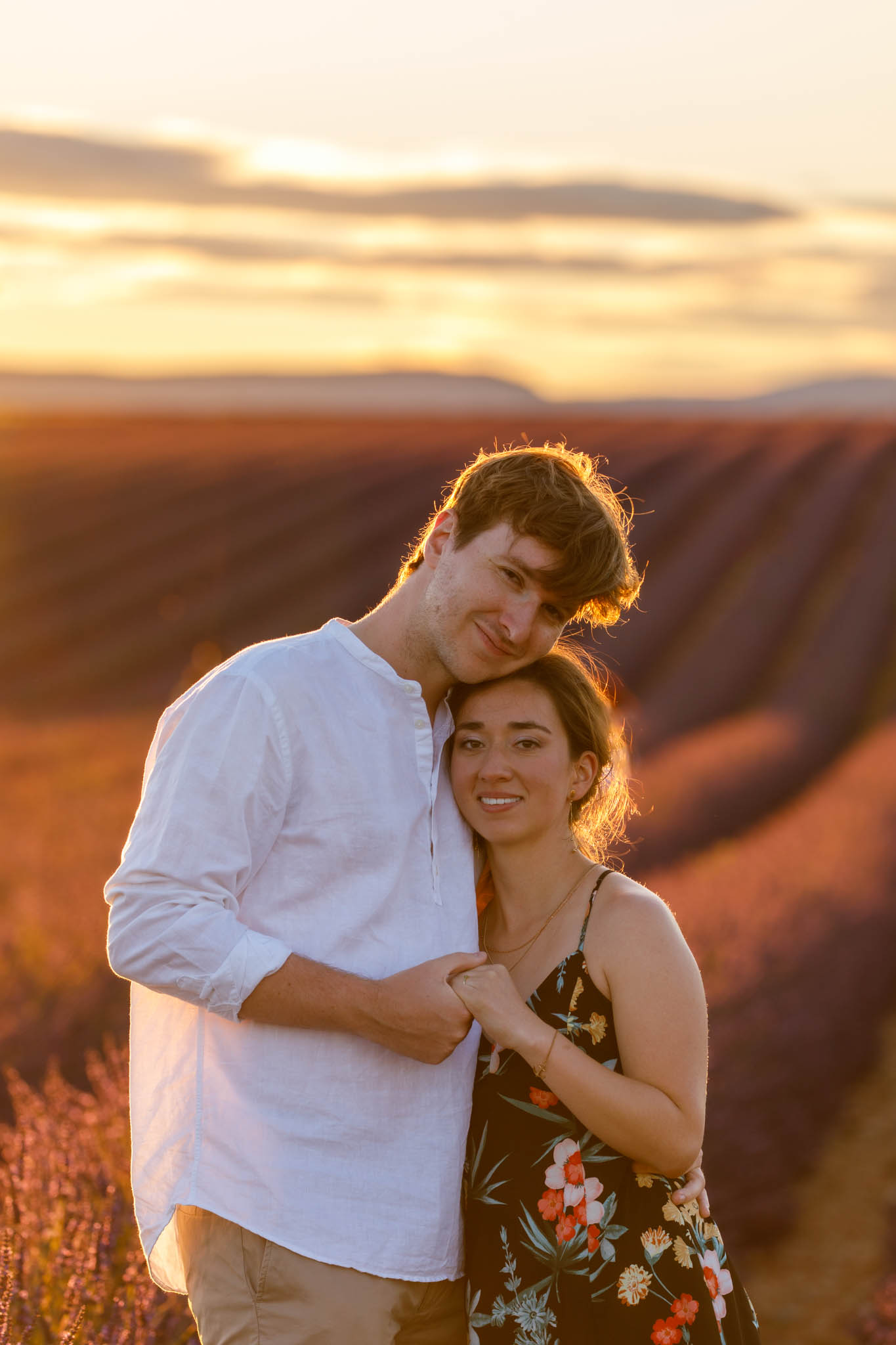 The lavender fields at that hour are peaceful and warm, with the sun beginning to lower behind the hills. However, C was understandably a little tense throughout the start of the evening. It is difficult to fully relax when you are carrying a ring in your pocket and waiting for the right moment. A sensed something was slightly unusual. She later admitted that the day had felt a little different, though she could not quite work out why.