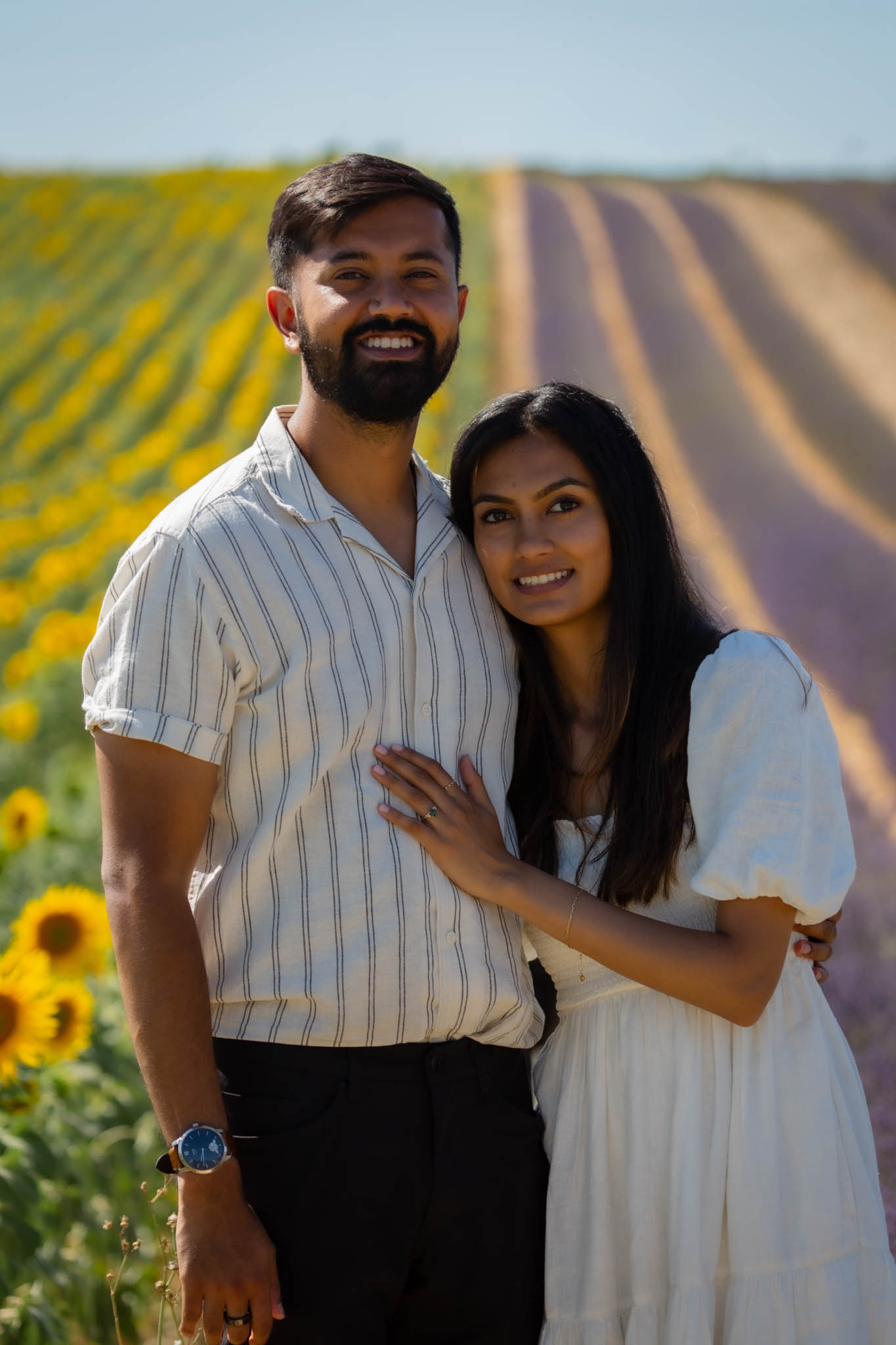 The atmosphere was calm and romantic. When S got down on one knee, it felt intimate and emotional, framed by endless rows of purple and warm sunset tones. The lighting truly could not have been more perfect.
