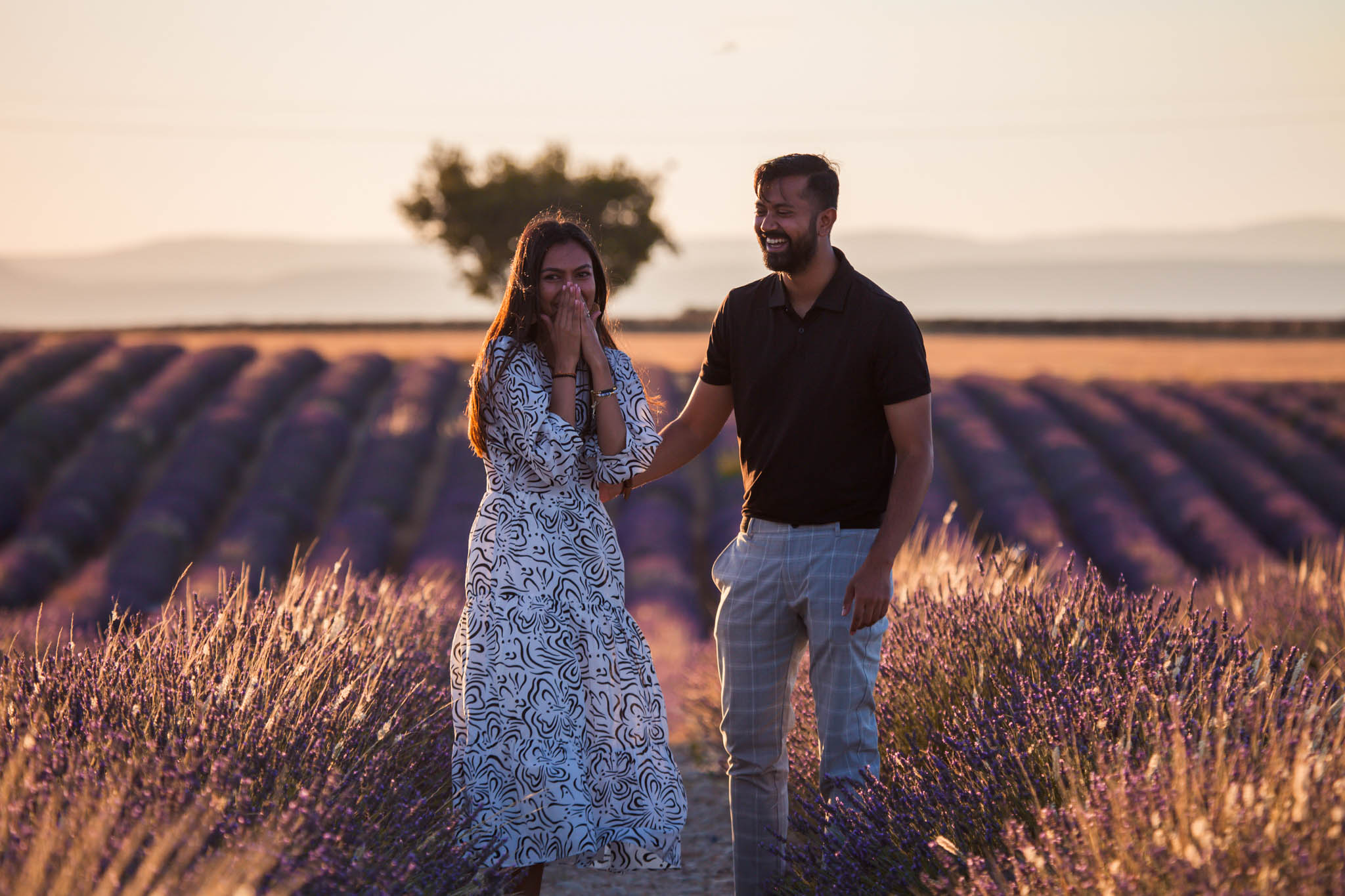 We had been planning this moment with S for months. He wanted everything to feel thoughtful and unforgettable. As the sun began to set over the lavender fields, the light turned soft and golden, creating the most perfect evening glow.