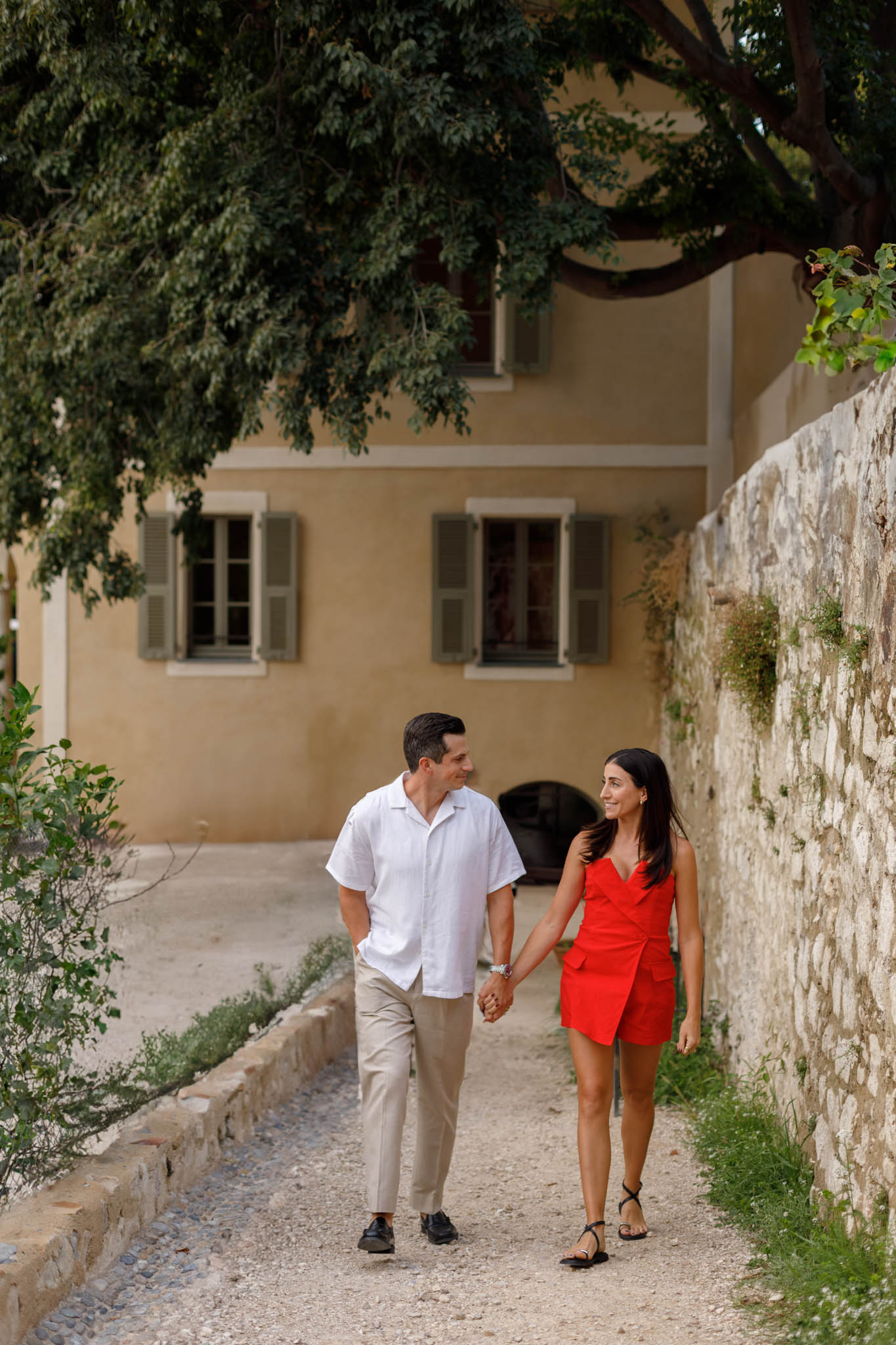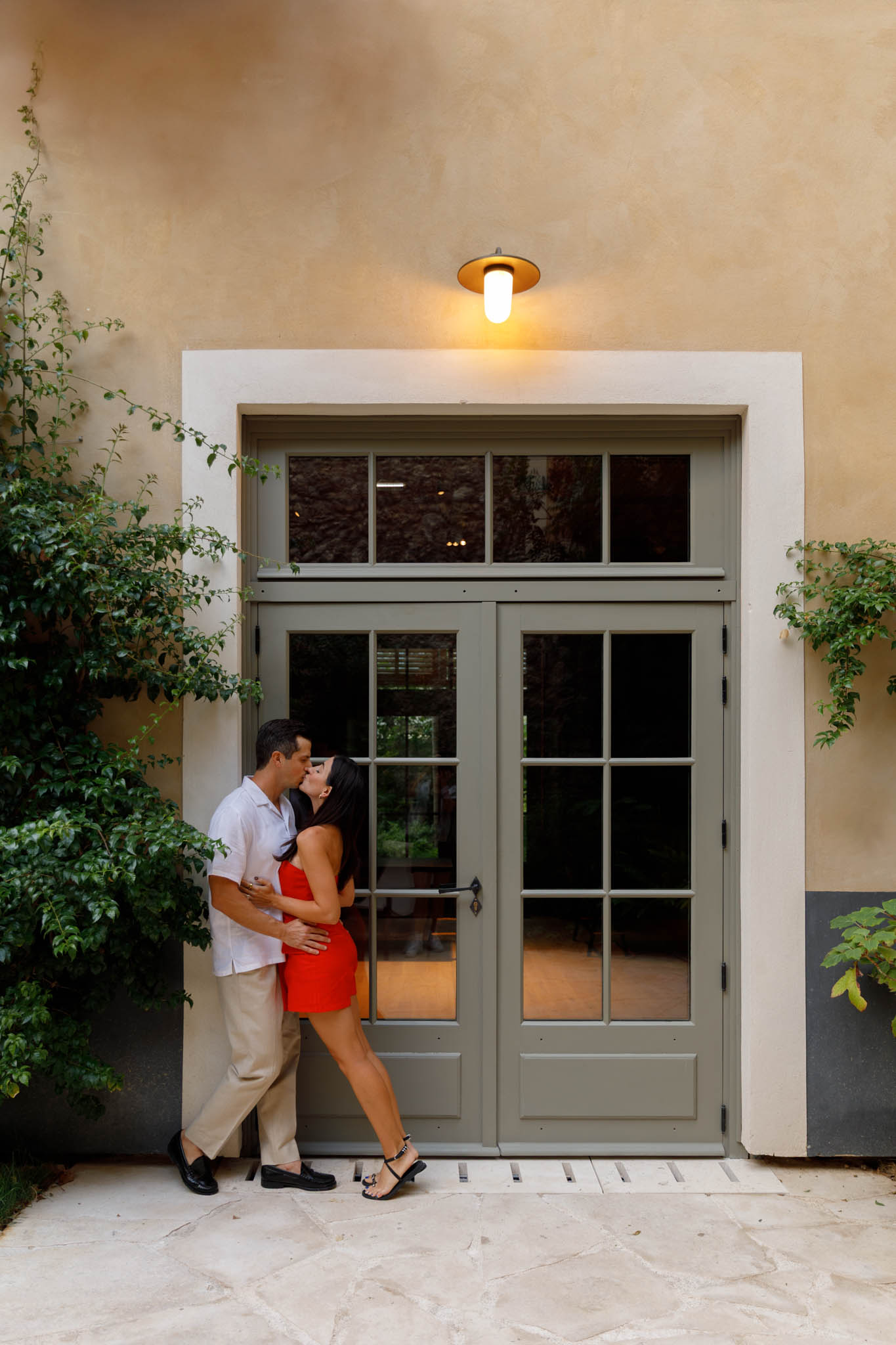 This relaxed session with K and A took place in mid-September and began inside the beautiful Hôtel du Couvent, a Luxury Hotel Collection, where they were staying during their time in Nice. Originally founded as a historic convent and carefully restored into a refined boutique hotel, the space blends quiet heritage with elegant Mediterranean design. Soft stone walls, lush greenery, and serene courtyards create a peaceful atmosphere that feels both intimate and timeless, making it a lovely setting for natural photographs.