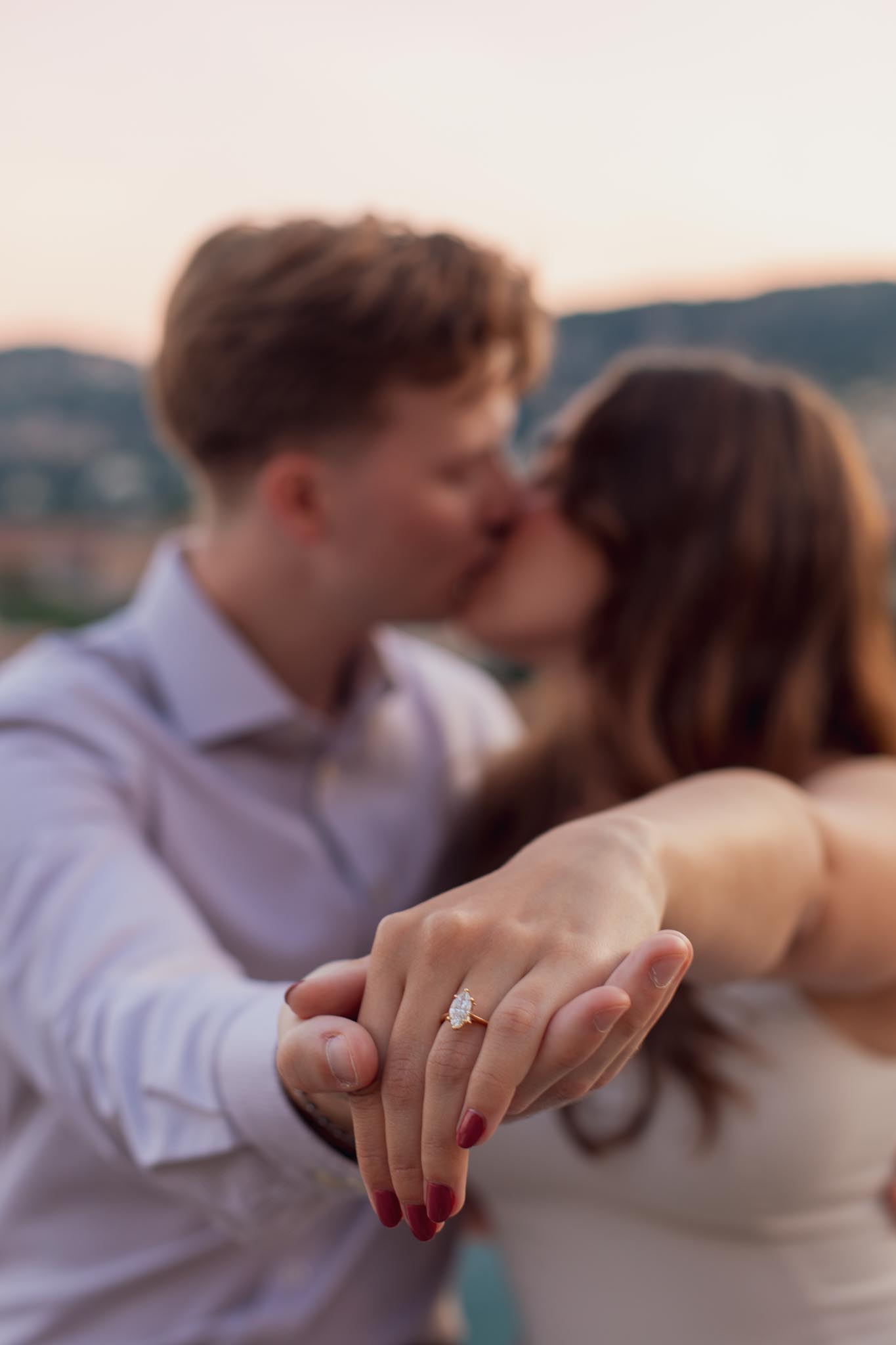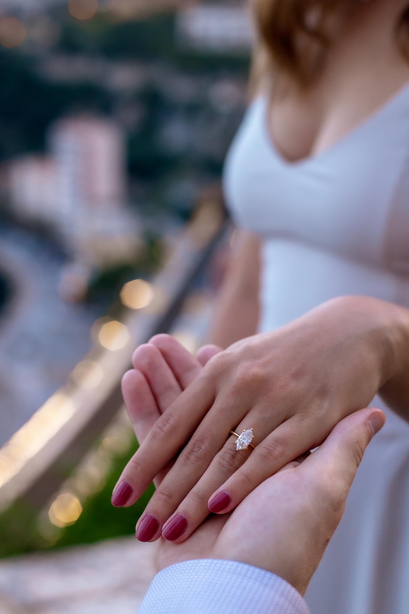 We finished the session with portraits of the two of them together and close-up images of the engagement ring, framed by the sparkling evening view across the bay. The calm night atmosphere made this final part of the session feel intimate, peaceful, and deeply celebratory.