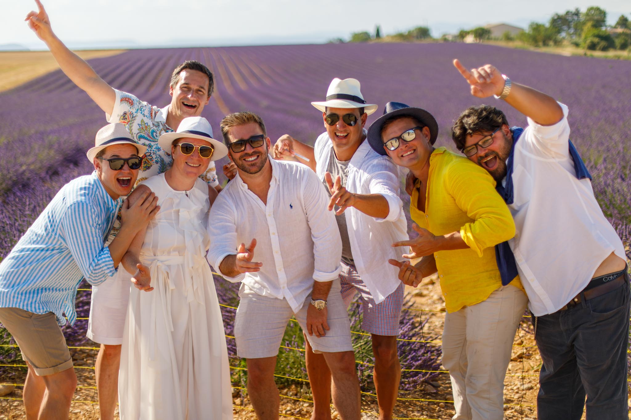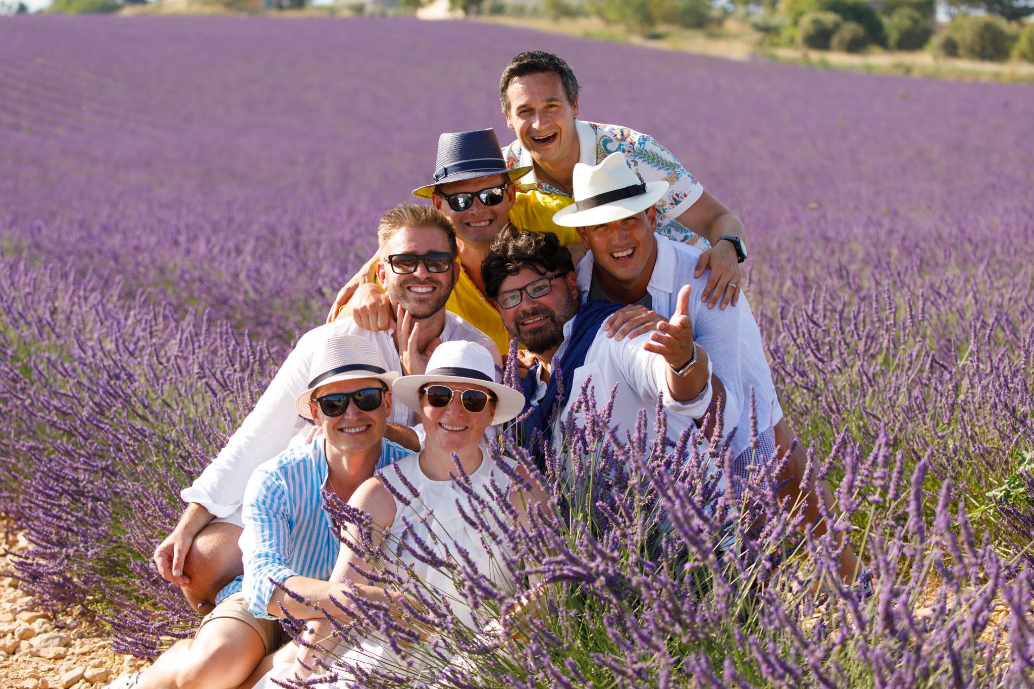 In early July, we captured a fun and lively group session in the lavender fields of Valensole. The session followed a birthday picnic for A. A’s boyfriend and five friends joined to celebrate together. After enjoying their picnic, we did a quick photo session to capture the memories of the day.