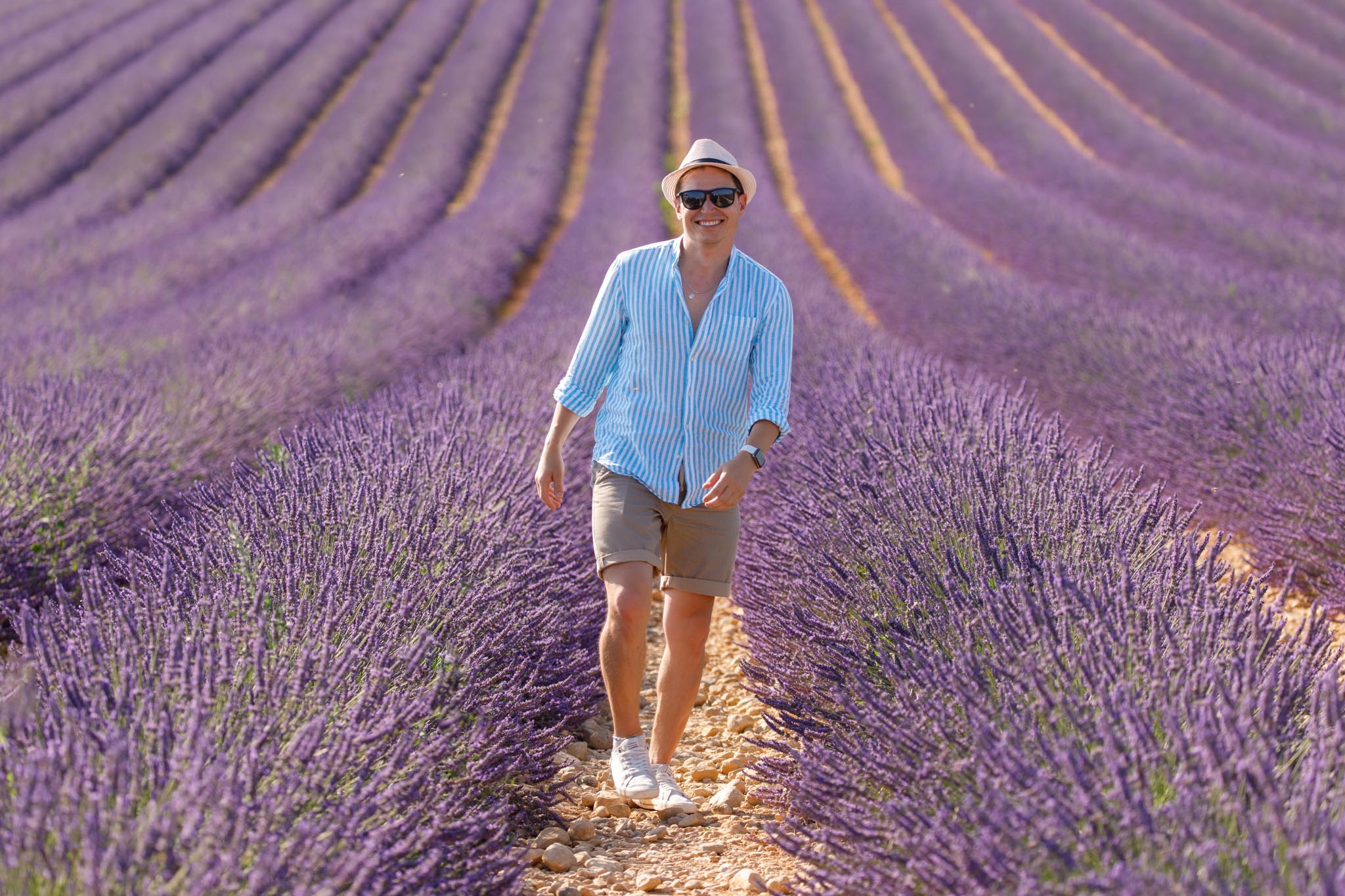 Because this was a daytime shoot, the lighting was bright and clear, which really brought out the natural, vibrant purple of the lavender fields. While sunset creates warm orange tones, this timing highlights the true colour of the lavender and works beautifully for photos that feel fresh and lively.