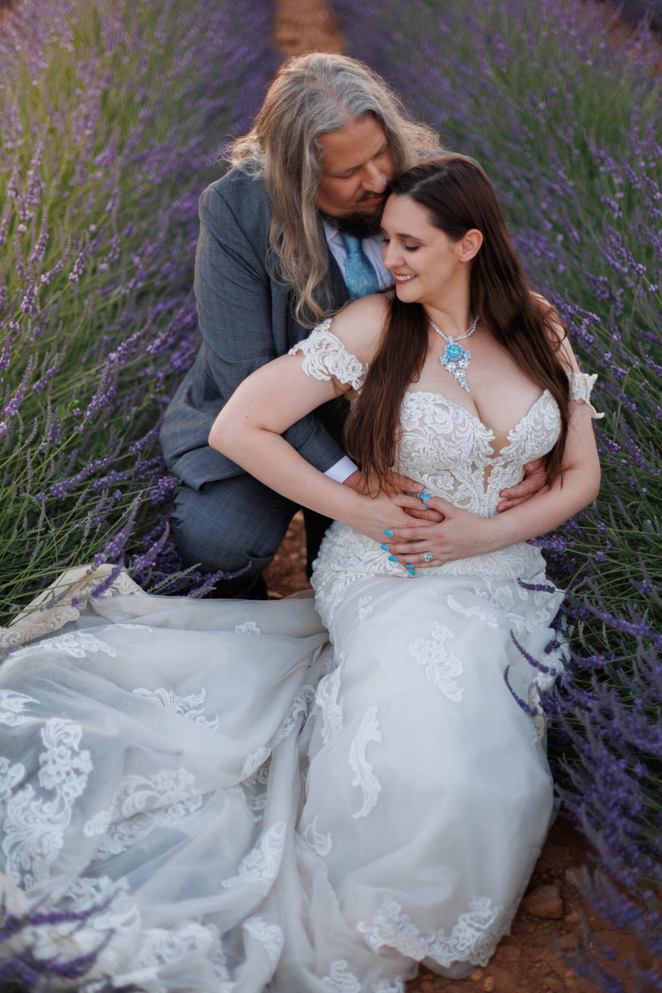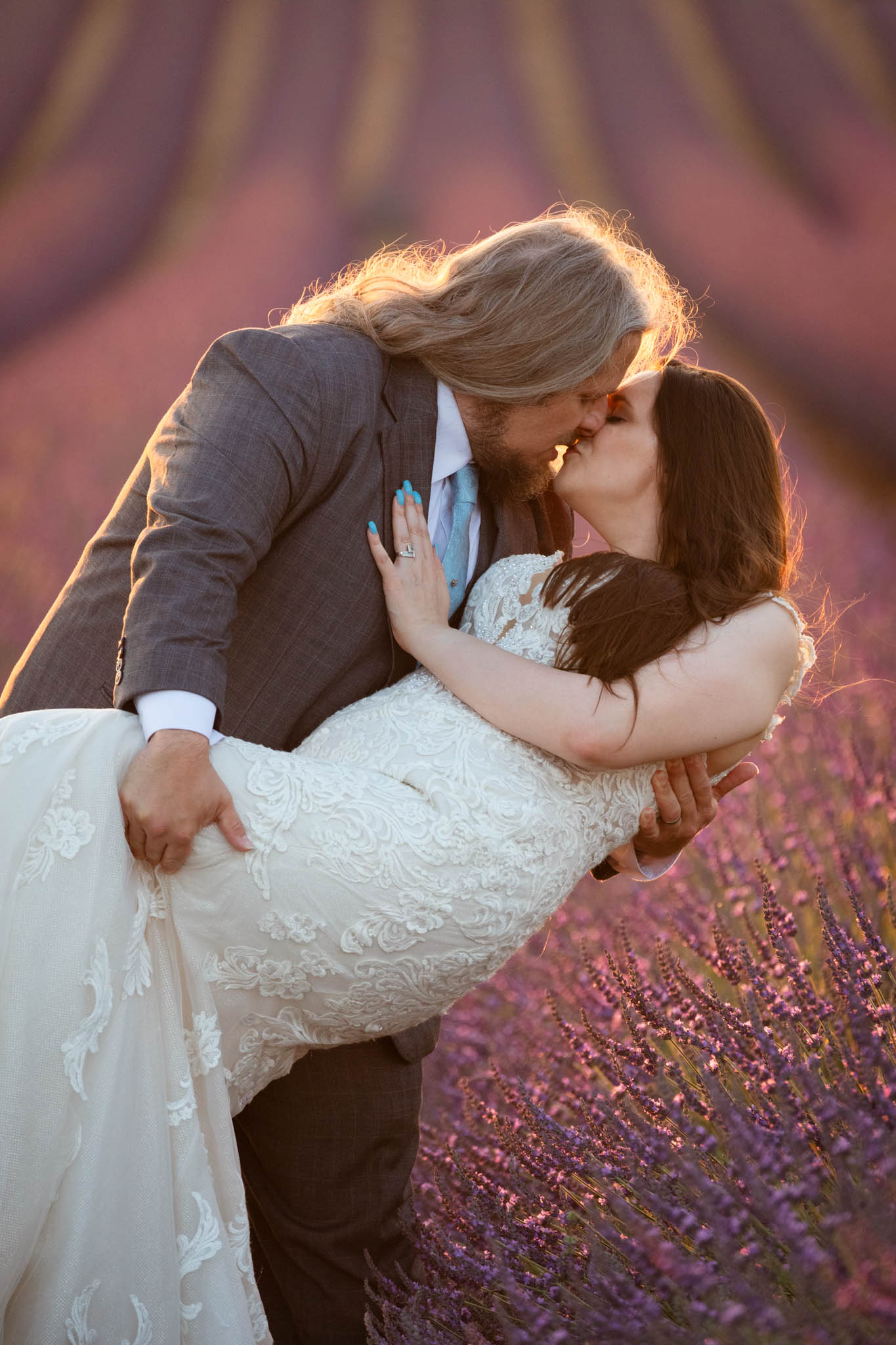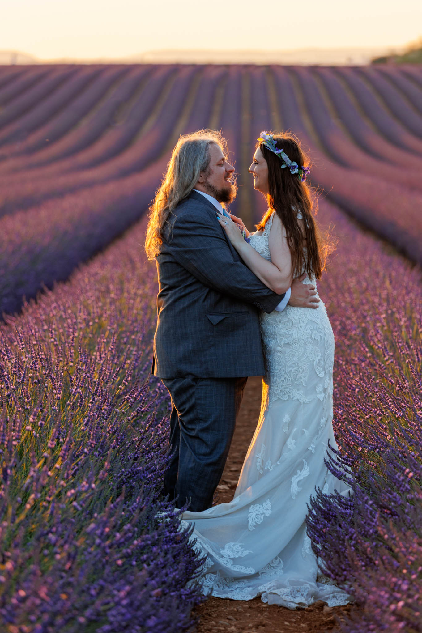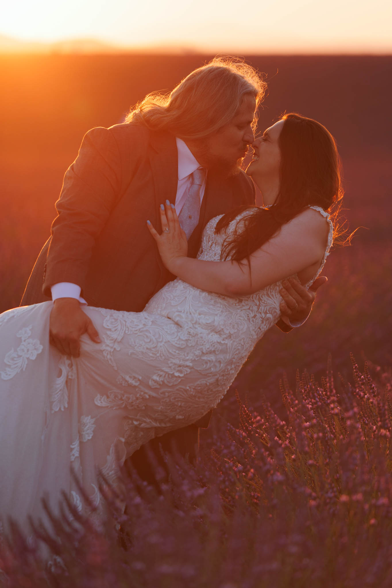 The light remained perfect, softening as the sun continued to set, and the couple looked stunning against the textured lavender and gentle curves of the field.