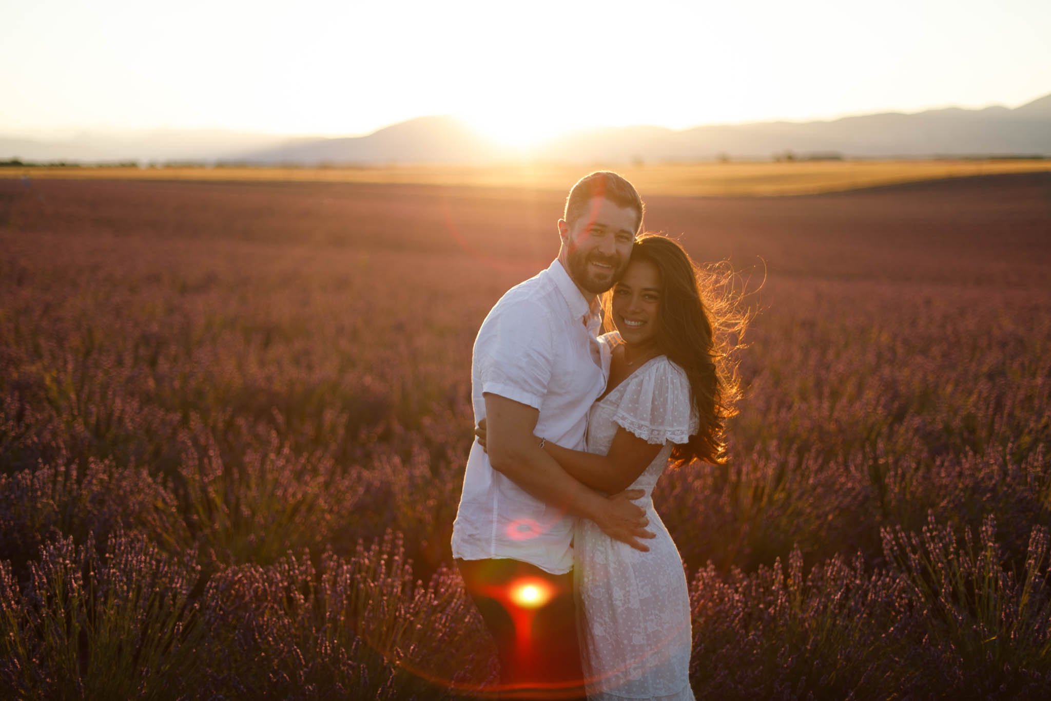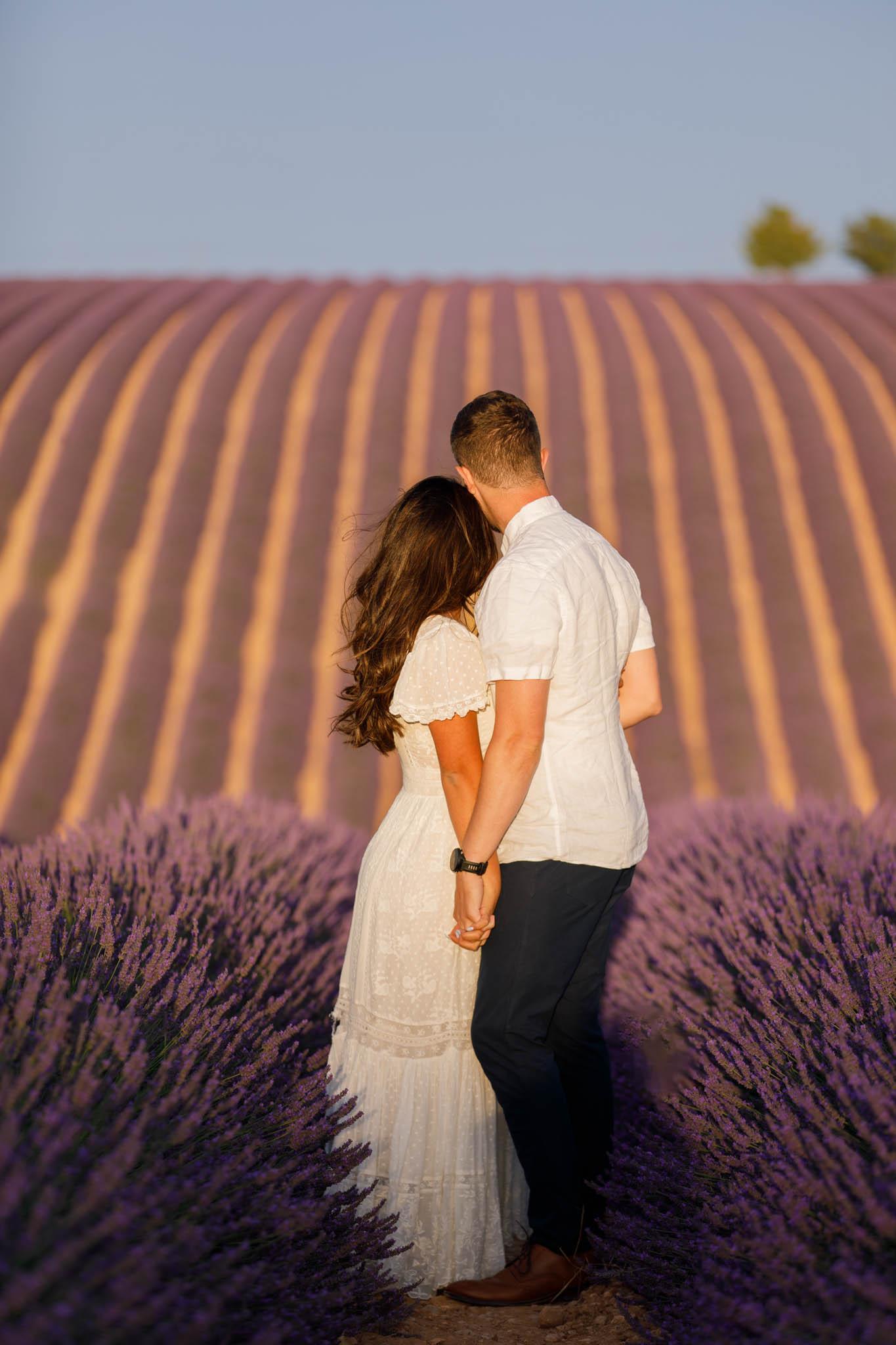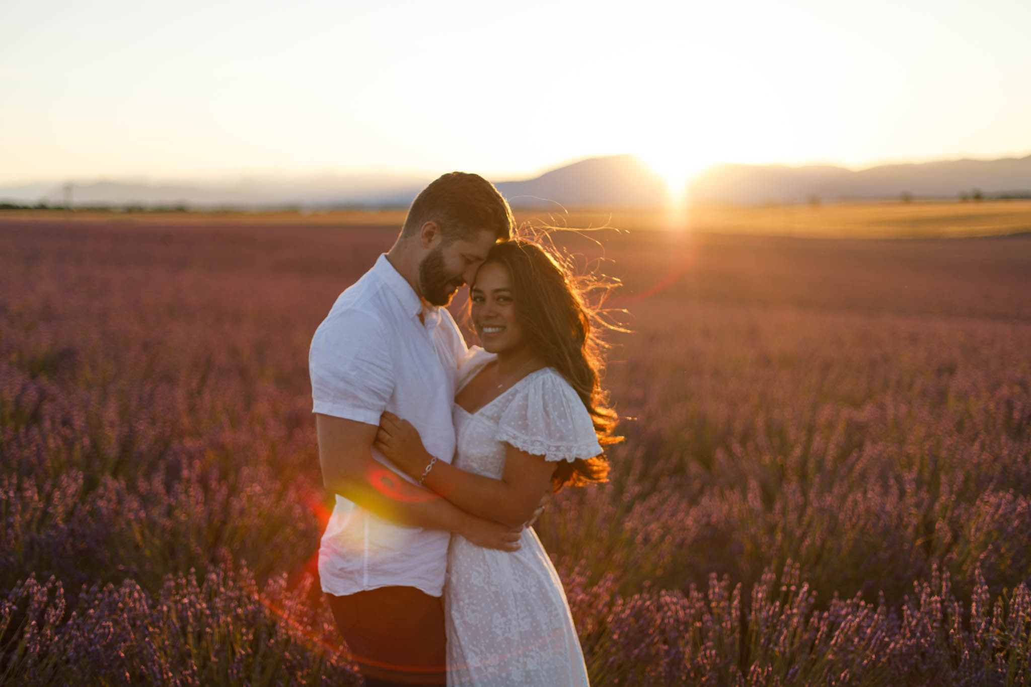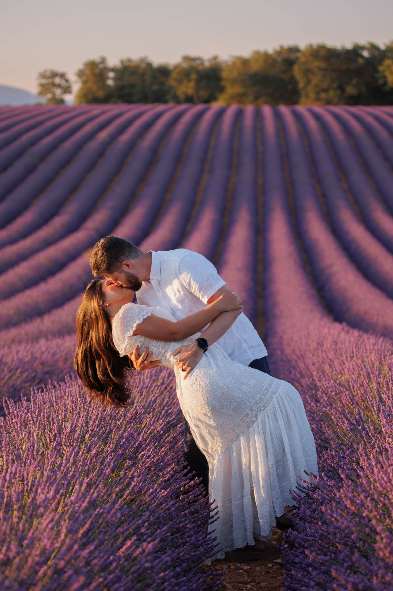 J and S were simply travelling through the region and wanted beautiful photos together. It was a relaxed and casual session, just the two of them enjoying the moment. They both wore white, which works perfectly in lavender fields. The white outfits stood out against the purple tones and kept the images looking fresh and timeless.