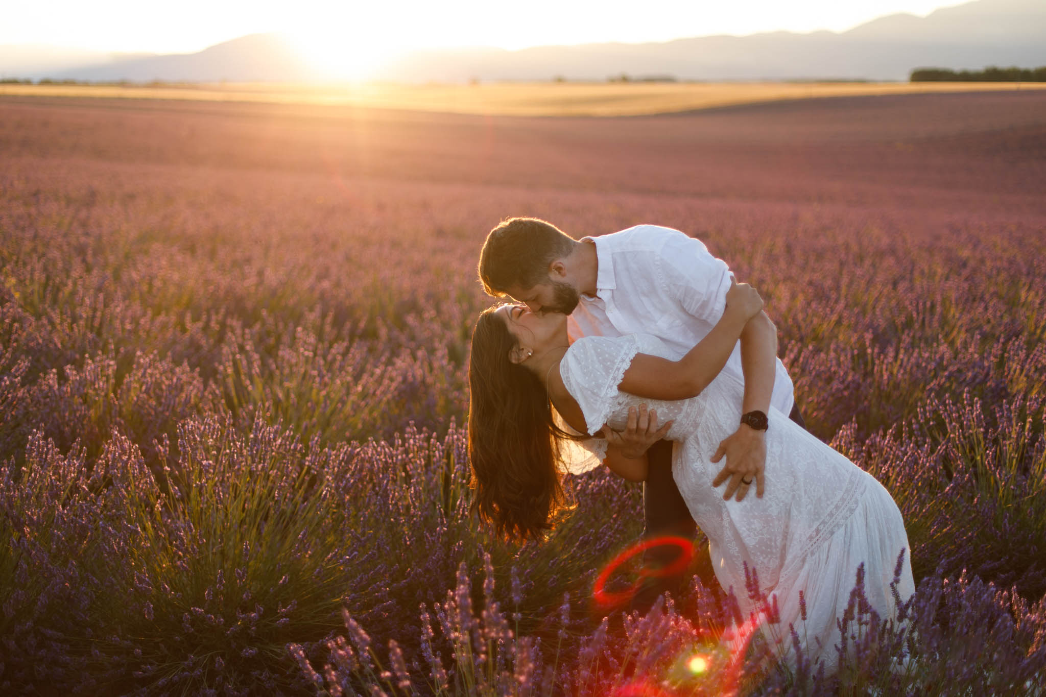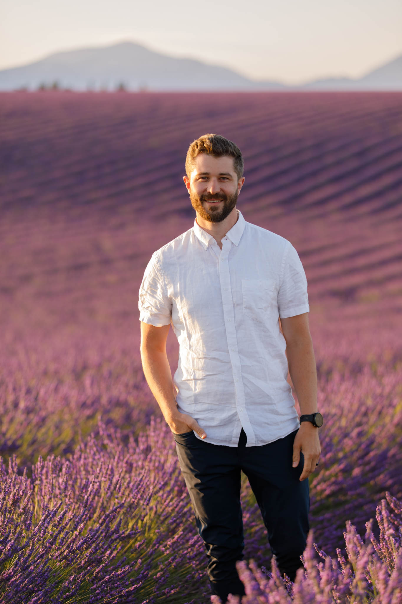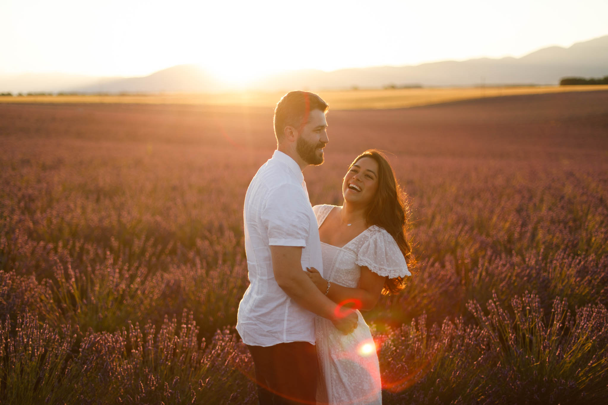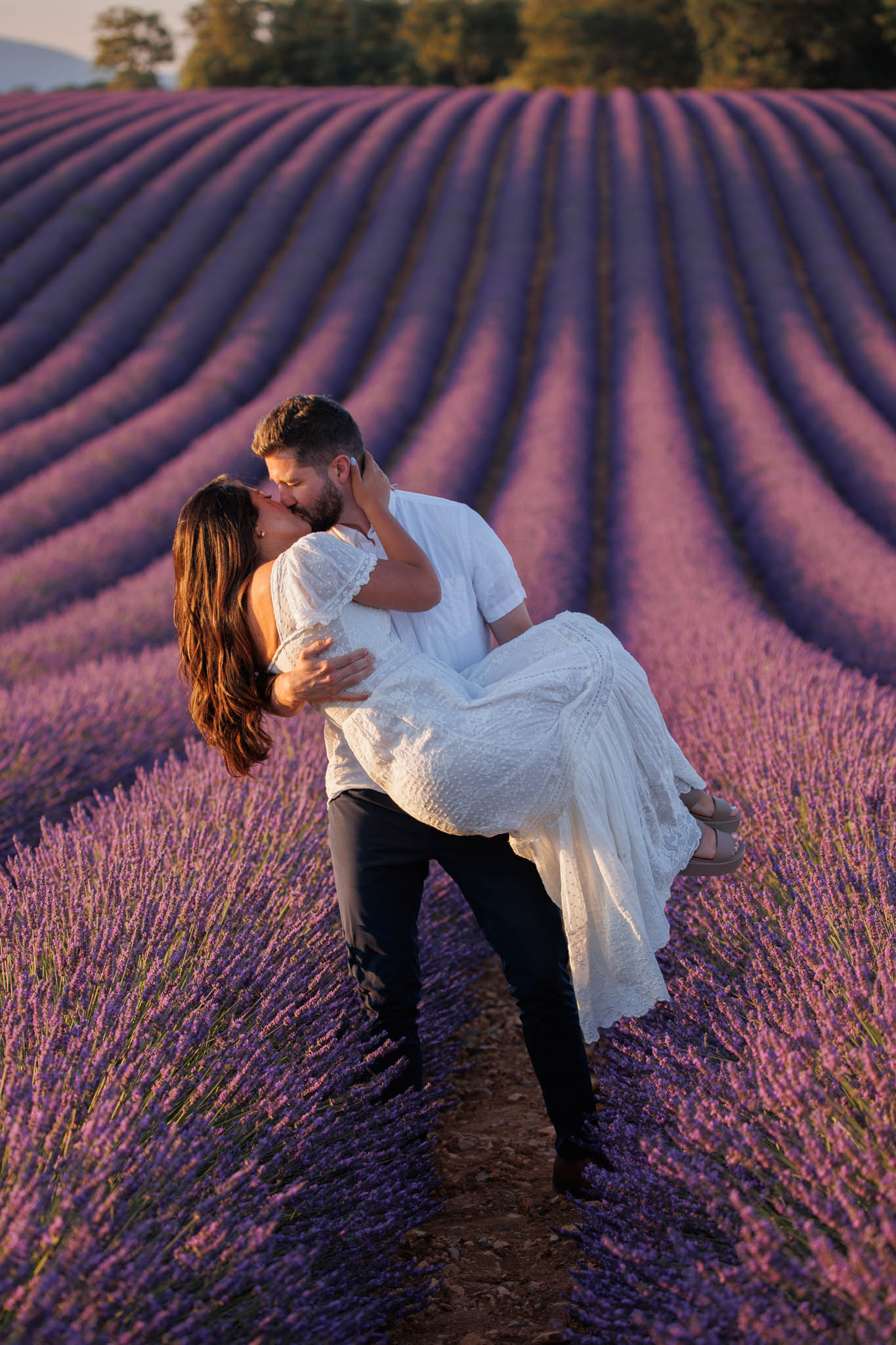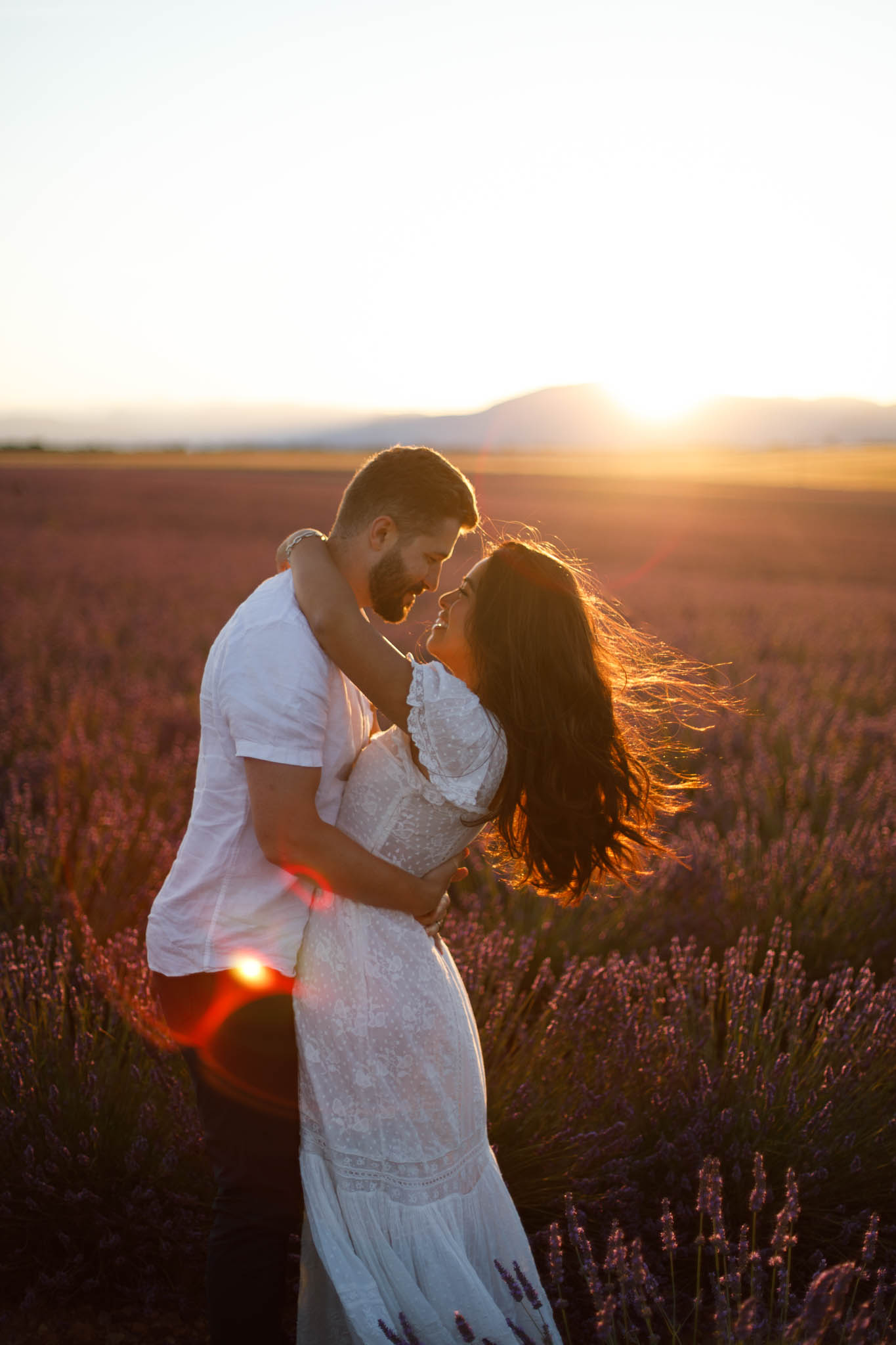 J and S were simply travelling through the region and wanted beautiful photos together. It was a relaxed and casual session, just the two of them enjoying the moment. They both wore white, which works perfectly in lavender fields. The white outfits stood out against the purple tones and kept the images looking fresh and timeless.