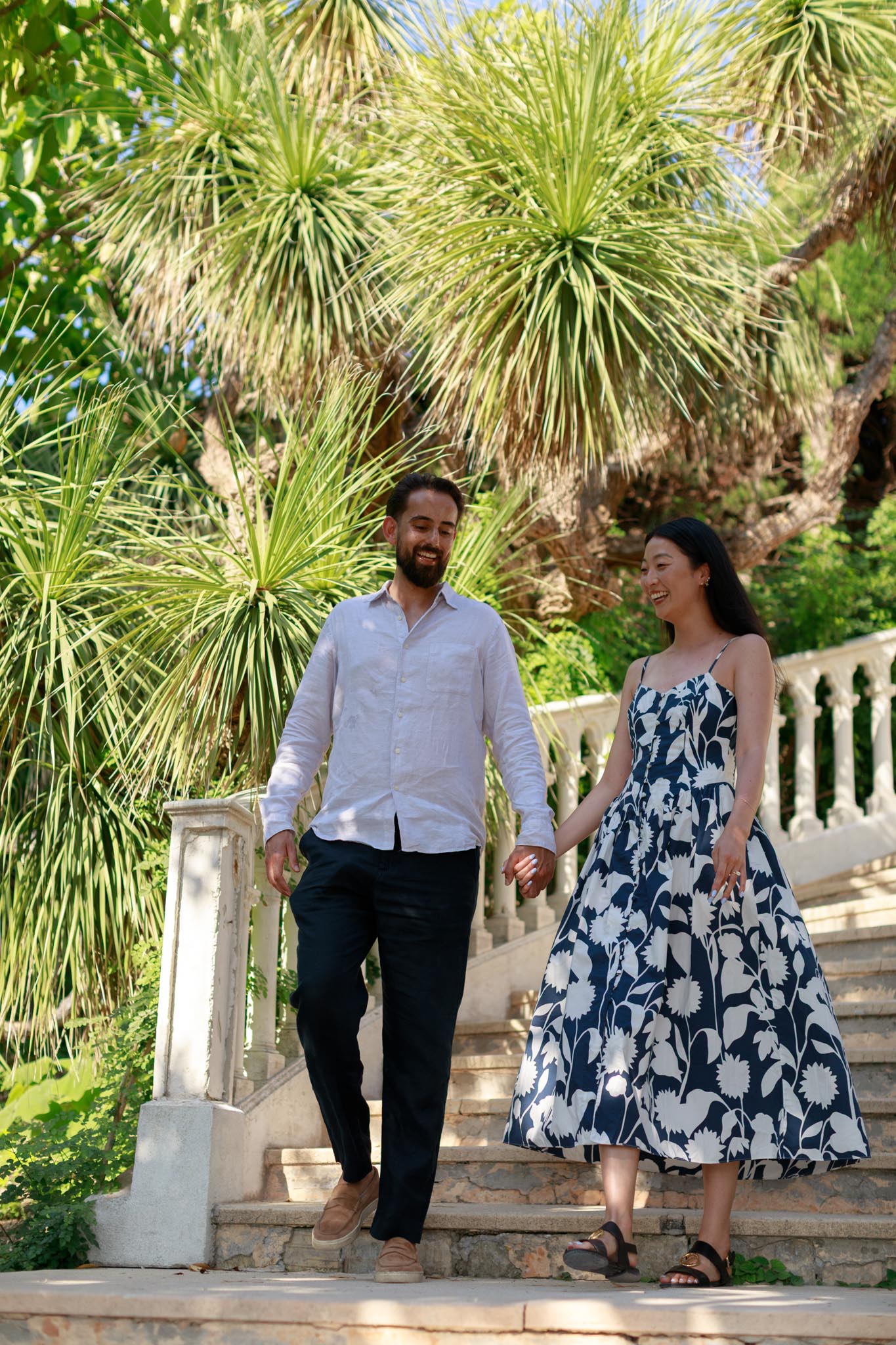 Their session took place in mid-June from 17:00 to 18:00, just before the villa closed for the evening. R’s idea was especially sweet. Rather than proposing immediately, he asked us to follow them naturally through the gardens at first, capturing quiet moments as they explored together. When they reached a seaside viewpoint, he paused and proposed, creating a genuine and emotional surprise that unfolded beautifully in the soft evening light.