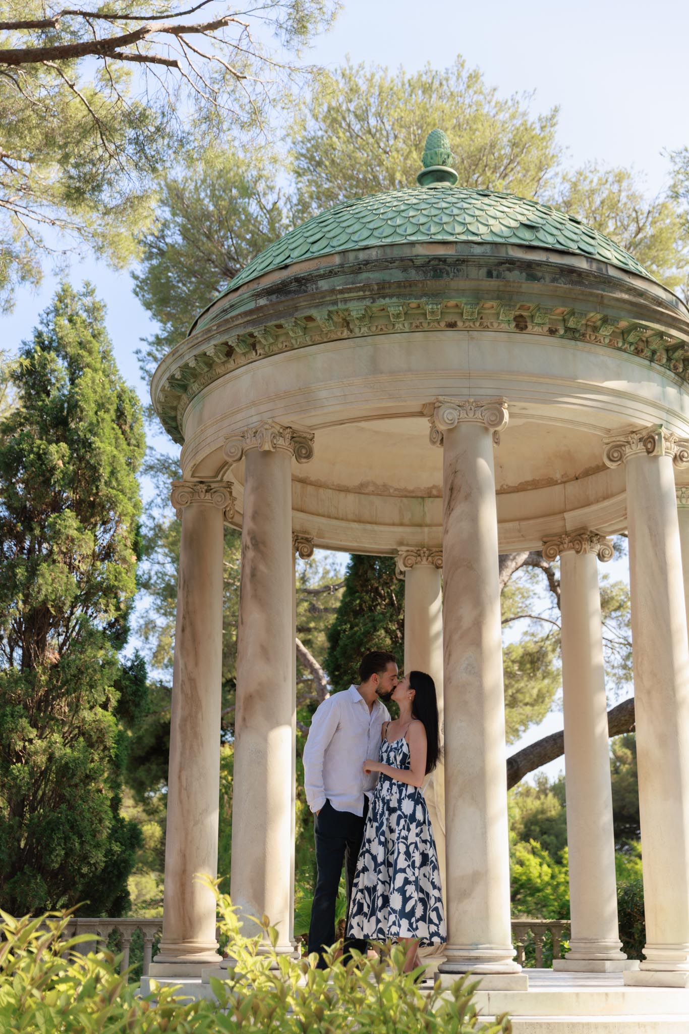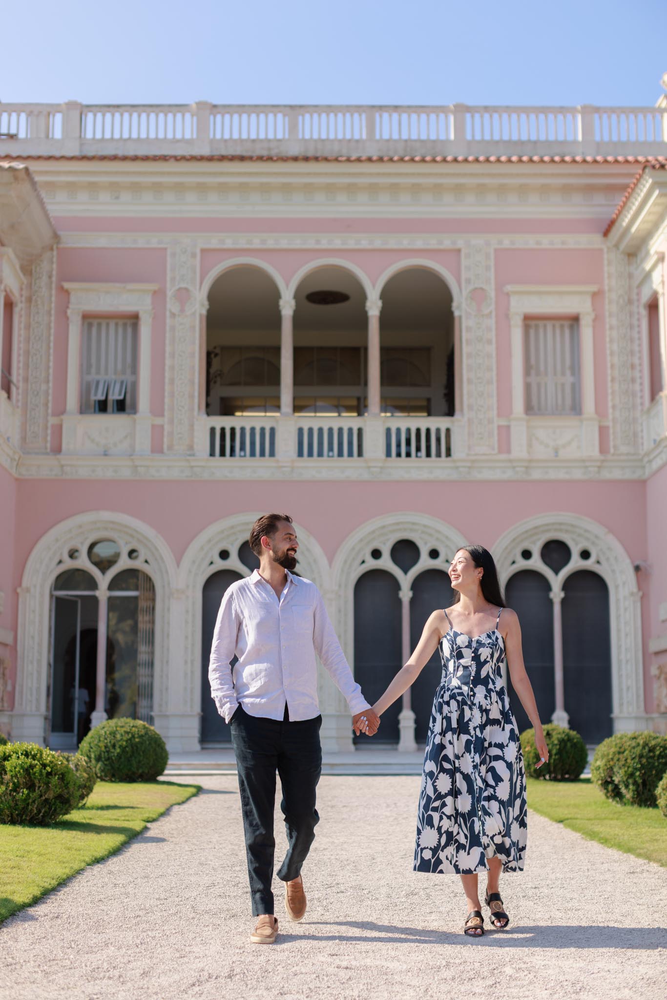 After the proposal, we continued walking through the villa’s gardens, photographing them among the elegant pathways, fountains, and panoramic sea views. The architecture and landscaping of the estate create a timeless atmosphere that feels both refined and romantic, making it an exceptional place to celebrate an engagement.