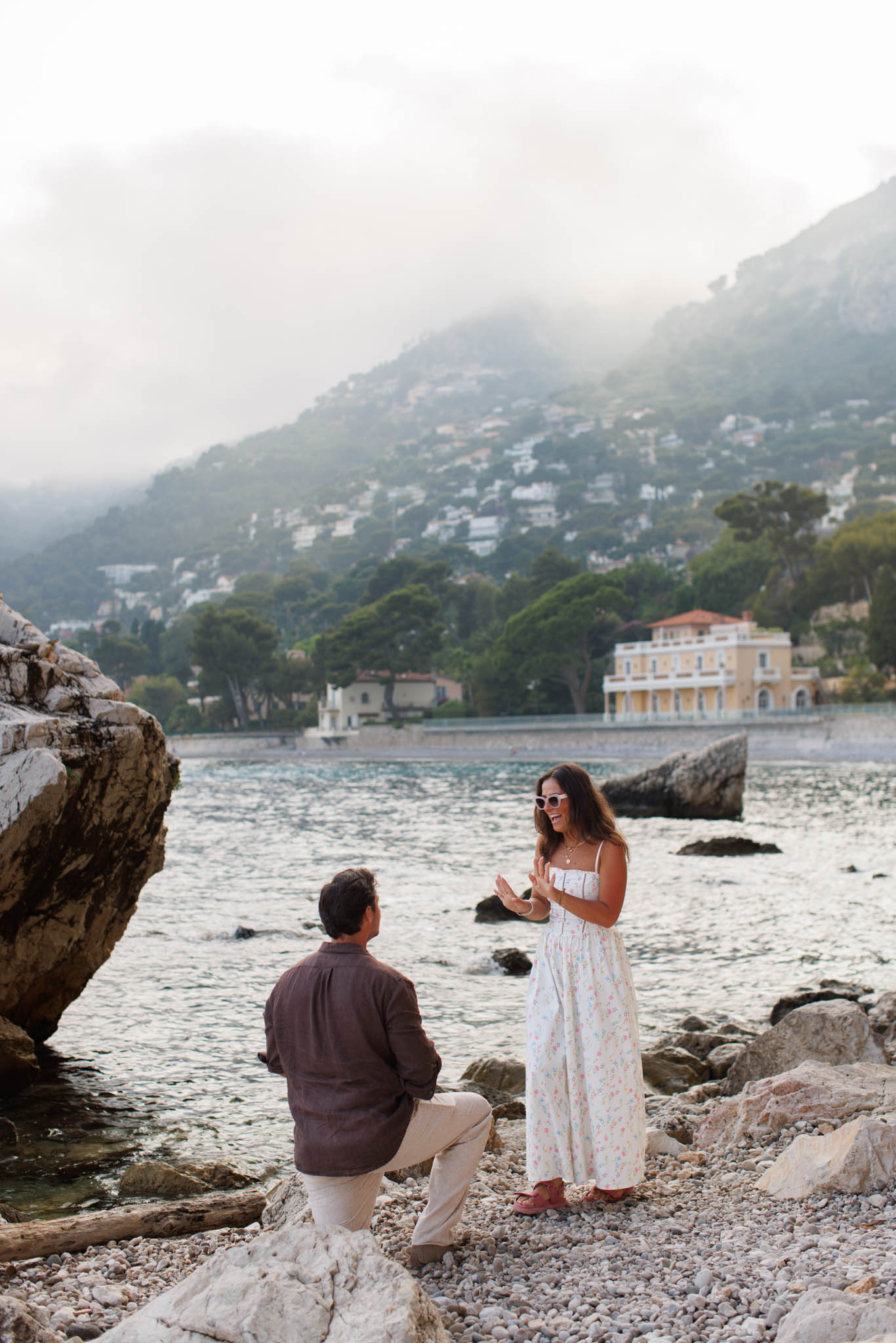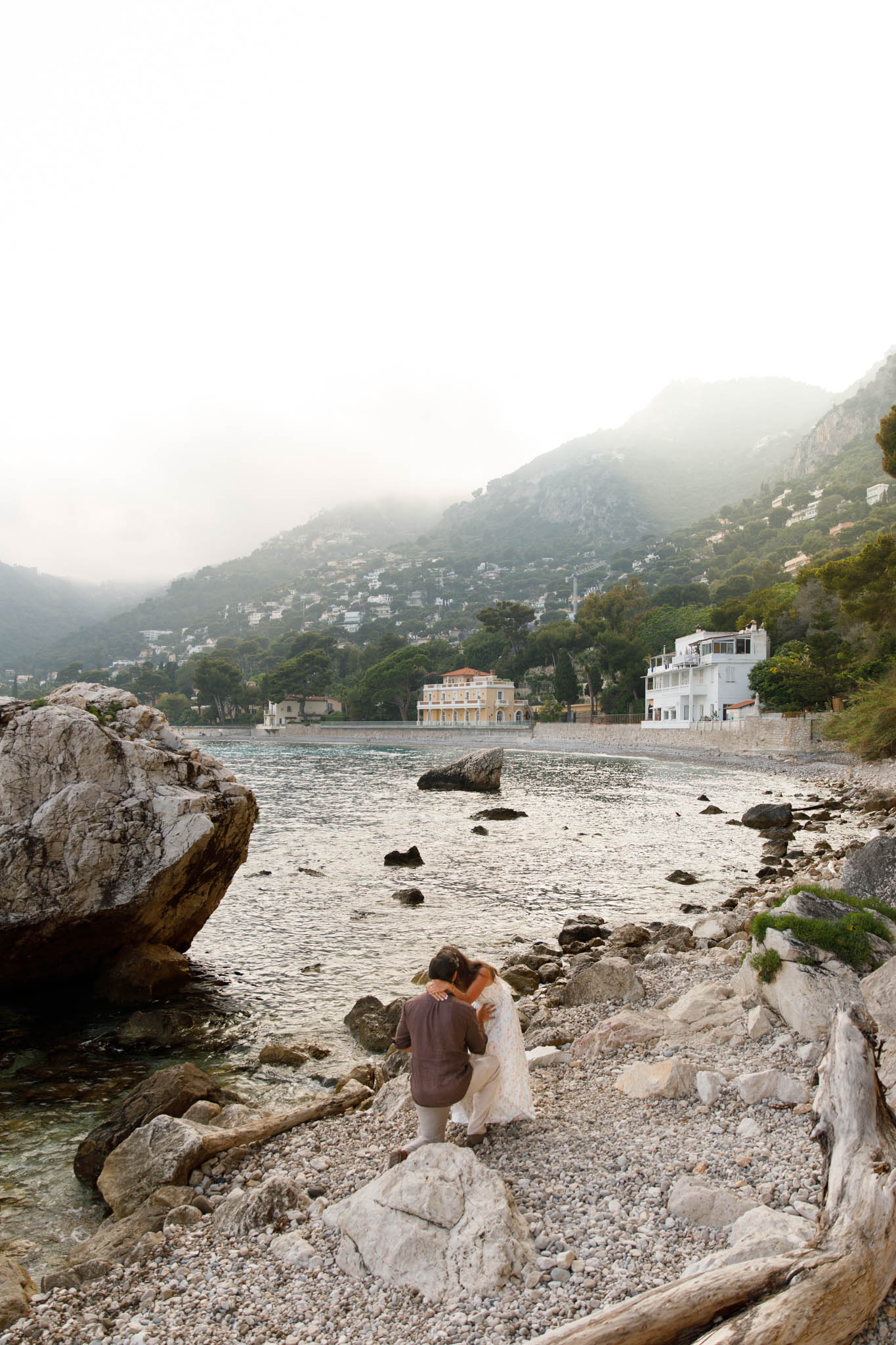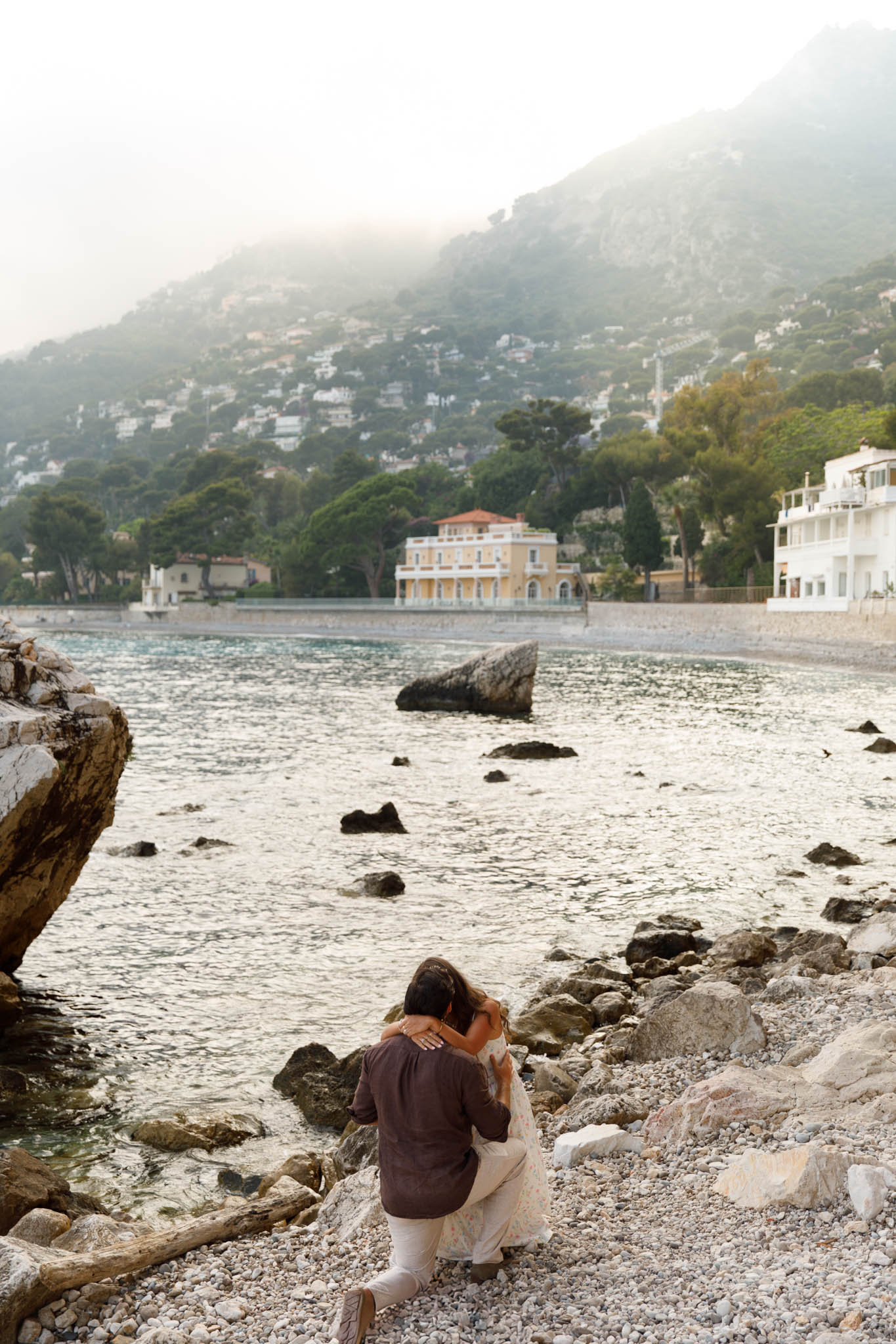 J had originally planned to propose to B in the village of Èze, with its dramatic views over the Mediterranean. However, when we arrived that day, the weather had other plans. The day turned out to be extremely cloudy and misty, with very little visibility of the sea or sky. Because of this, we made a last minute decision to adjust the schedule and move the proposal to Èze-sur-Mer instead.