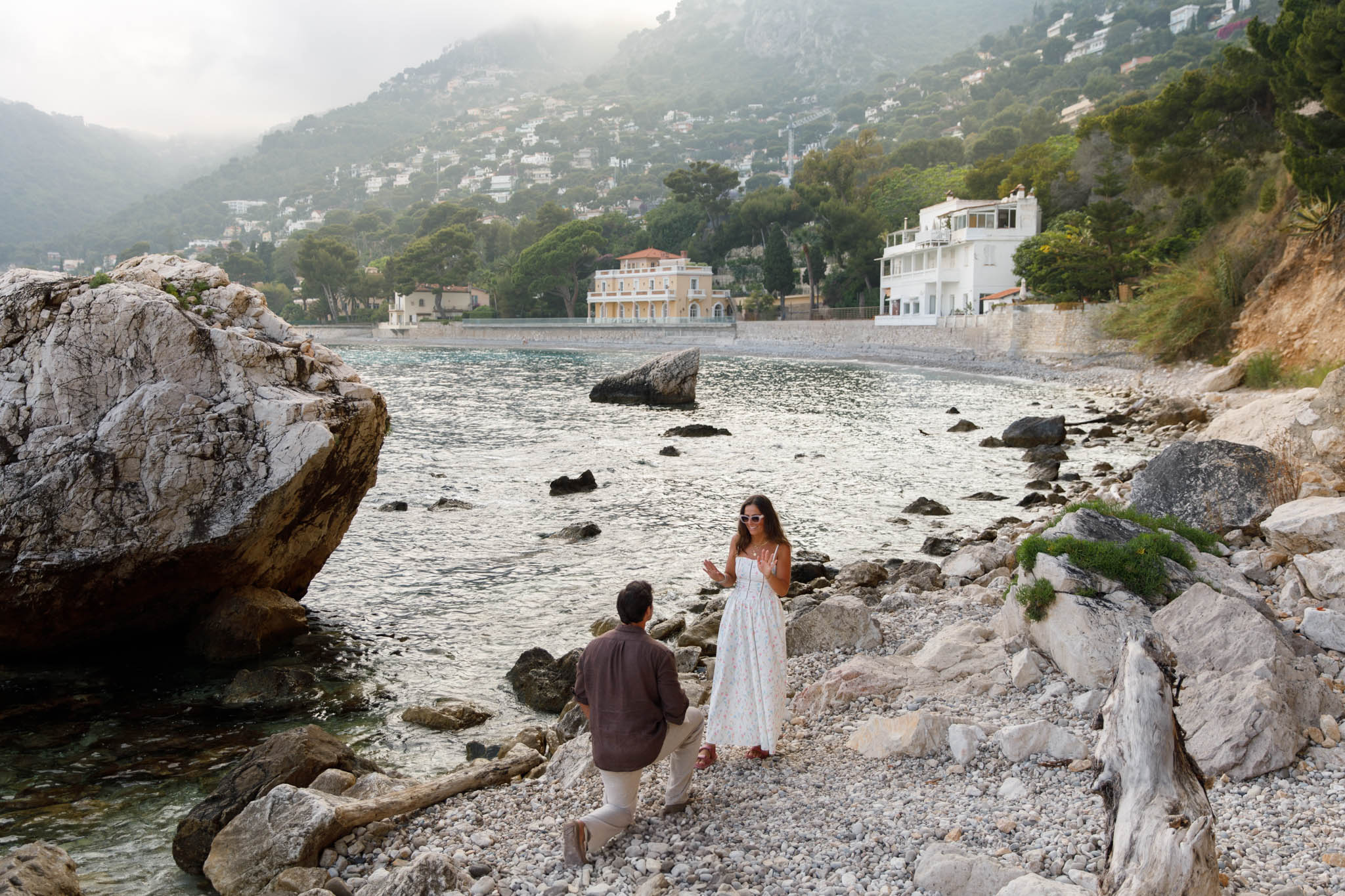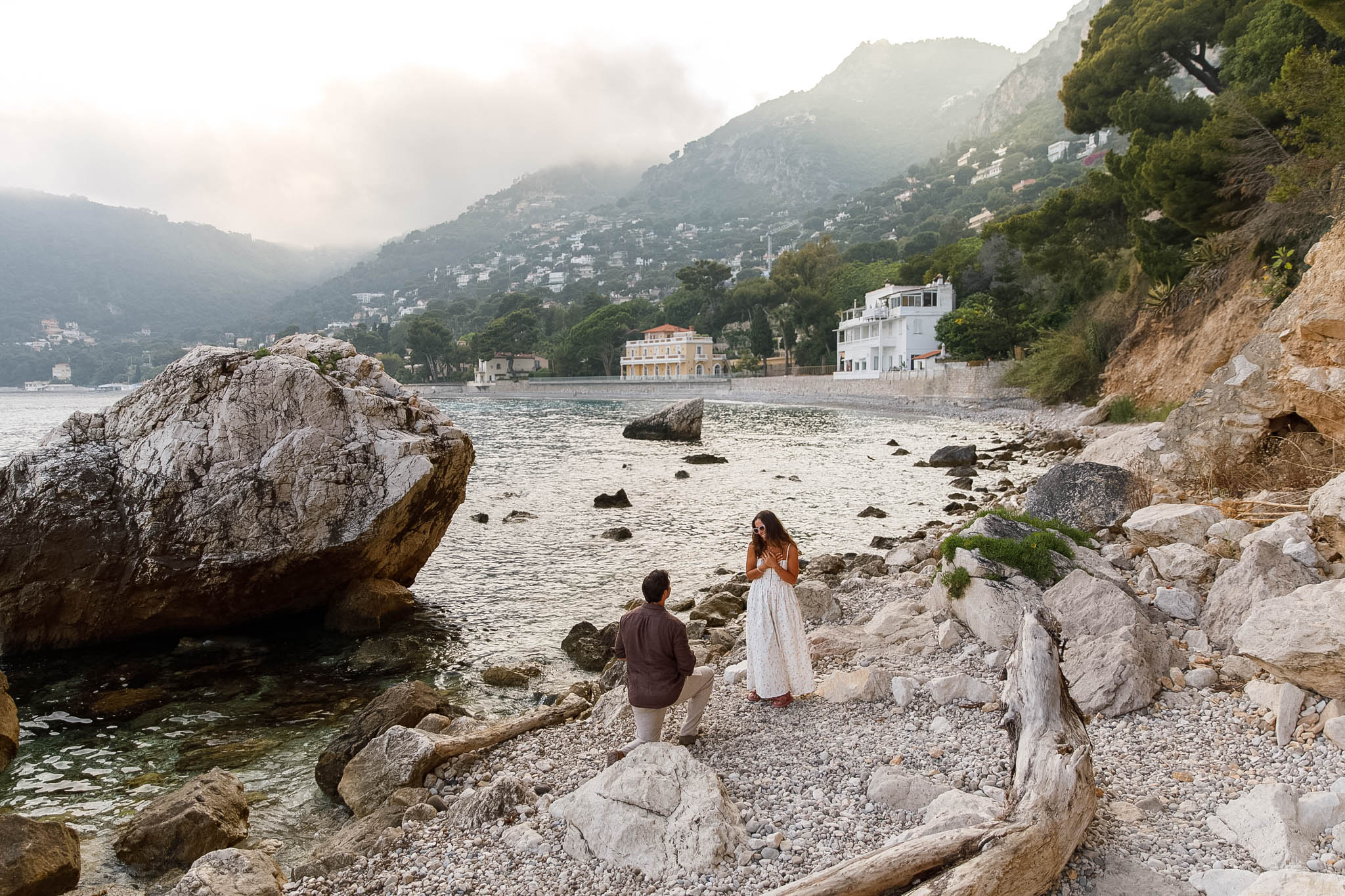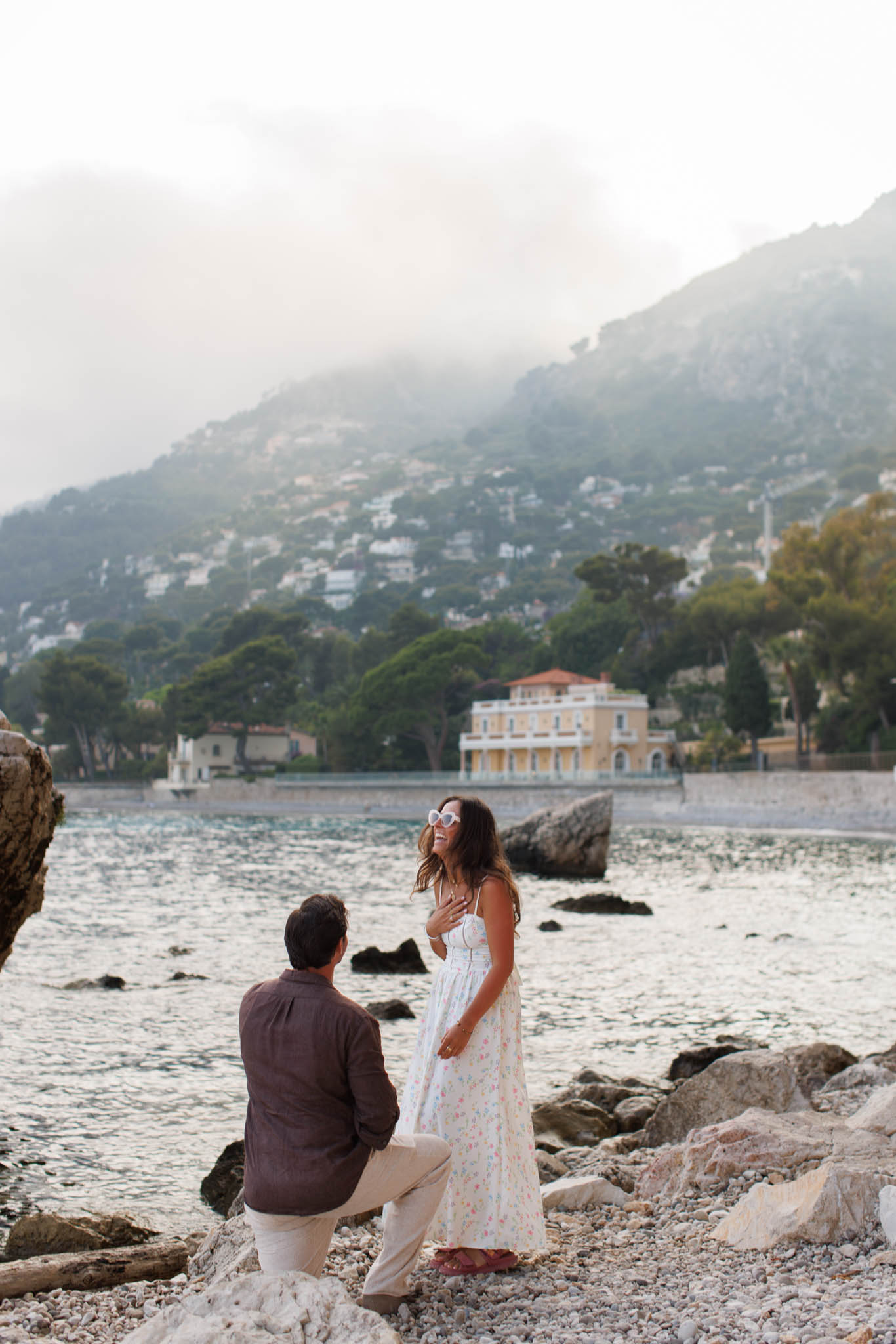 J had originally planned to propose to B in the village of Èze, with its dramatic views over the Mediterranean. However, when we arrived that day, the weather had other plans. The day turned out to be extremely cloudy and misty, with very little visibility of the sea or sky. Because of this, we made a last minute decision to adjust the schedule and move the proposal to Èze-sur-Mer instead.