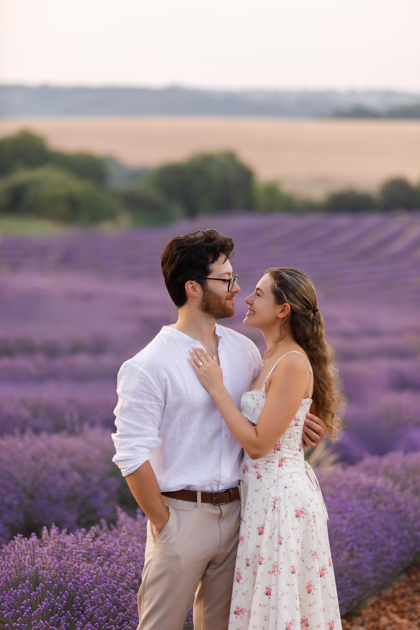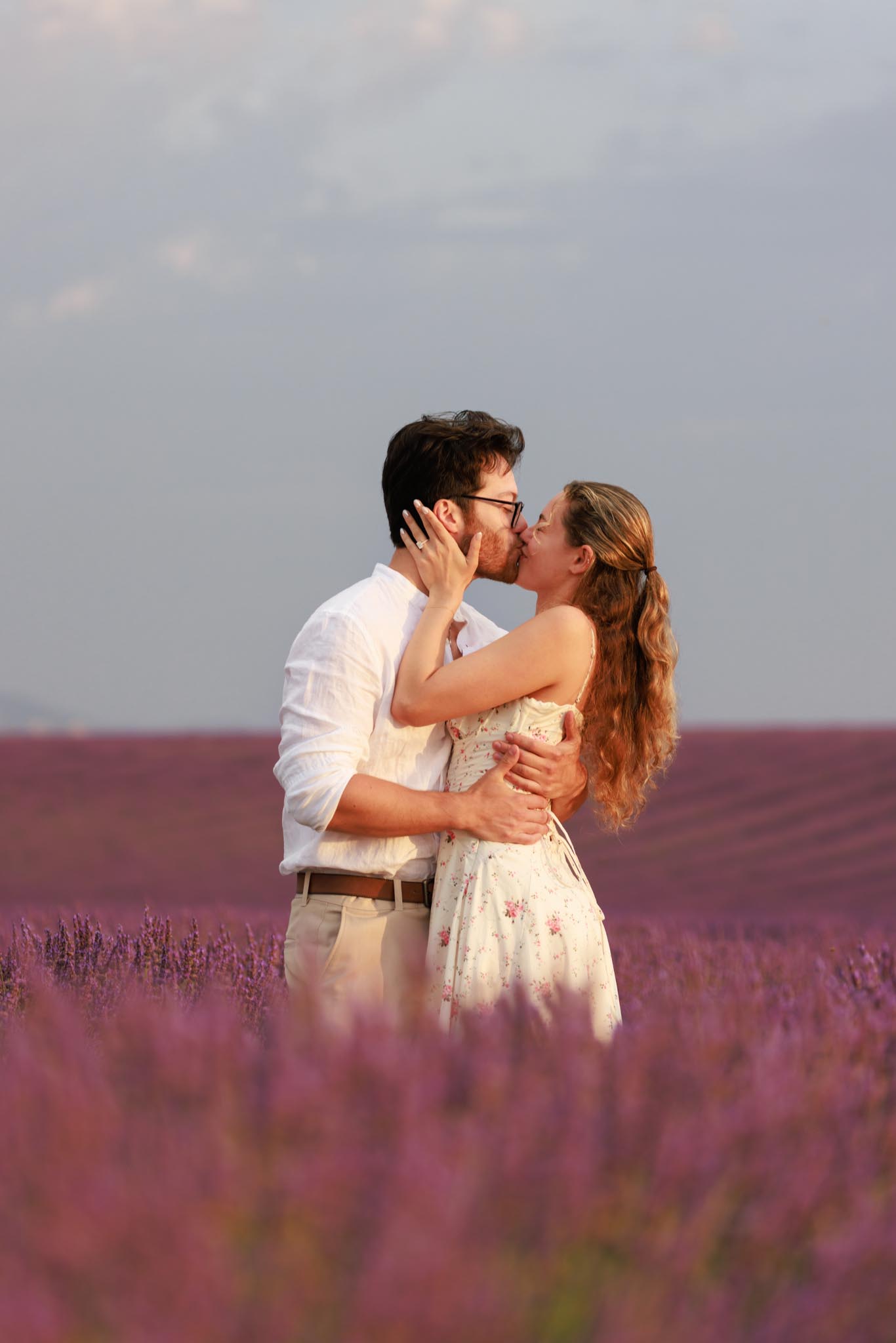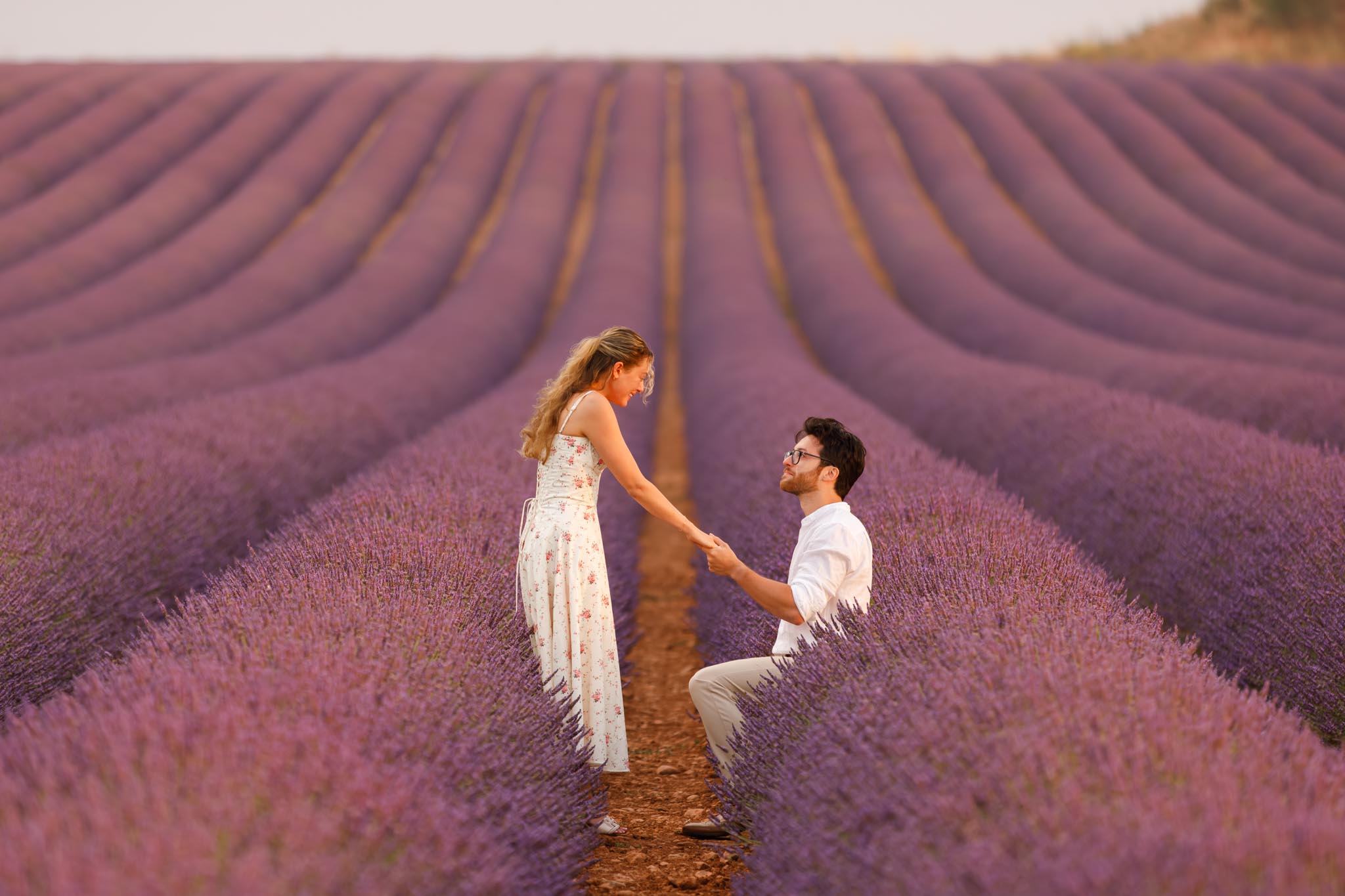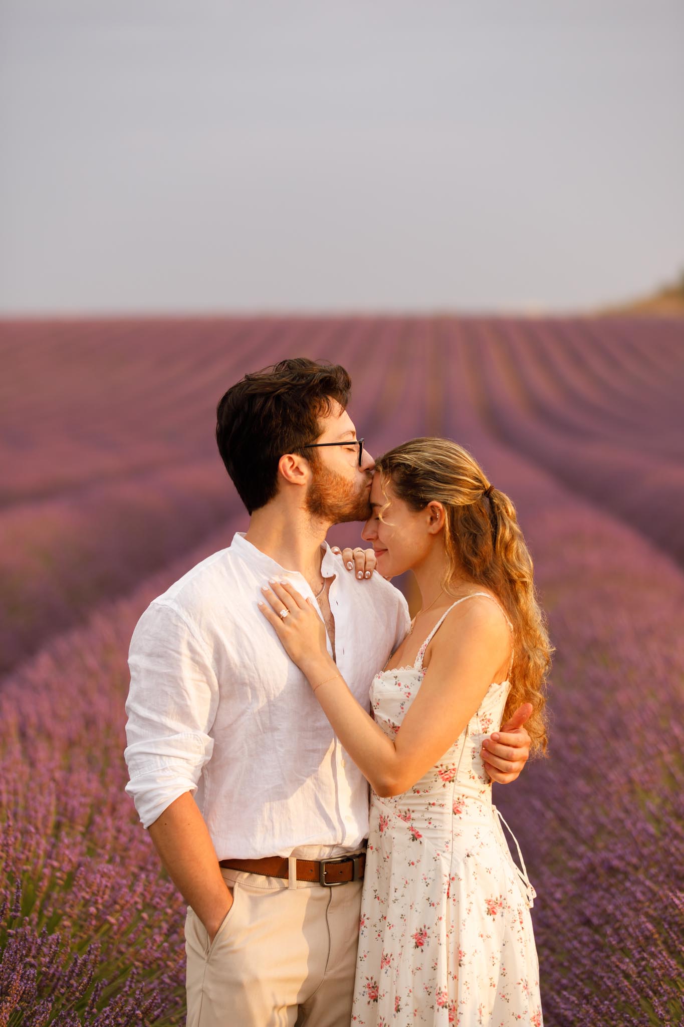 In late-June 2024, M planned a quiet sunrise proposal for D in the lavender fields of Valensole. We met just before sunrise at 06:10 and photographed until 07:10, capturing the soft morning light as it gently illuminated the landscape. The atmosphere was calm, warm, and perfectly suited to such an intimate moment.