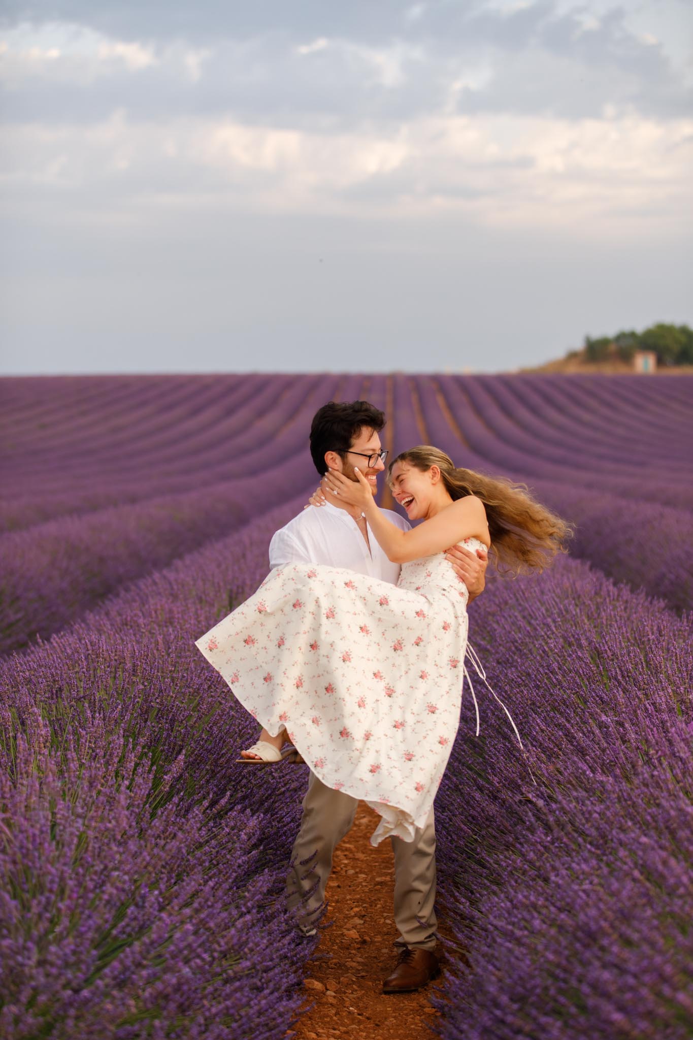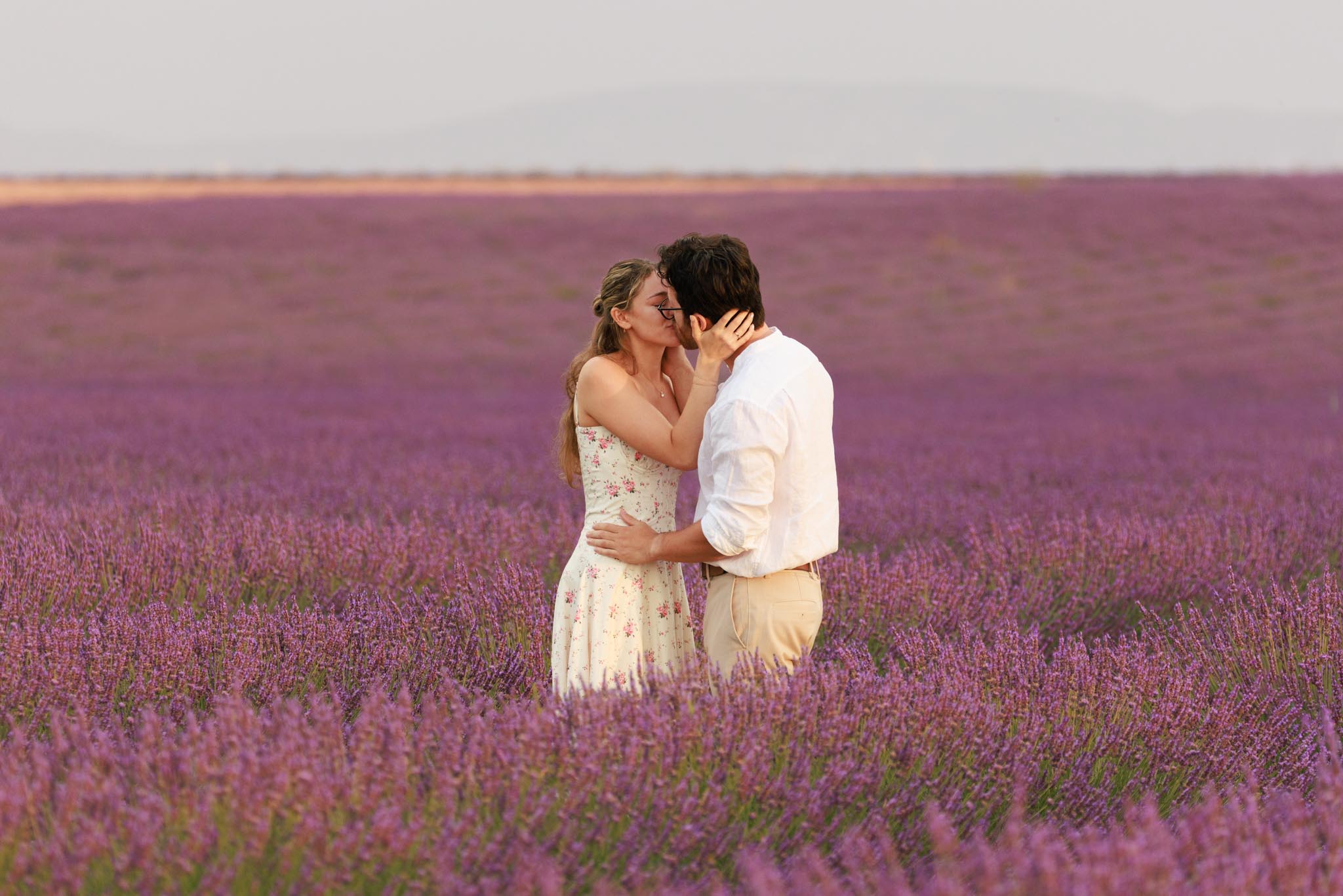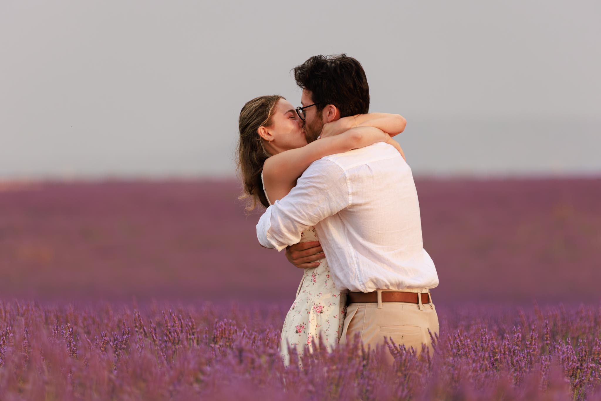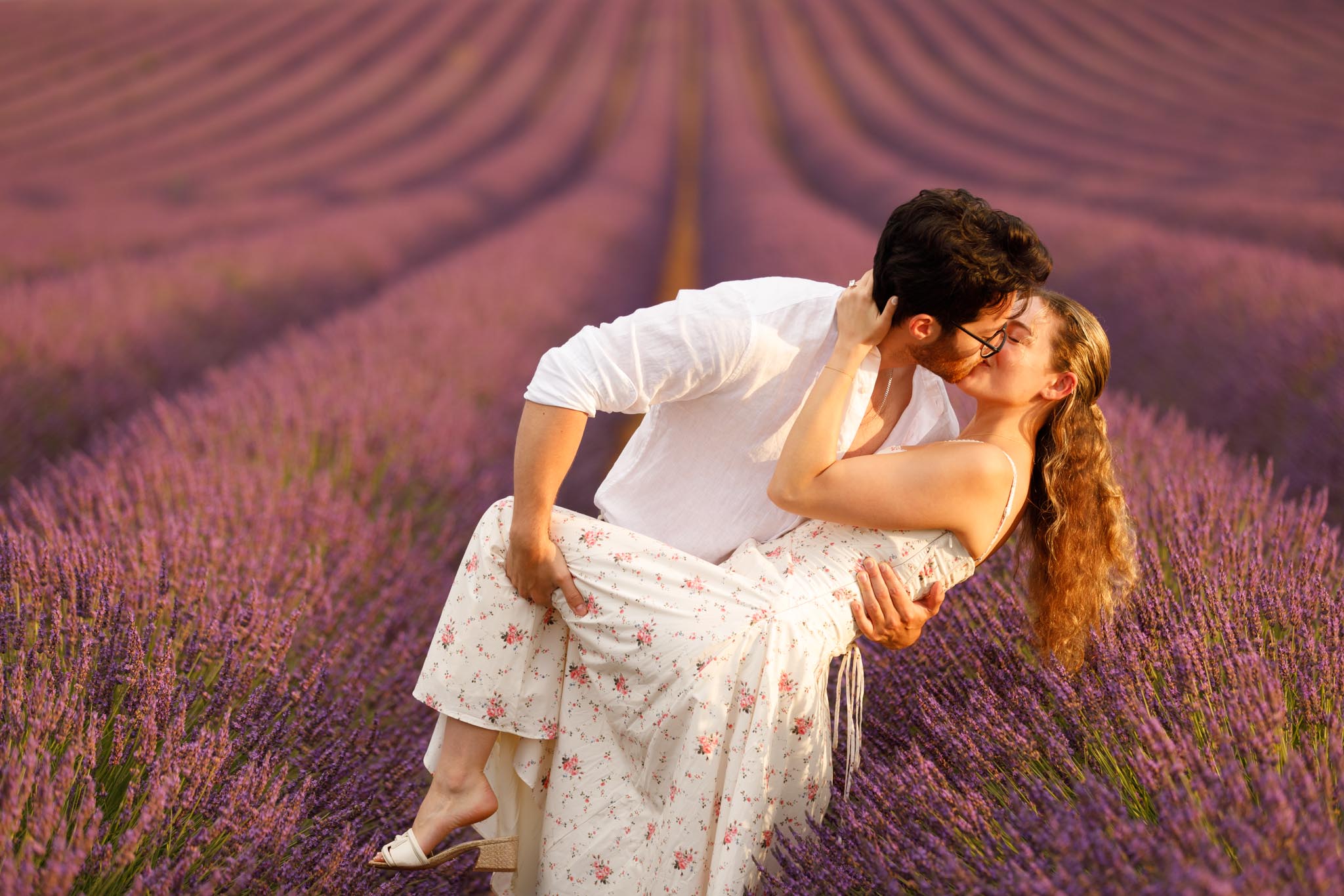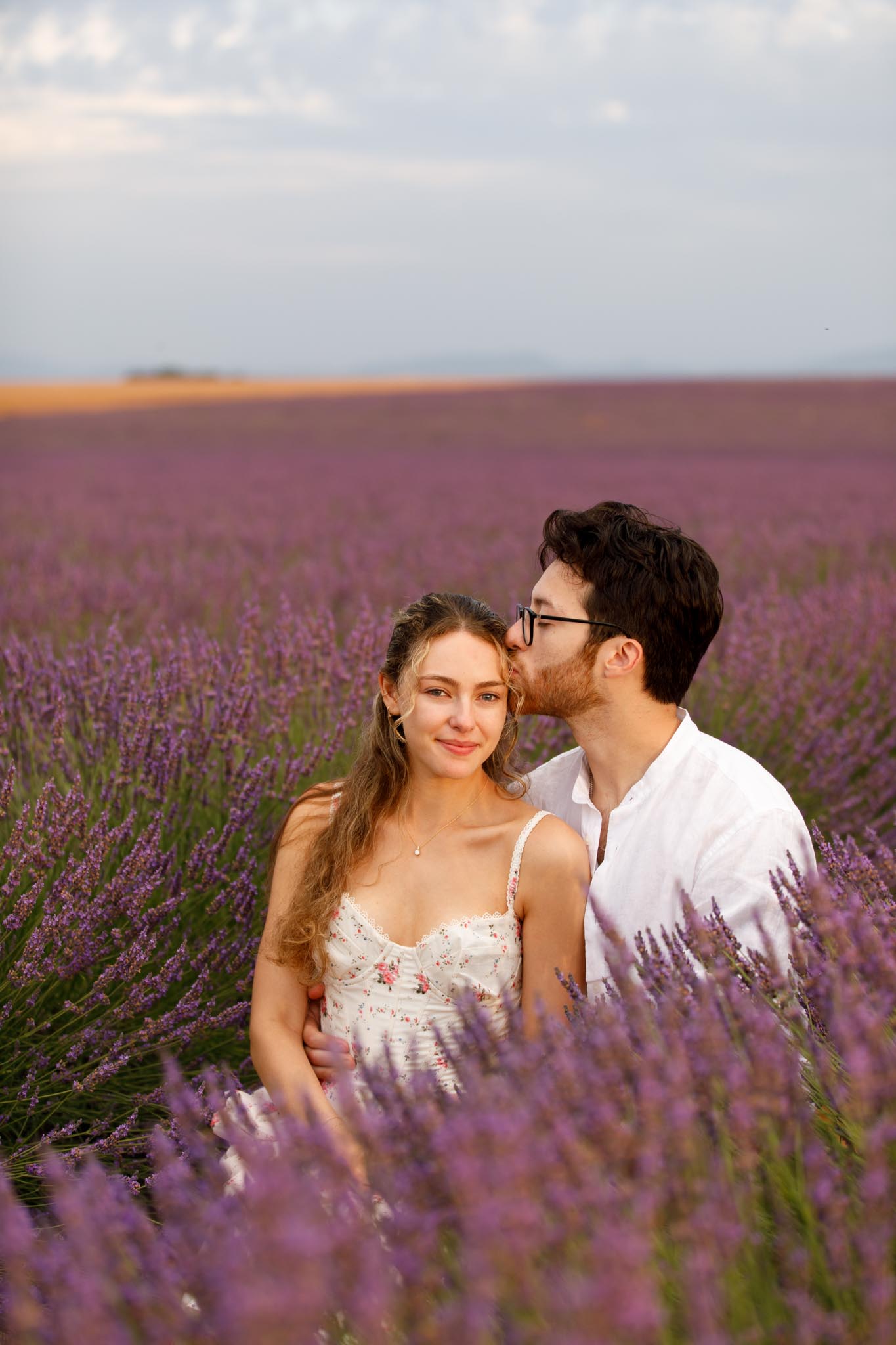 In late-June 2024, M planned a quiet sunrise proposal for D in the lavender fields of Valensole. We met just before sunrise at 06:10 and photographed until 07:10, capturing the soft morning light as it gently illuminated the landscape. The atmosphere was calm, warm, and perfectly suited to such an intimate moment.