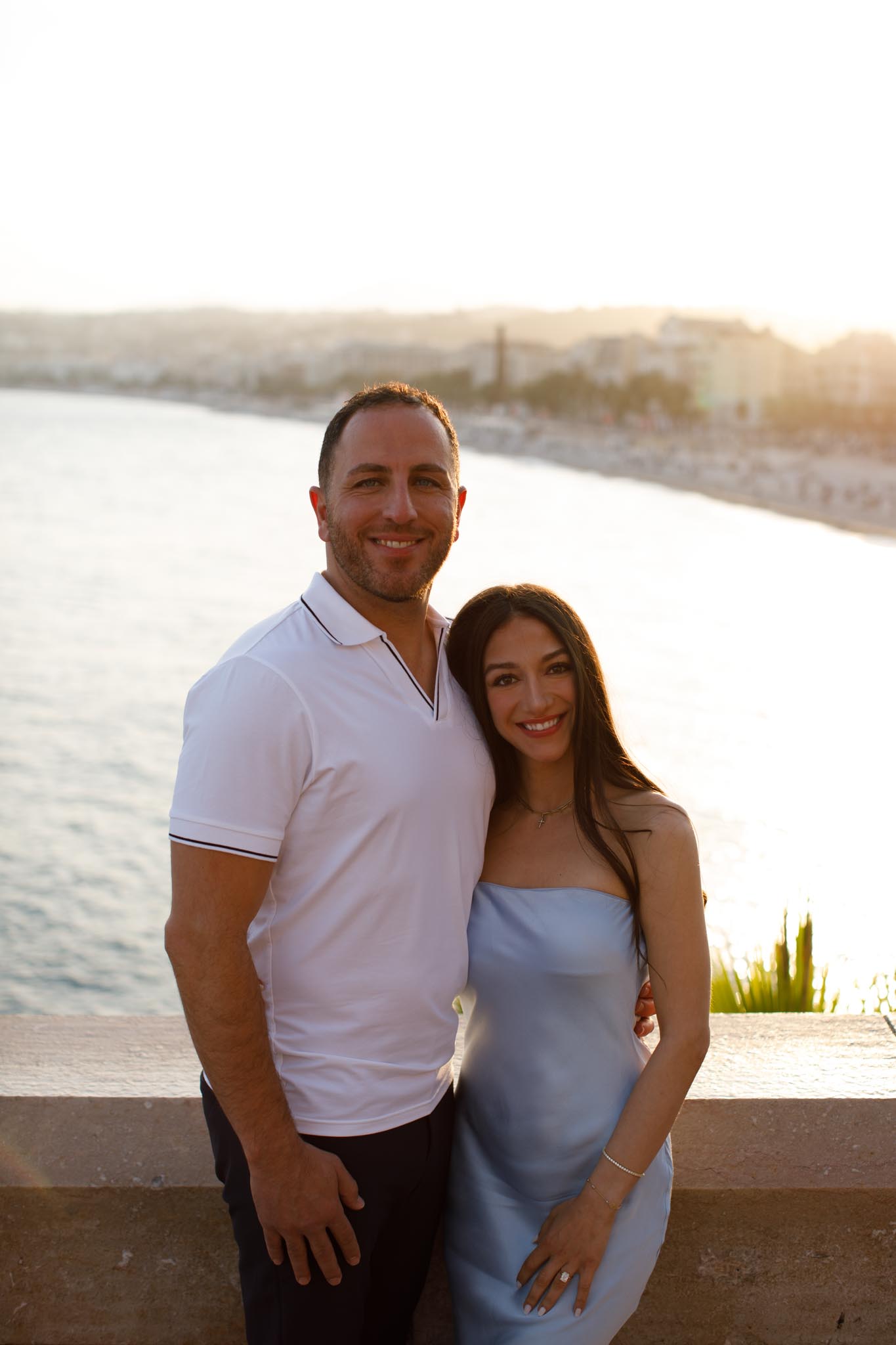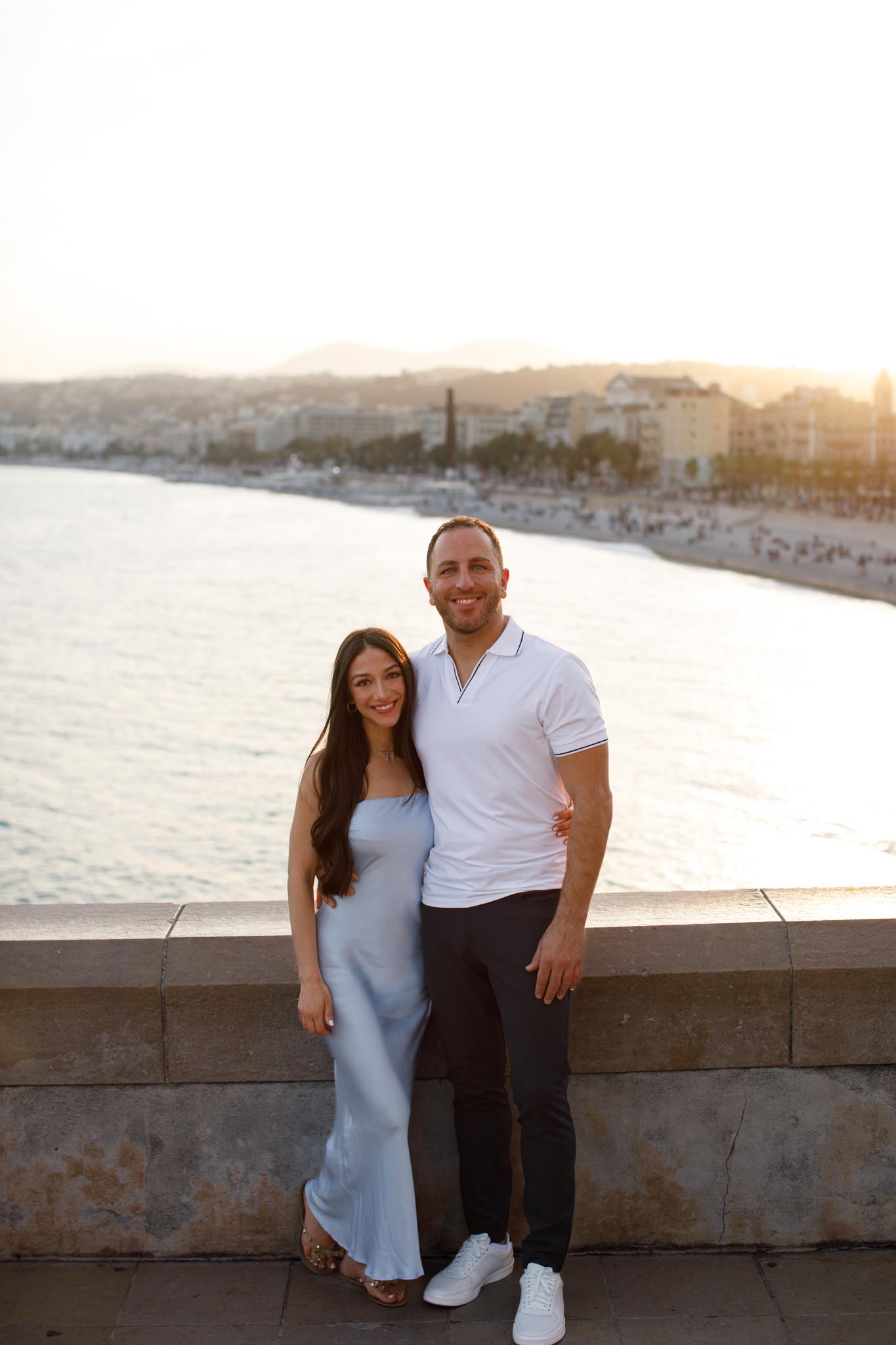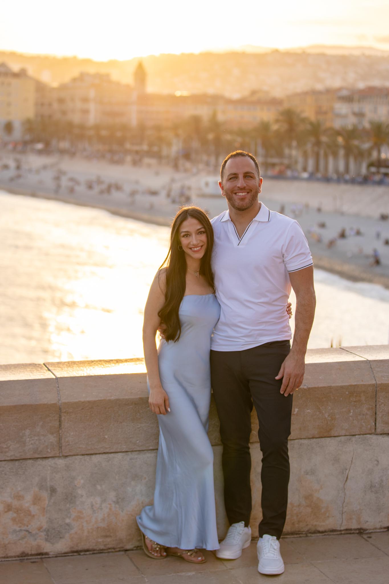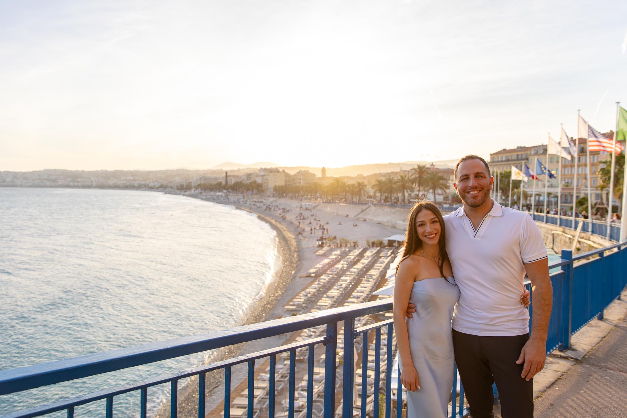 The combination of the thoughtful setup, family presence, and the natural beauty of Nice at sunset made this a truly memorable and joyful session for A and S.