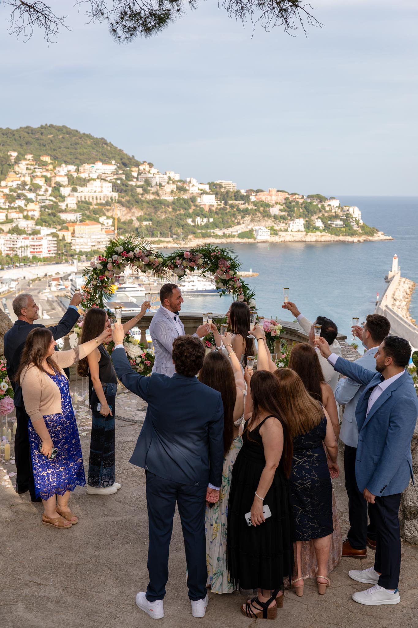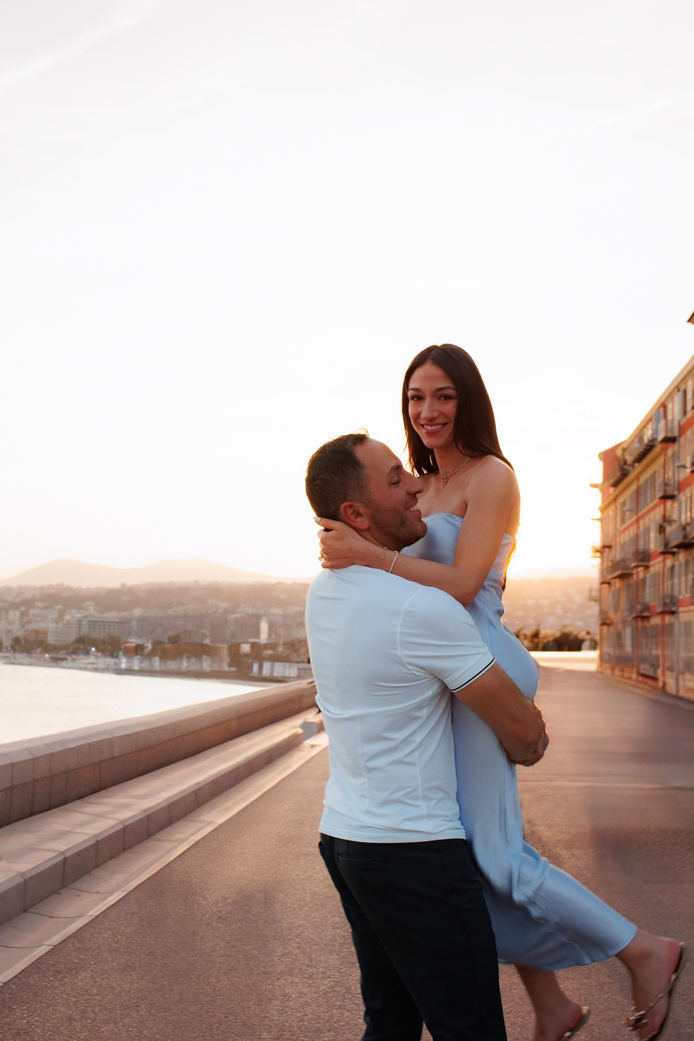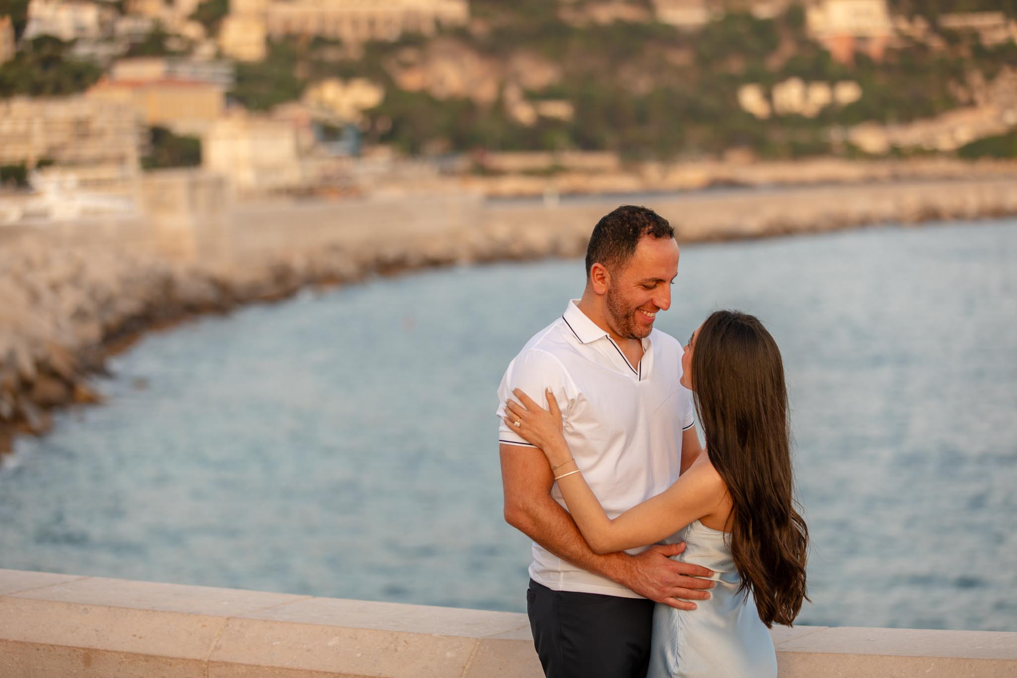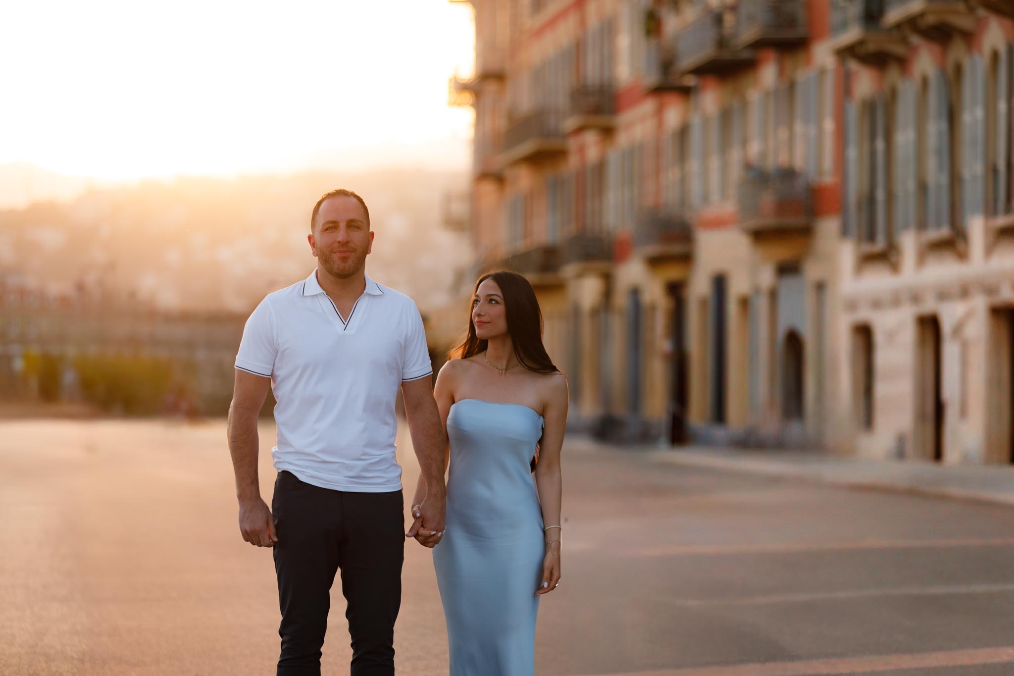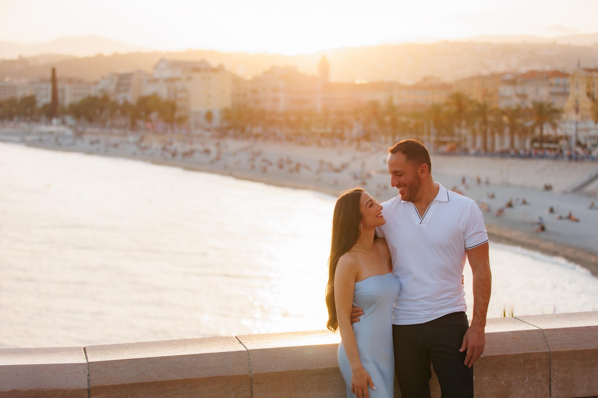 The combination of the thoughtful setup, family presence, and the natural beauty of Nice at sunset made this a truly memorable and joyful session for A and S.
