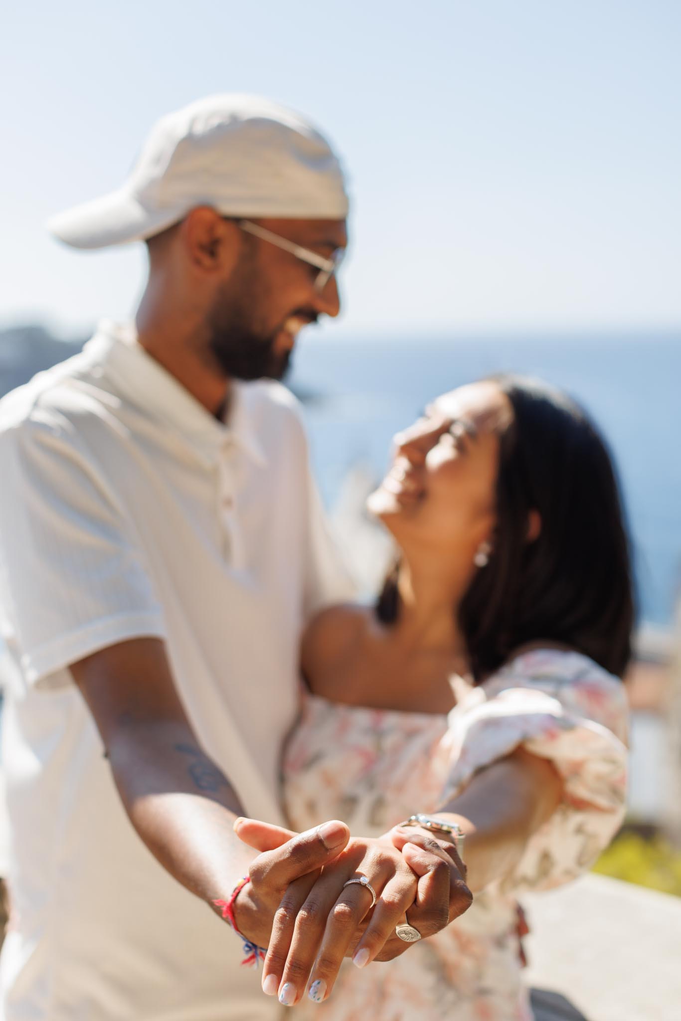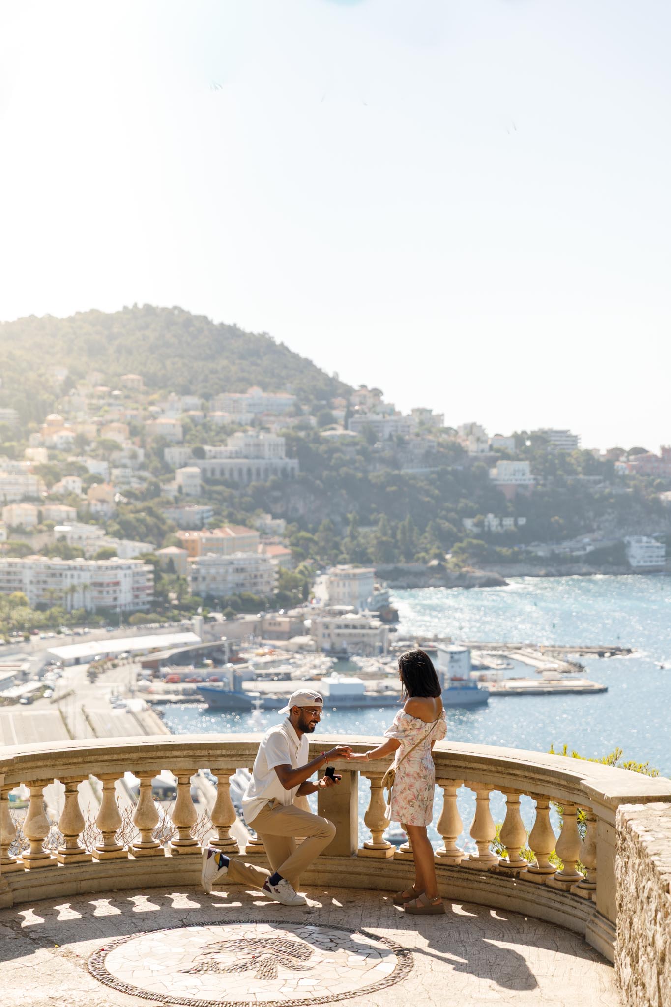 This proposal took place on July 22 in Nice, during the height of the summer season. K wanted to plan a proposal in the morning and was specifically looking for a location that would feel private despite it being one of the busiest times of the year. After discussing options, we chose Colline du Château, also known as Castle Hill, focusing on the side of the park overlooking Port Lympia. This section of the park is known for its soft morning light and lower number of visitors early in the day.