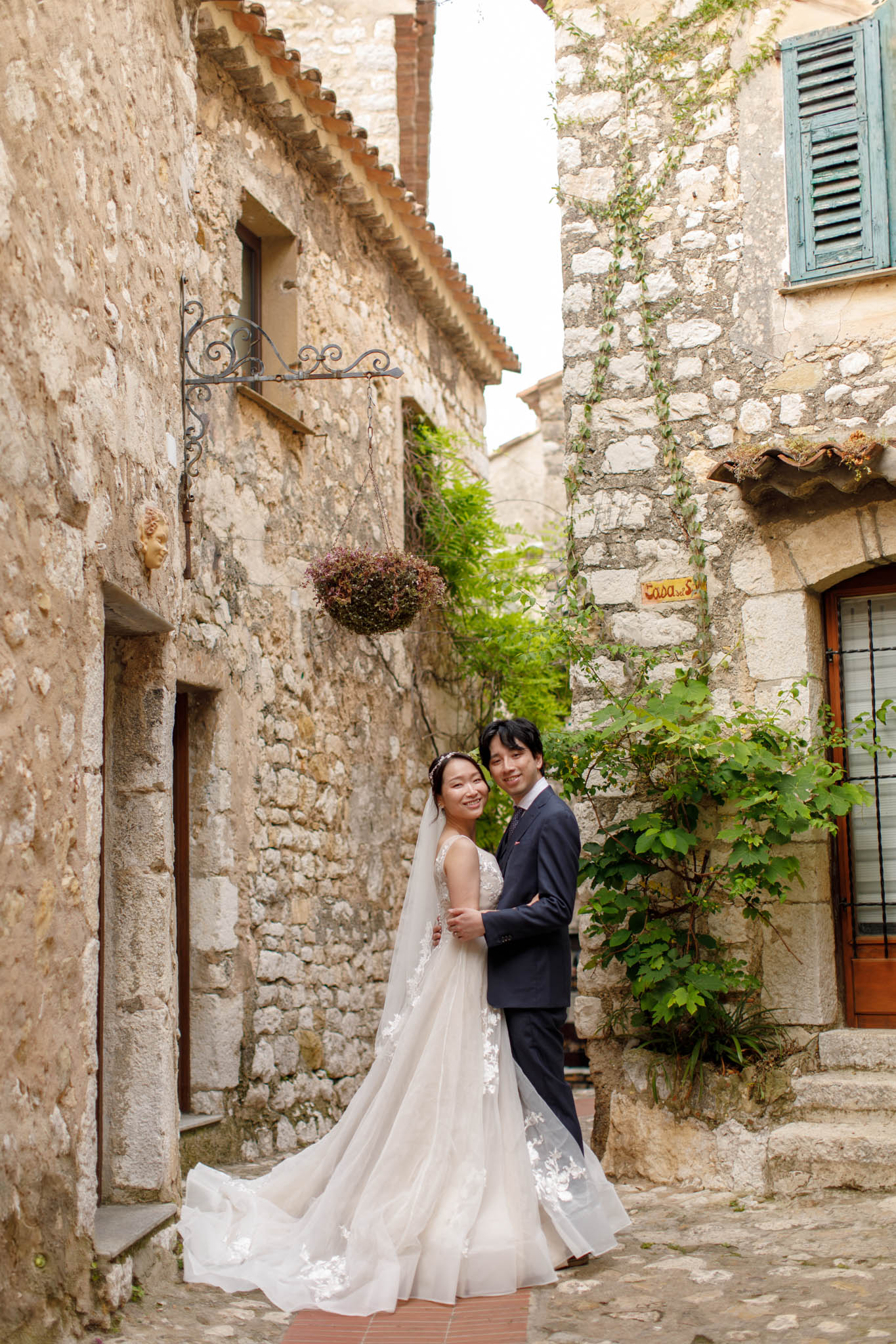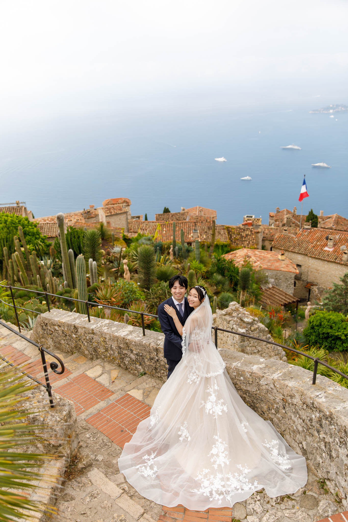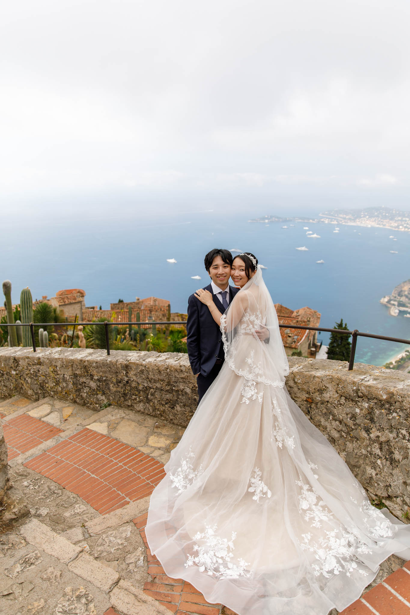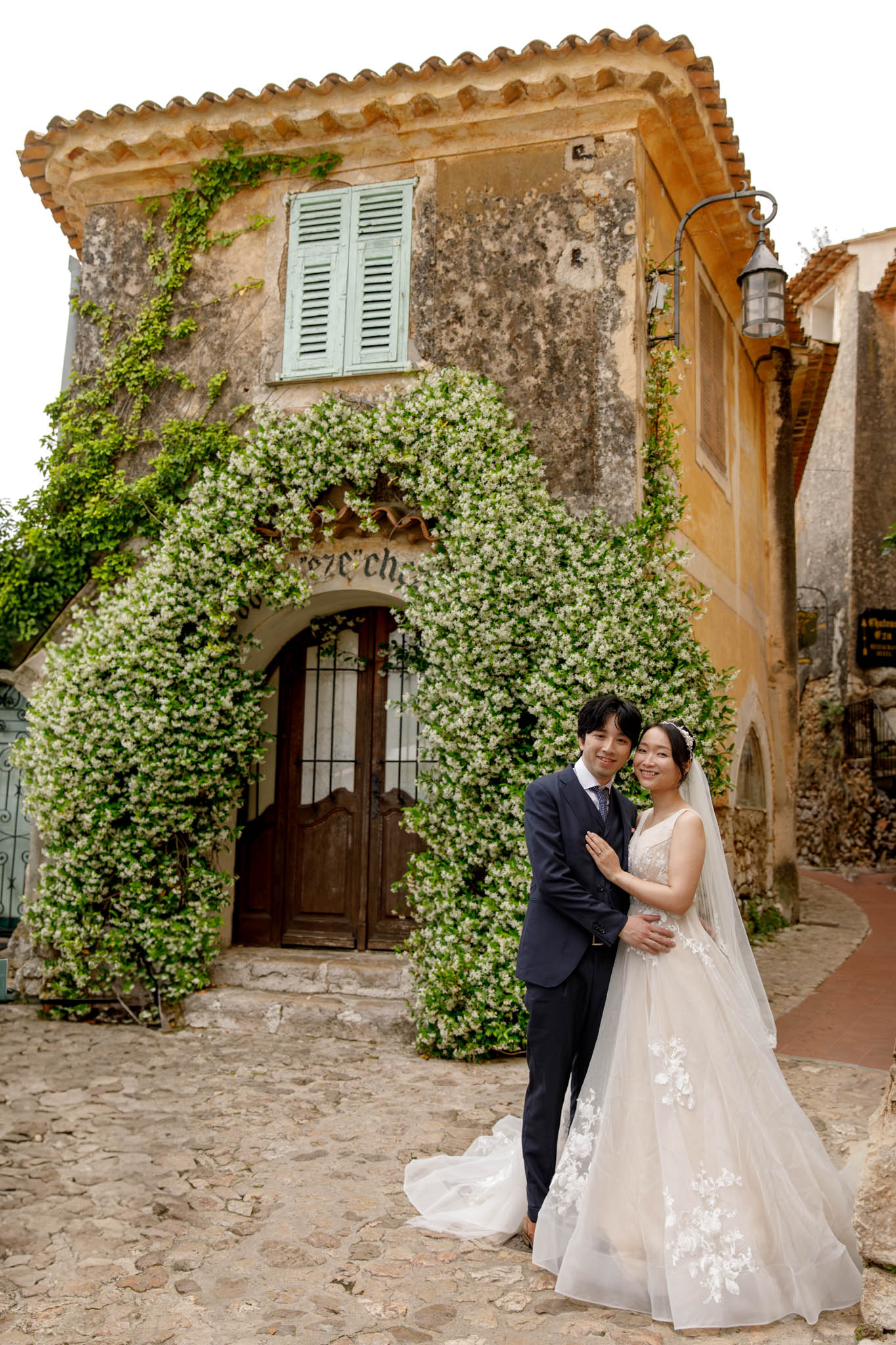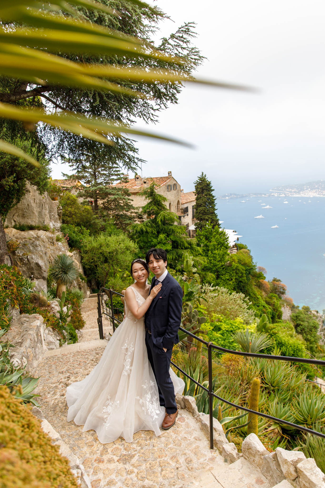 In early June, H and S joined us for a morning post-wedding photo session in Èze from 8:30 to 9:30. They had already celebrated their wedding but wanted additional portraits together in a beautiful setting. We went around the town also the Jardin Exotique d’Èze, one of the most scenic spots along the coast.