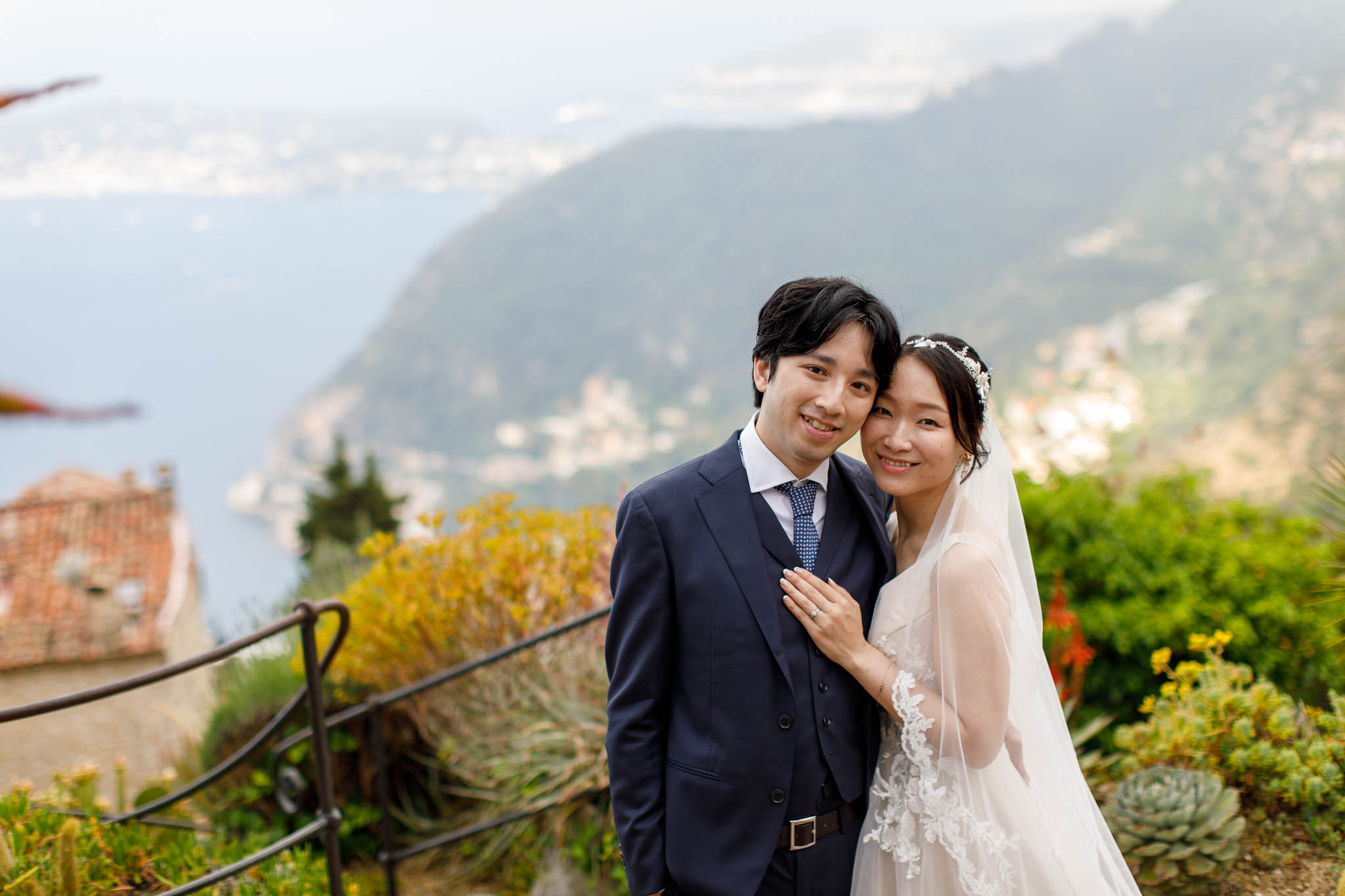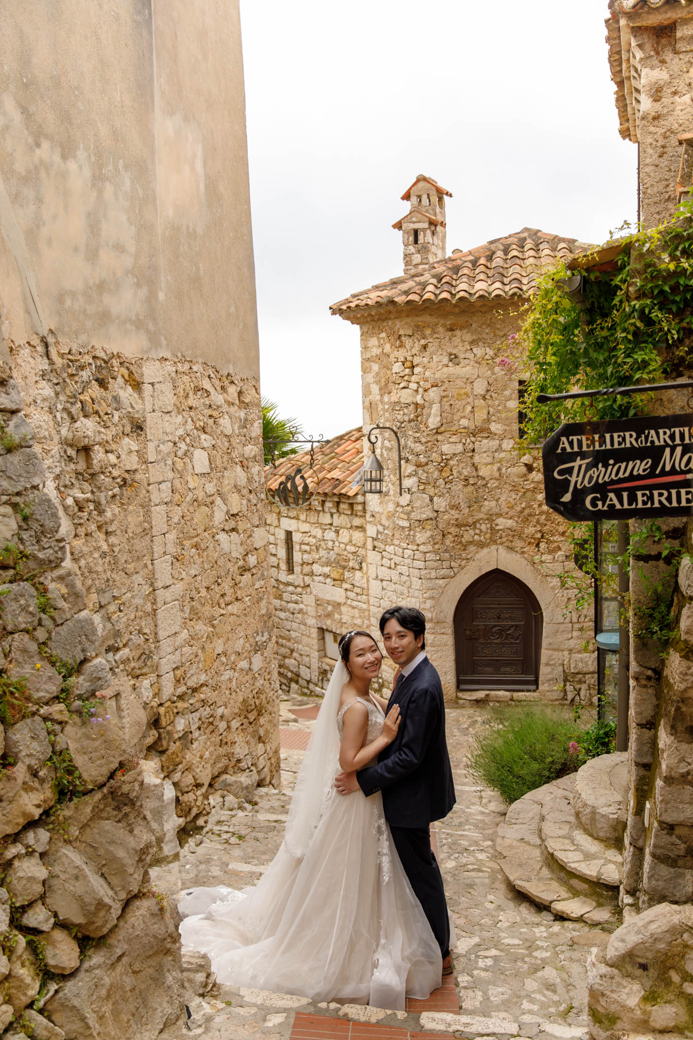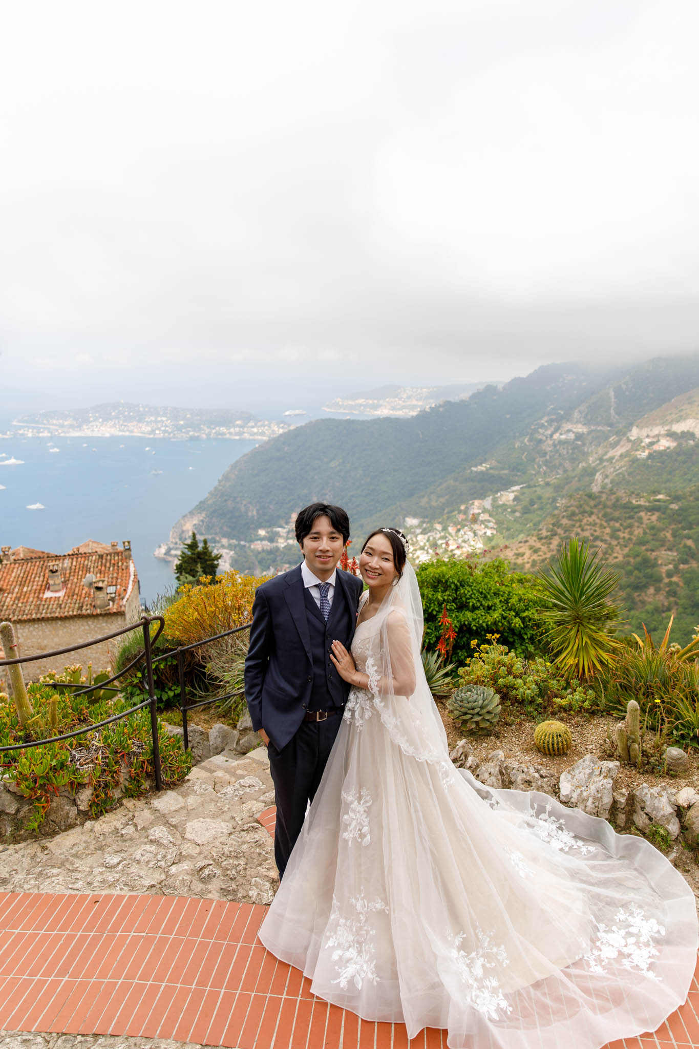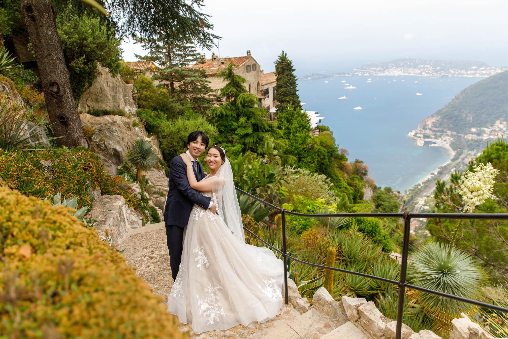 In early June, H and S joined us for a morning post-wedding photo session in Èze from 8:30 to 9:30. They had already celebrated their wedding but wanted additional portraits together in a beautiful setting. We went around the town also the Jardin Exotique d’Èze, one of the most scenic spots along the coast.