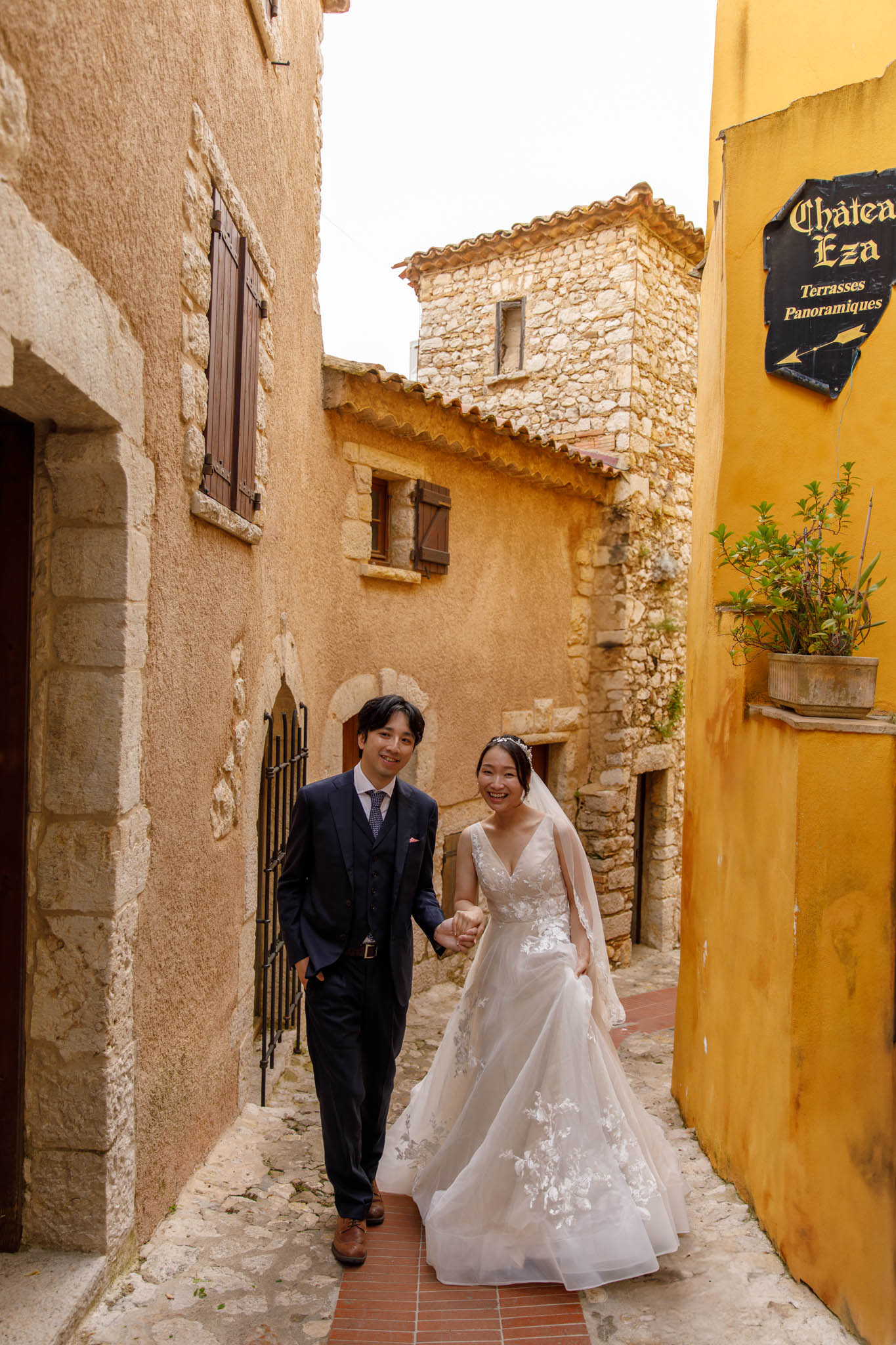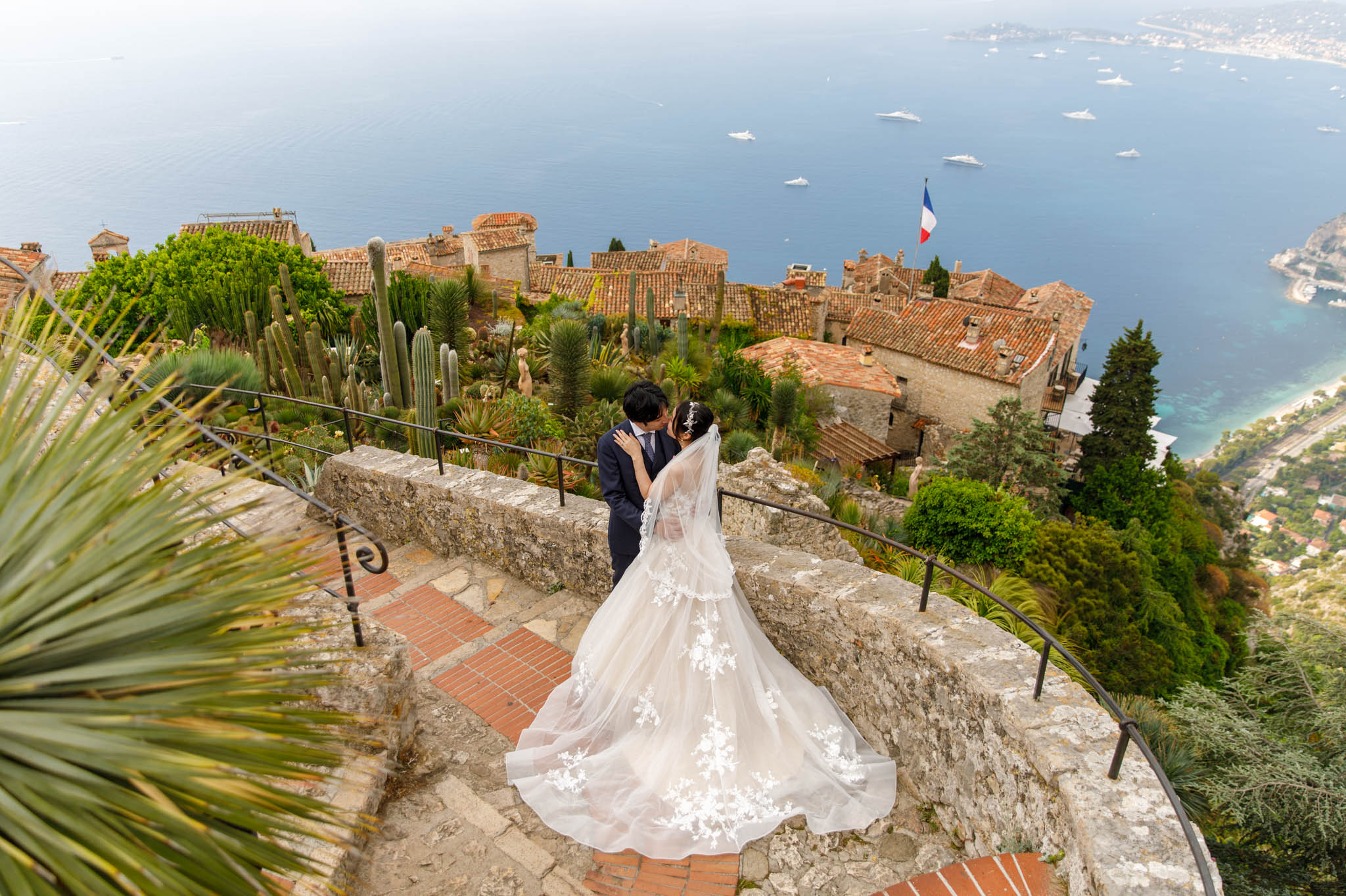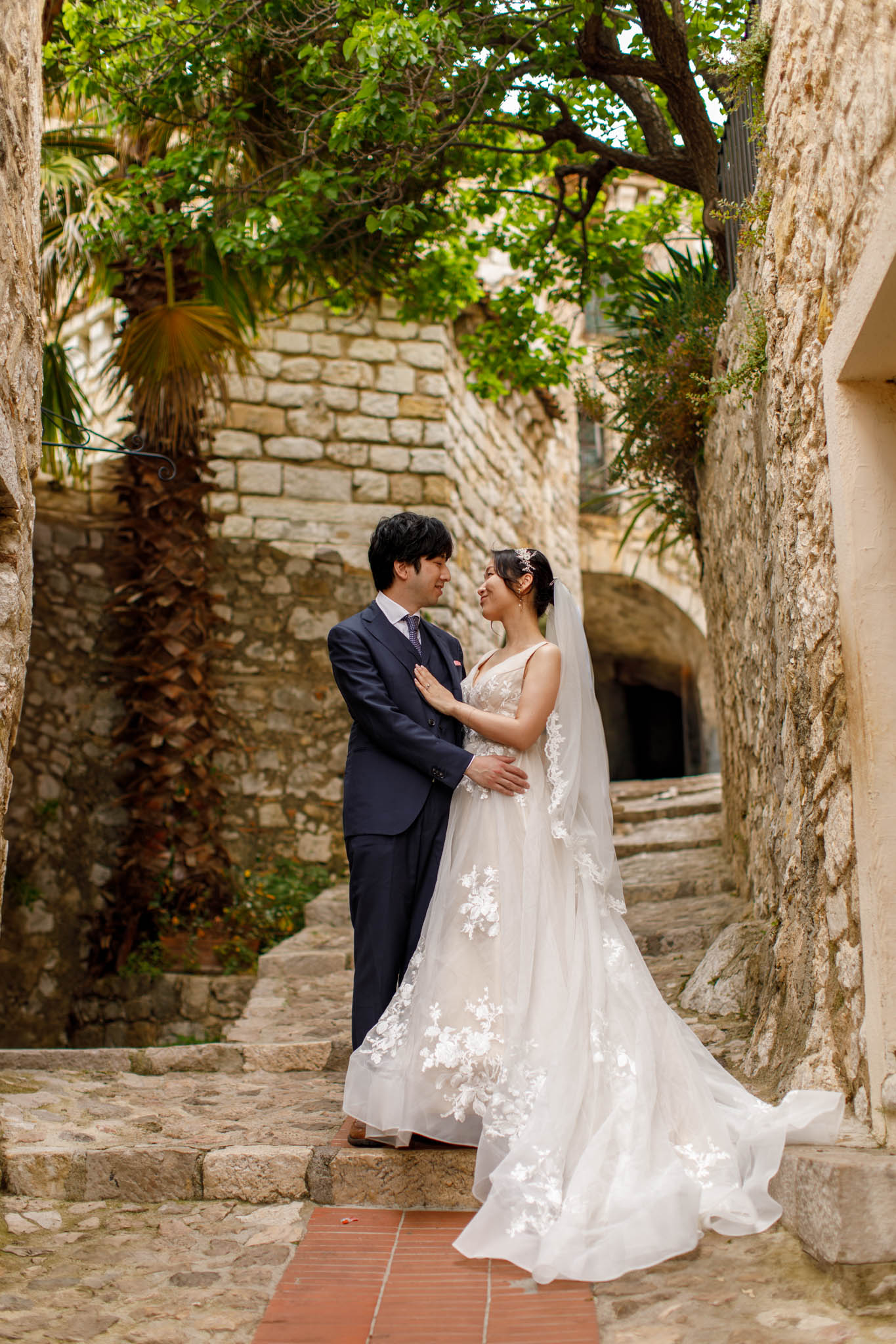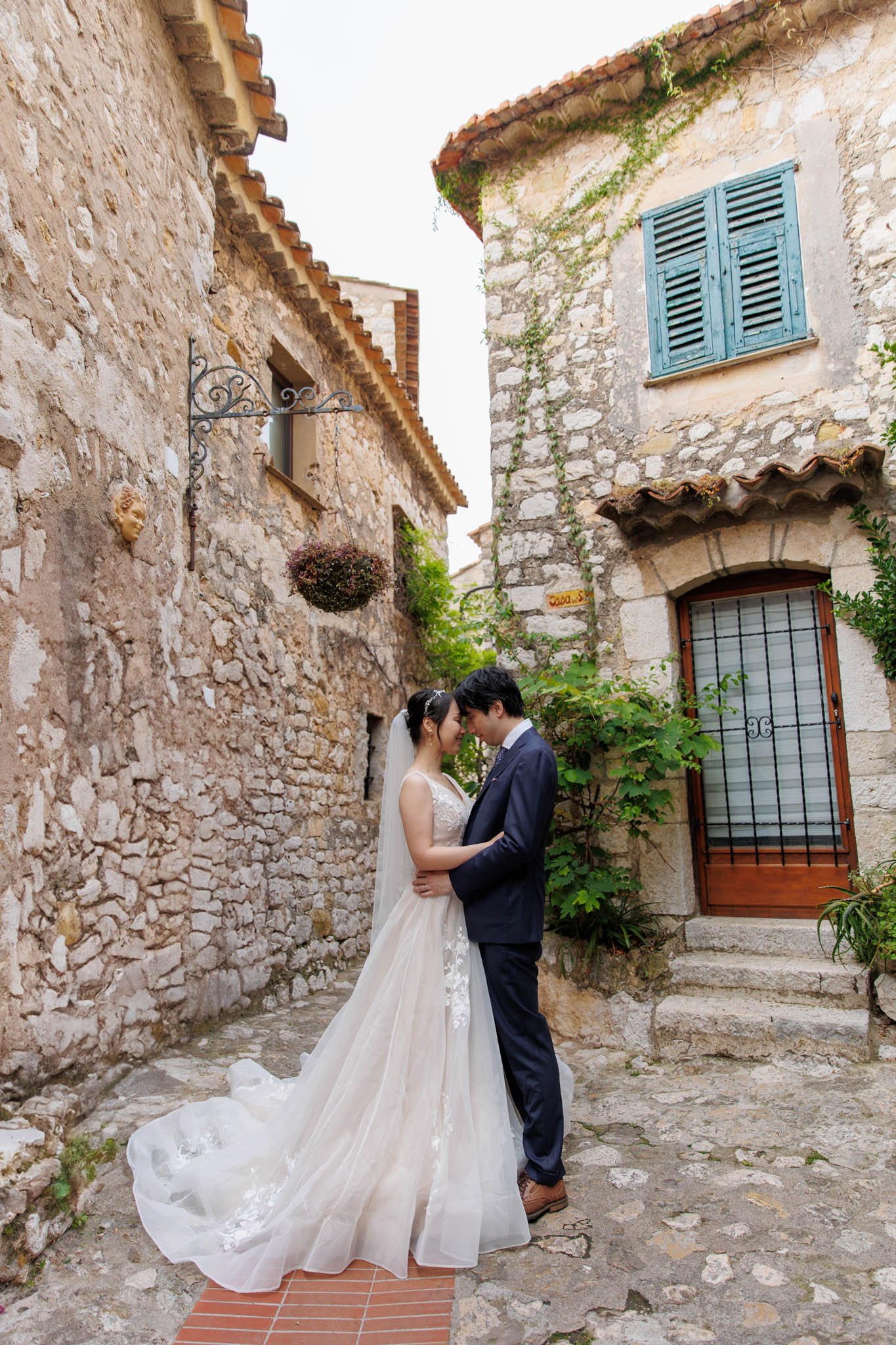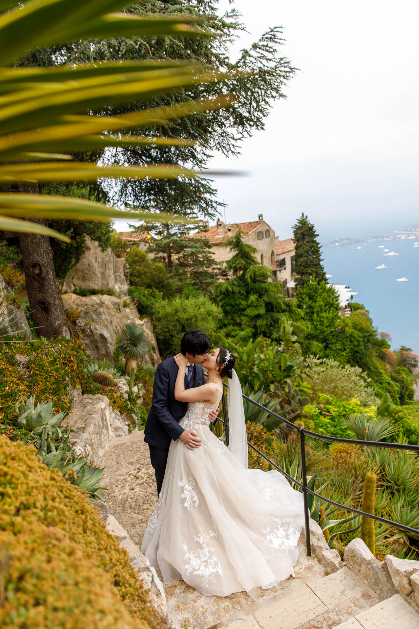 In early June, H and S joined us for a morning post-wedding photo session in Èze from 8:30 to 9:30. They had already celebrated their wedding but wanted additional portraits together in a beautiful setting. We went around the town also the Jardin Exotique d’Èze, one of the most scenic spots along the coast.