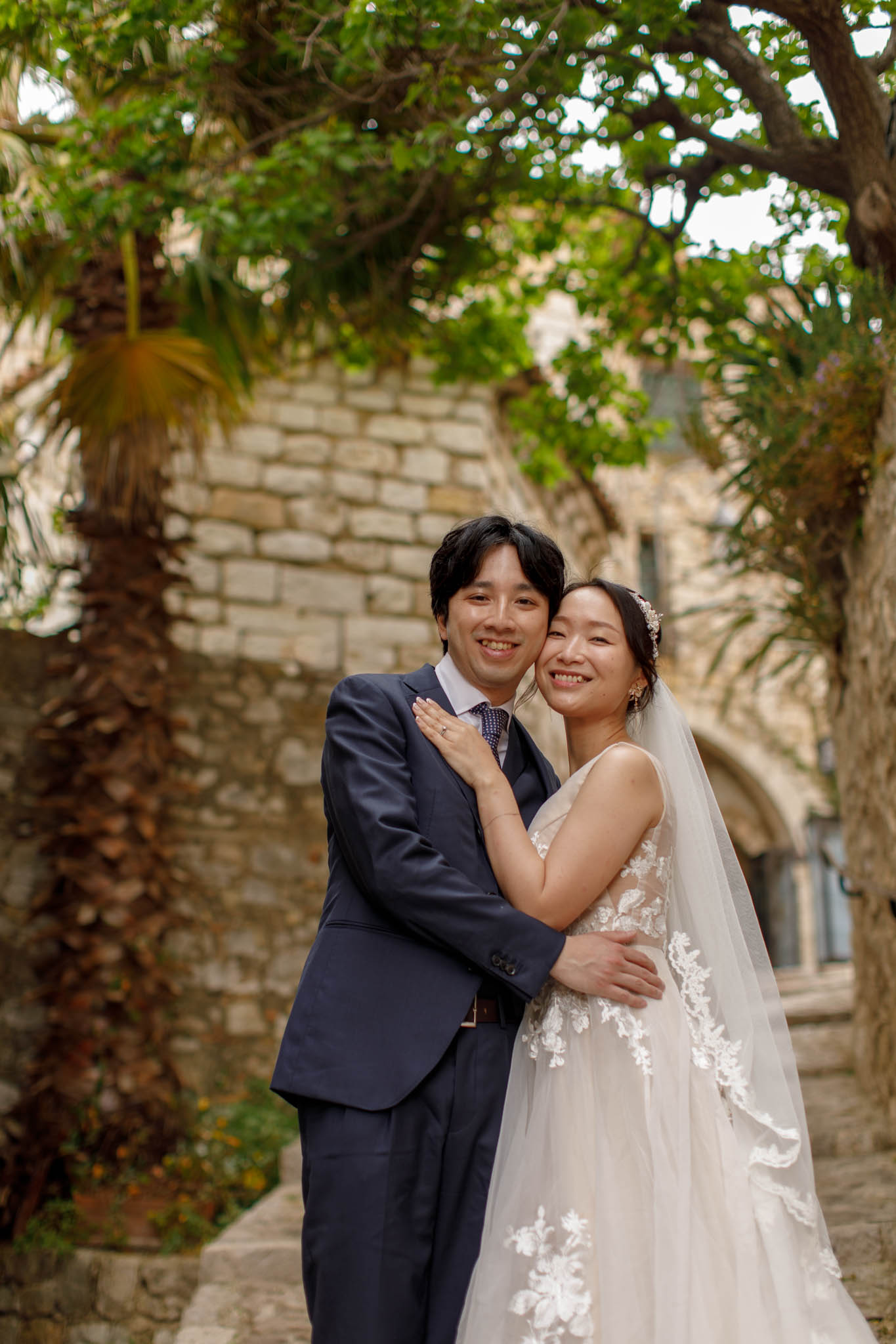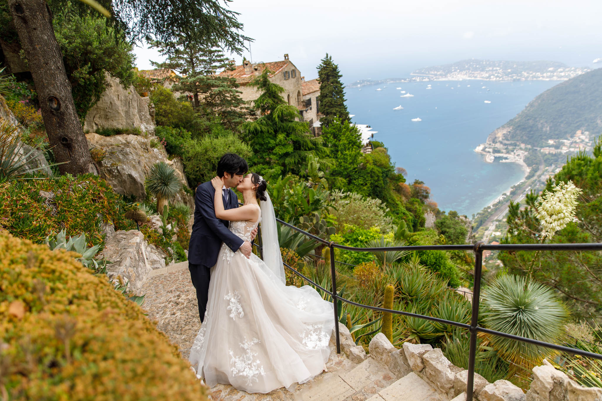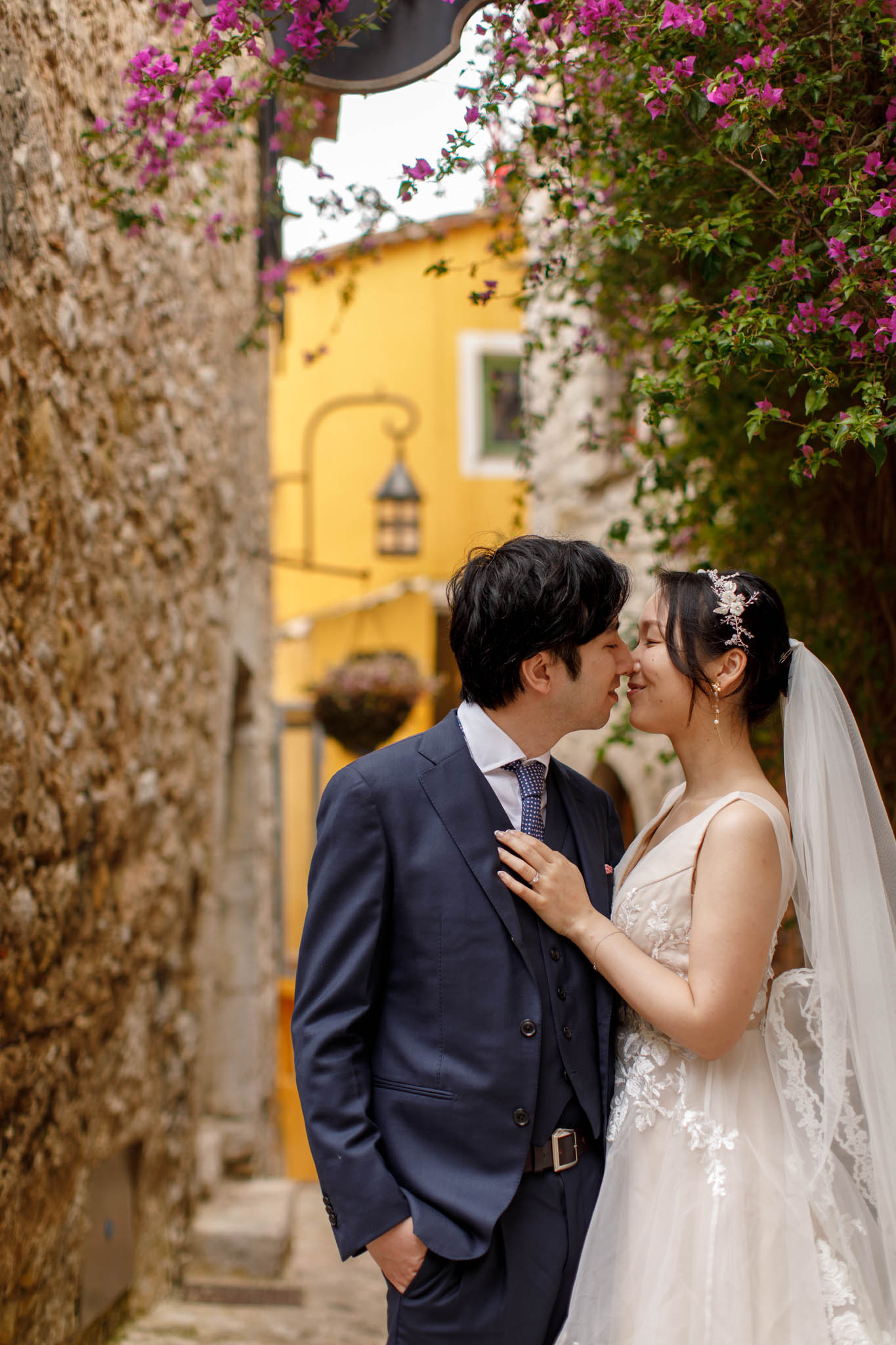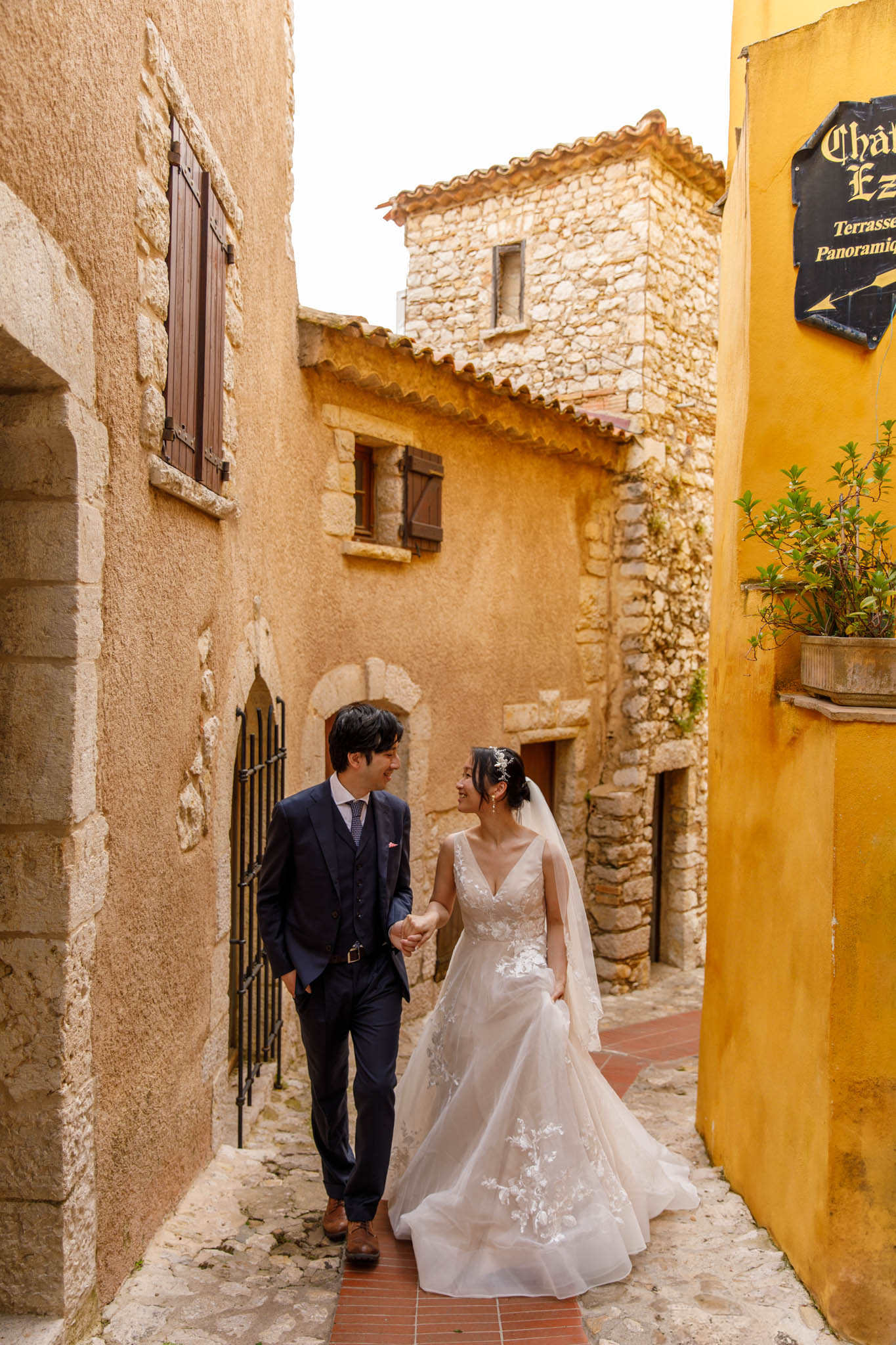 In early June, H and S joined us for a morning post-wedding photo session in Èze from 8:30 to 9:30. They had already celebrated their wedding but wanted additional portraits together in a beautiful setting. We went around the town also the Jardin Exotique d’Èze, one of the most scenic spots along the coast.