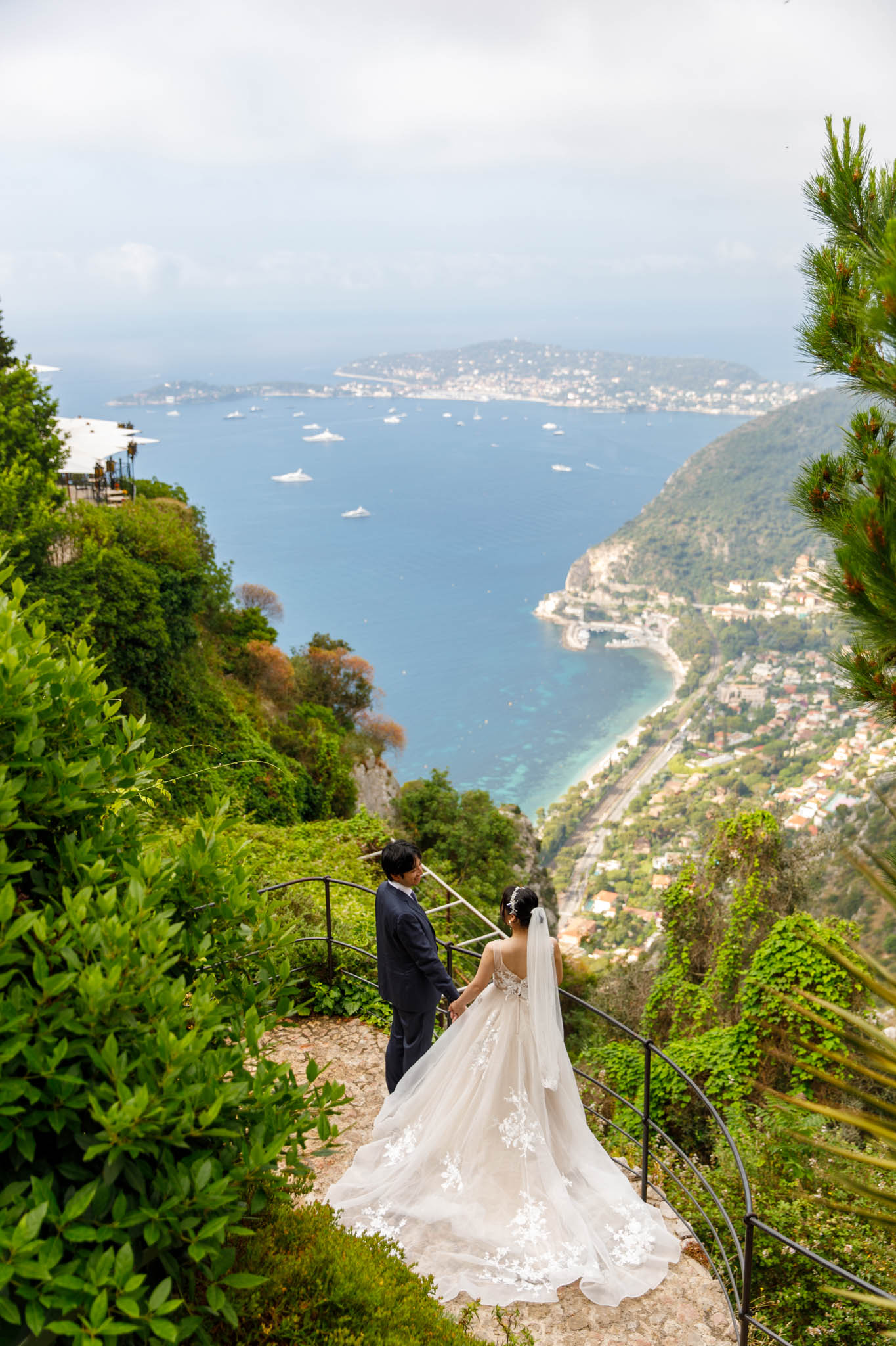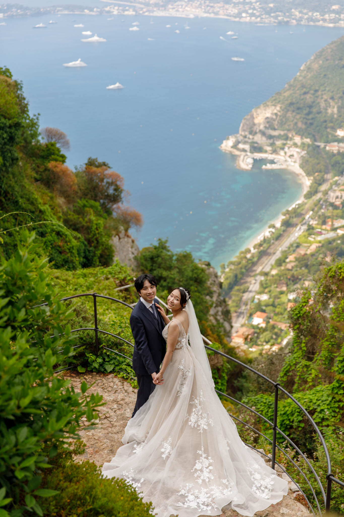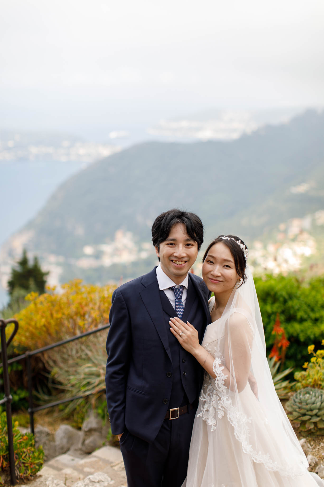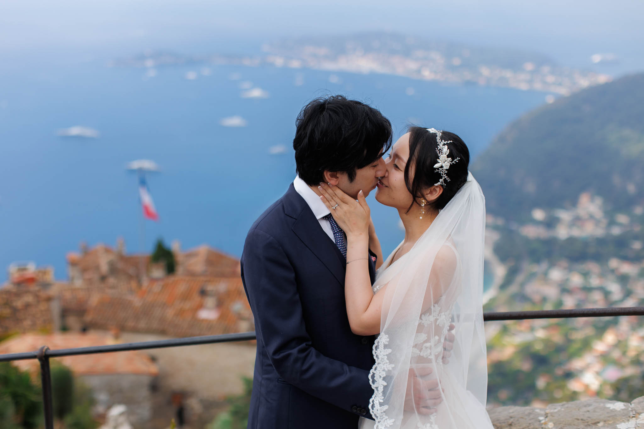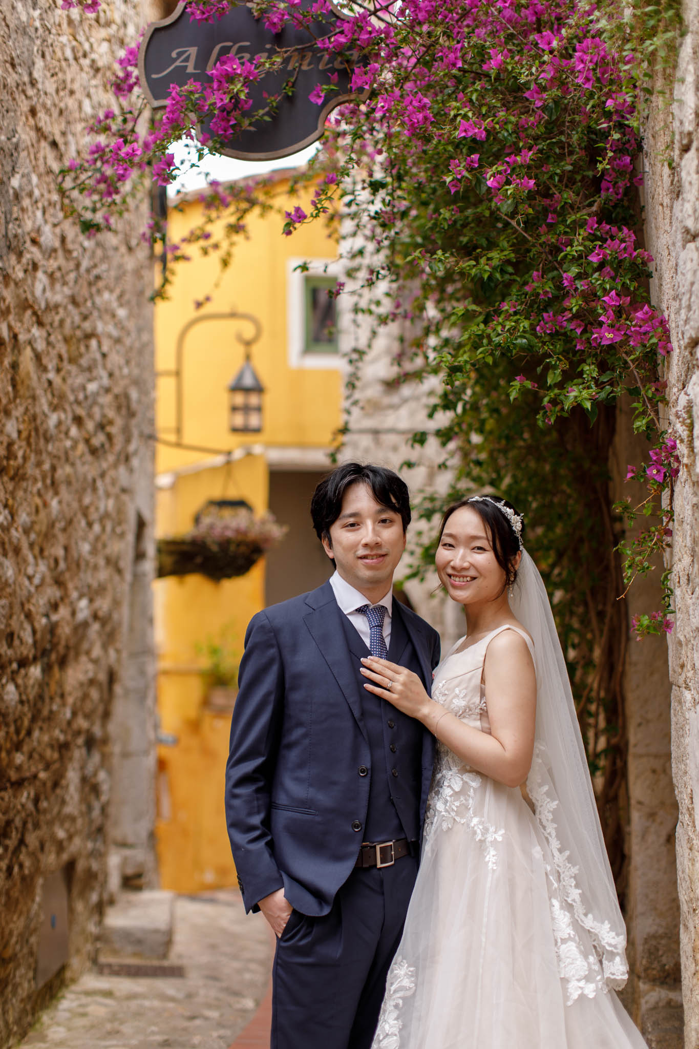 In early June, H and S joined us for a morning post-wedding photo session in Èze from 8:30 to 9:30. They had already celebrated their wedding but wanted additional portraits together in a beautiful setting. We went around the town also the Jardin Exotique d’Èze, one of the most scenic spots along the coast.