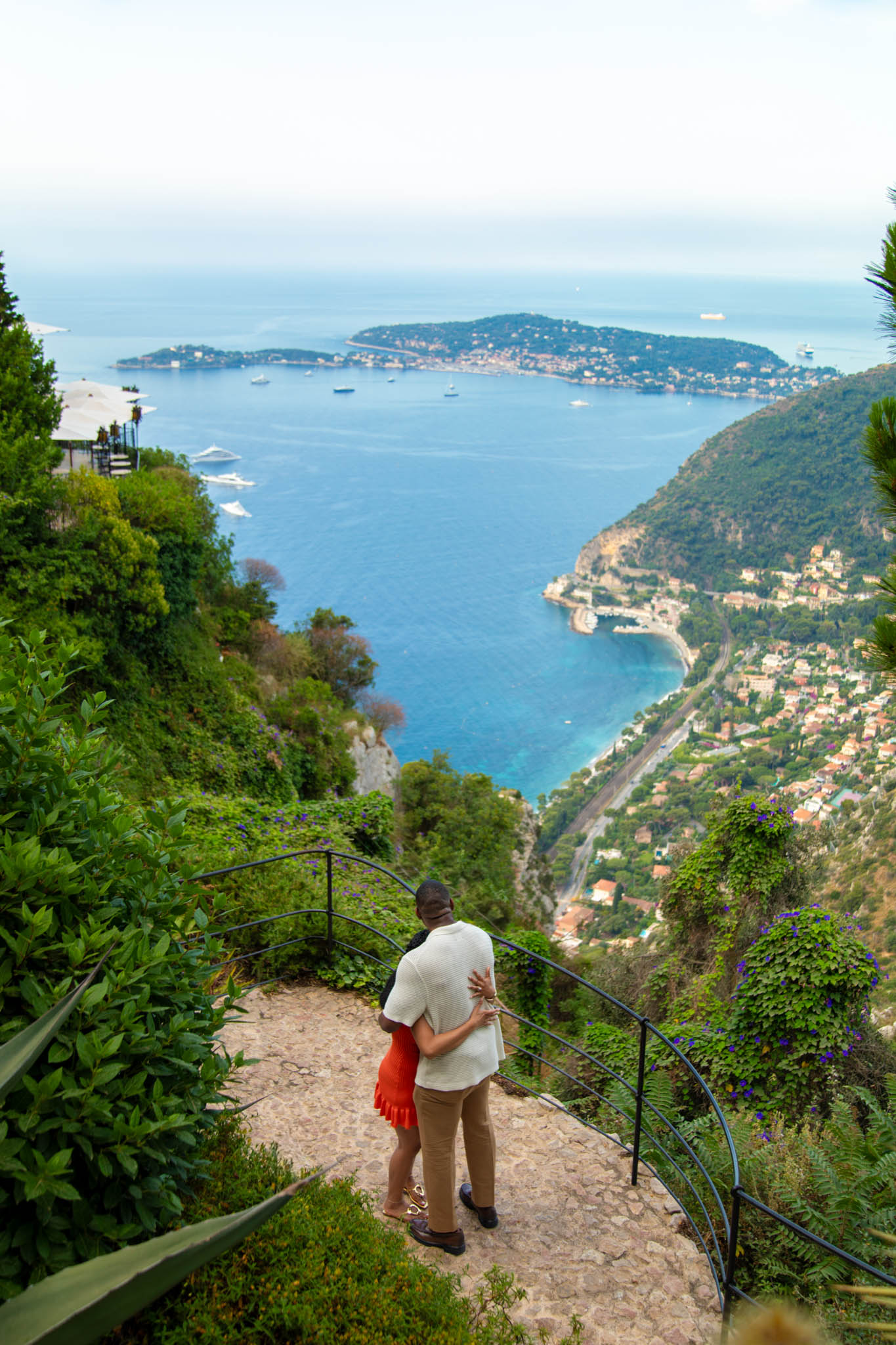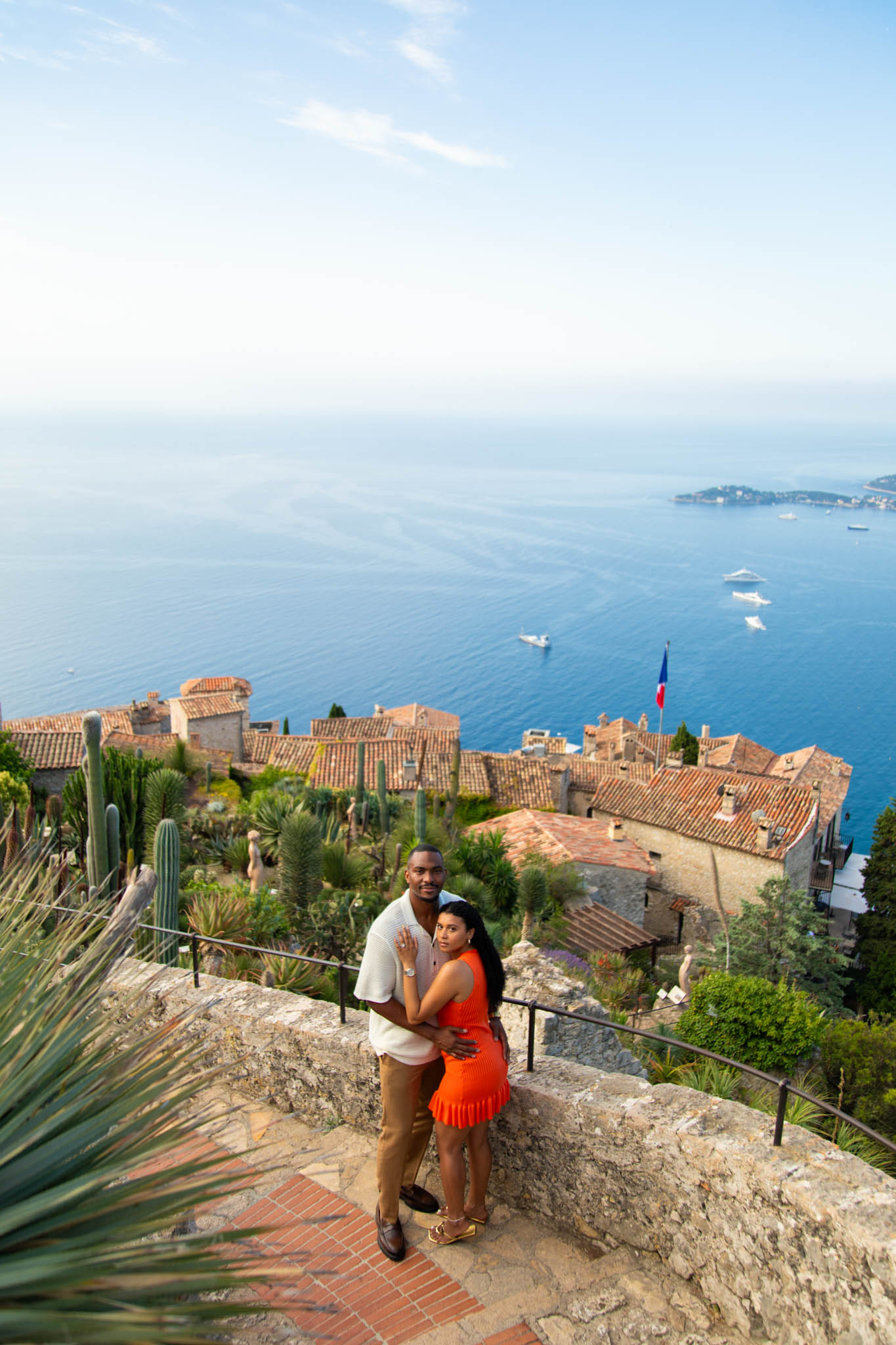 After the garden, we wandered through the streets of Èze. The charming cobblestone alleyways, colourful shutters, and quaint corners made for a picturesque backdrop. Every step offered a new romantic scene, from hidden stairways to stunning viewpoints over the French Riviera.