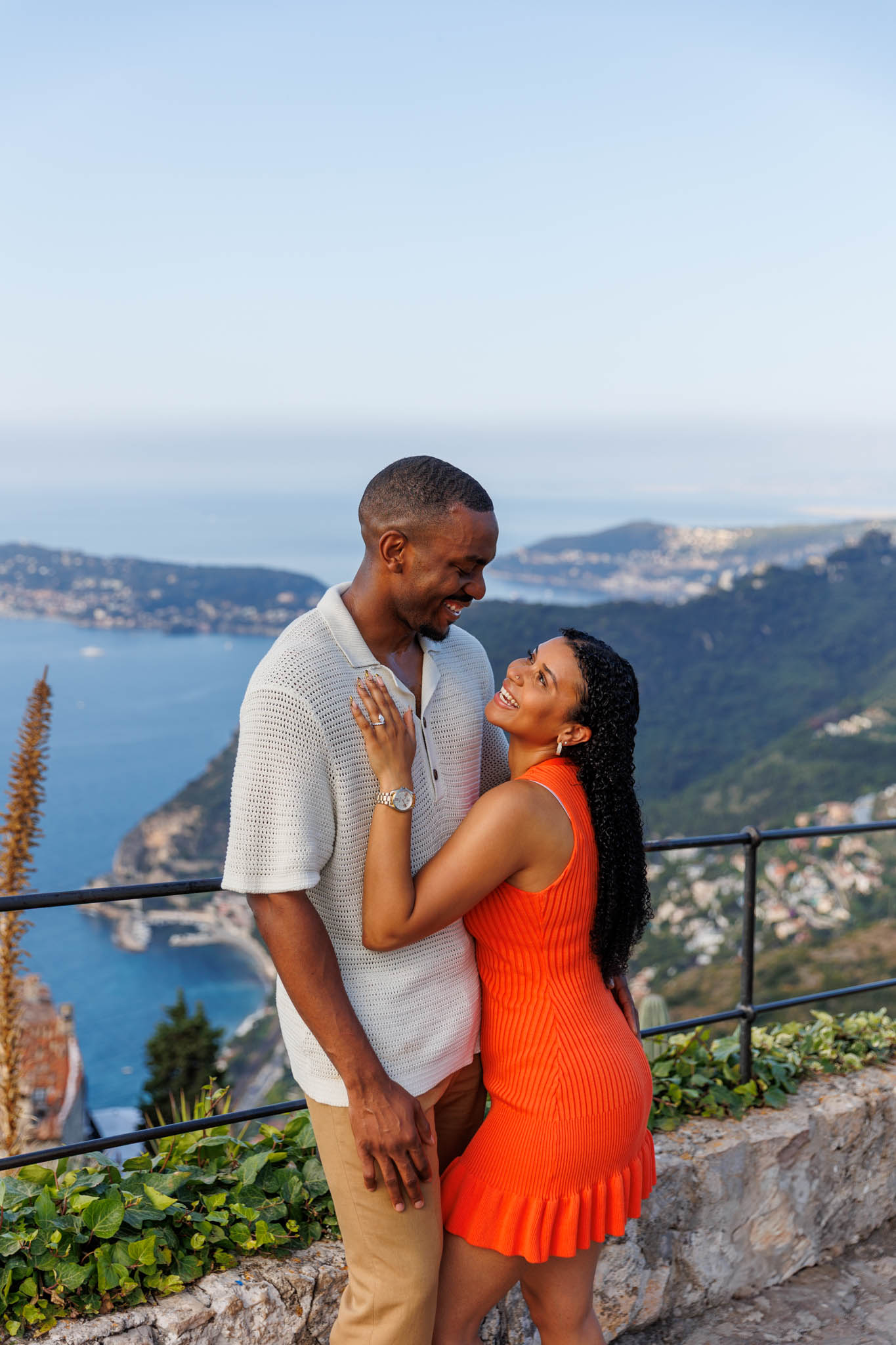 After the proposal, we explored the garden together. We captured intimate portraits among winding paths, lush exotic plants, and breathtaking views of the sea. The quiet morning light created a soft, romantic glow that perfectly complemented this special occasion.