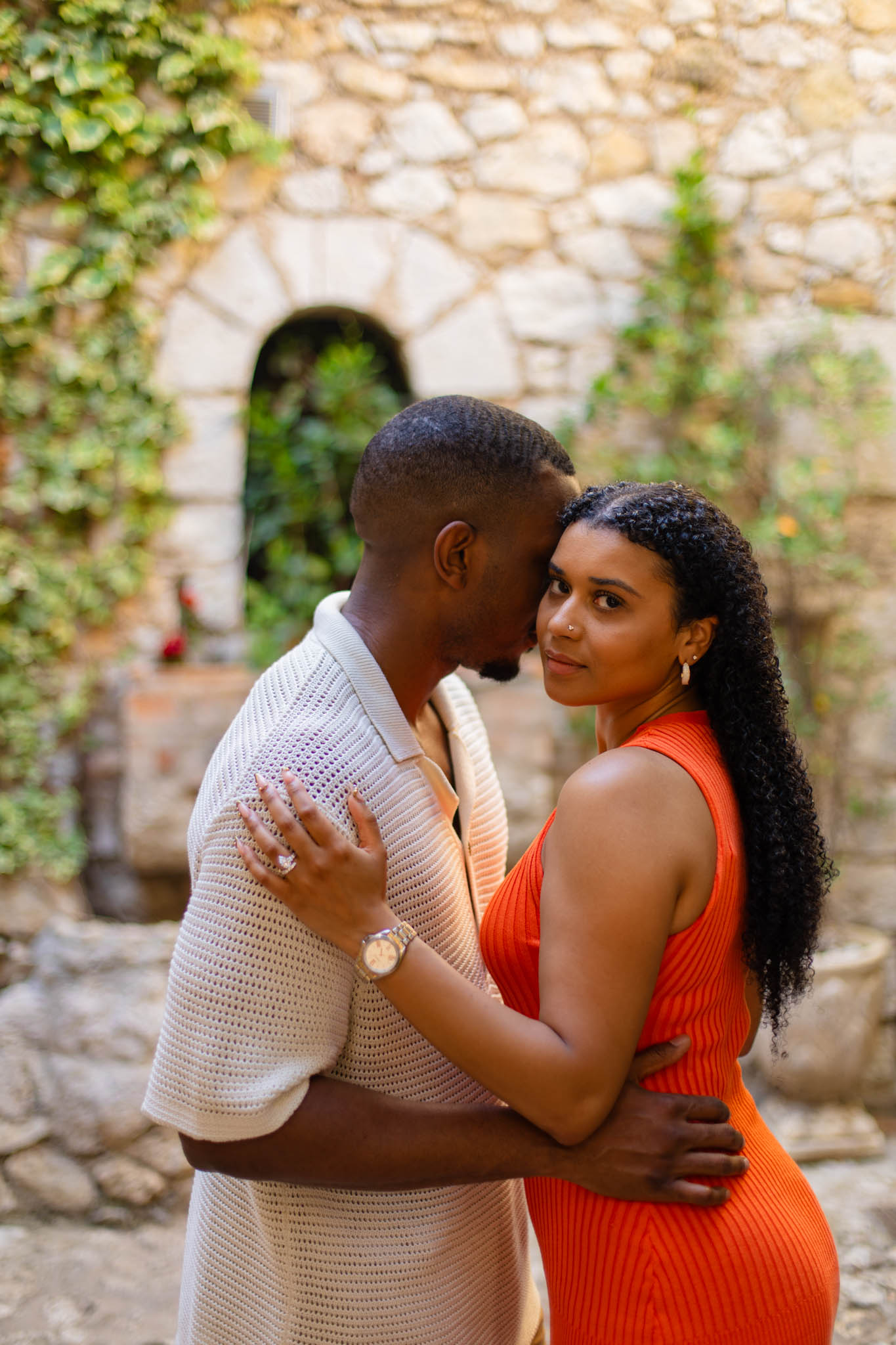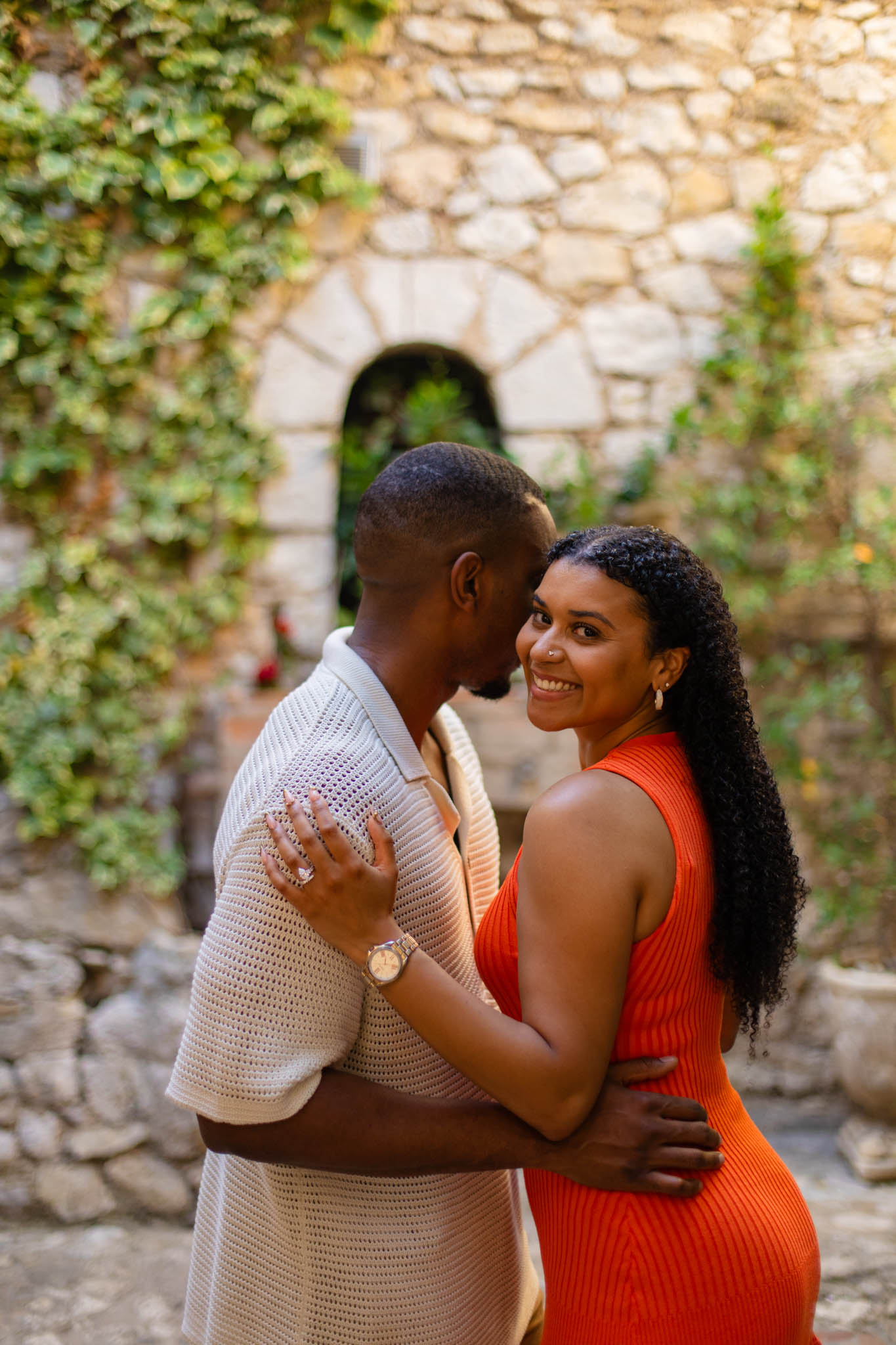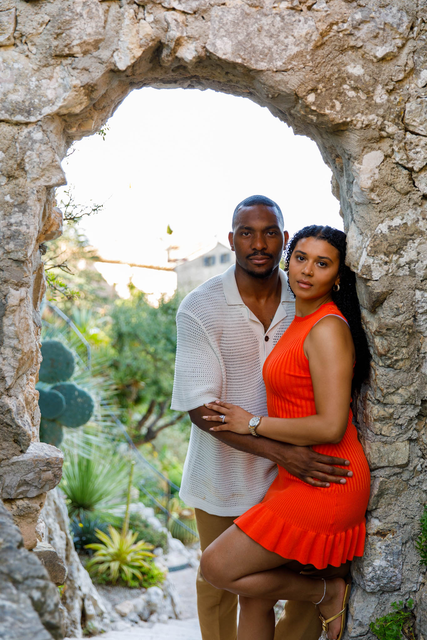 B wanted an intimate, completely private proposal, so he arranged to privatise the entire Jardin Exotique d’Eze. We arrived at 07:00 to set up and prepare for the shoot, ensuring everything was perfect before T and B arrived. Experiencing the garden entirely to ourselves before it opened was a rare and magical moment.