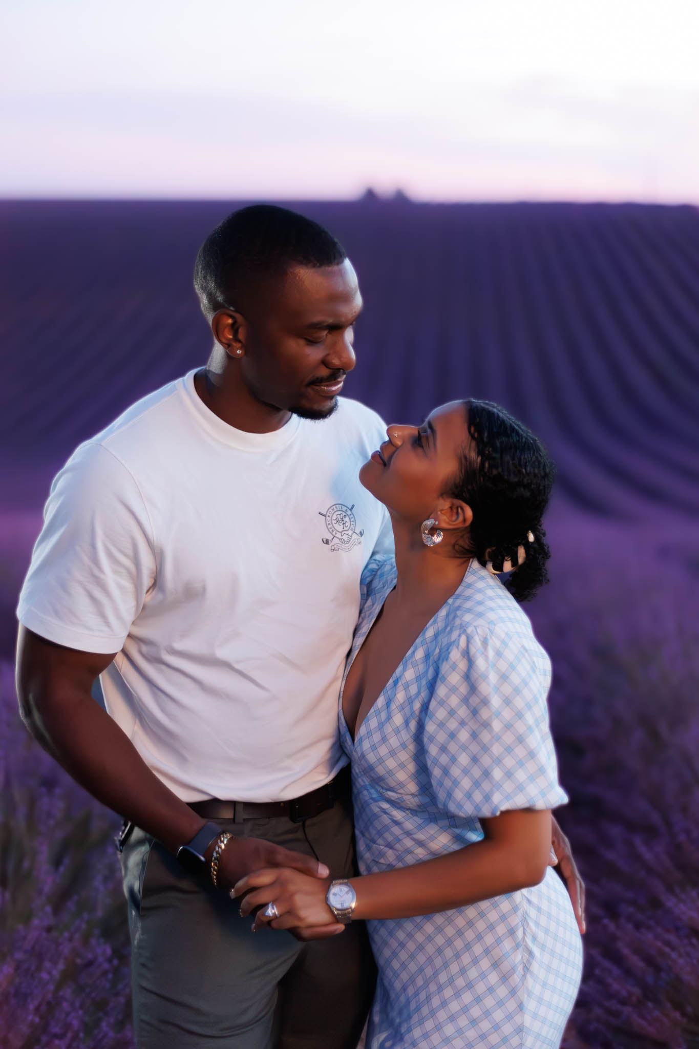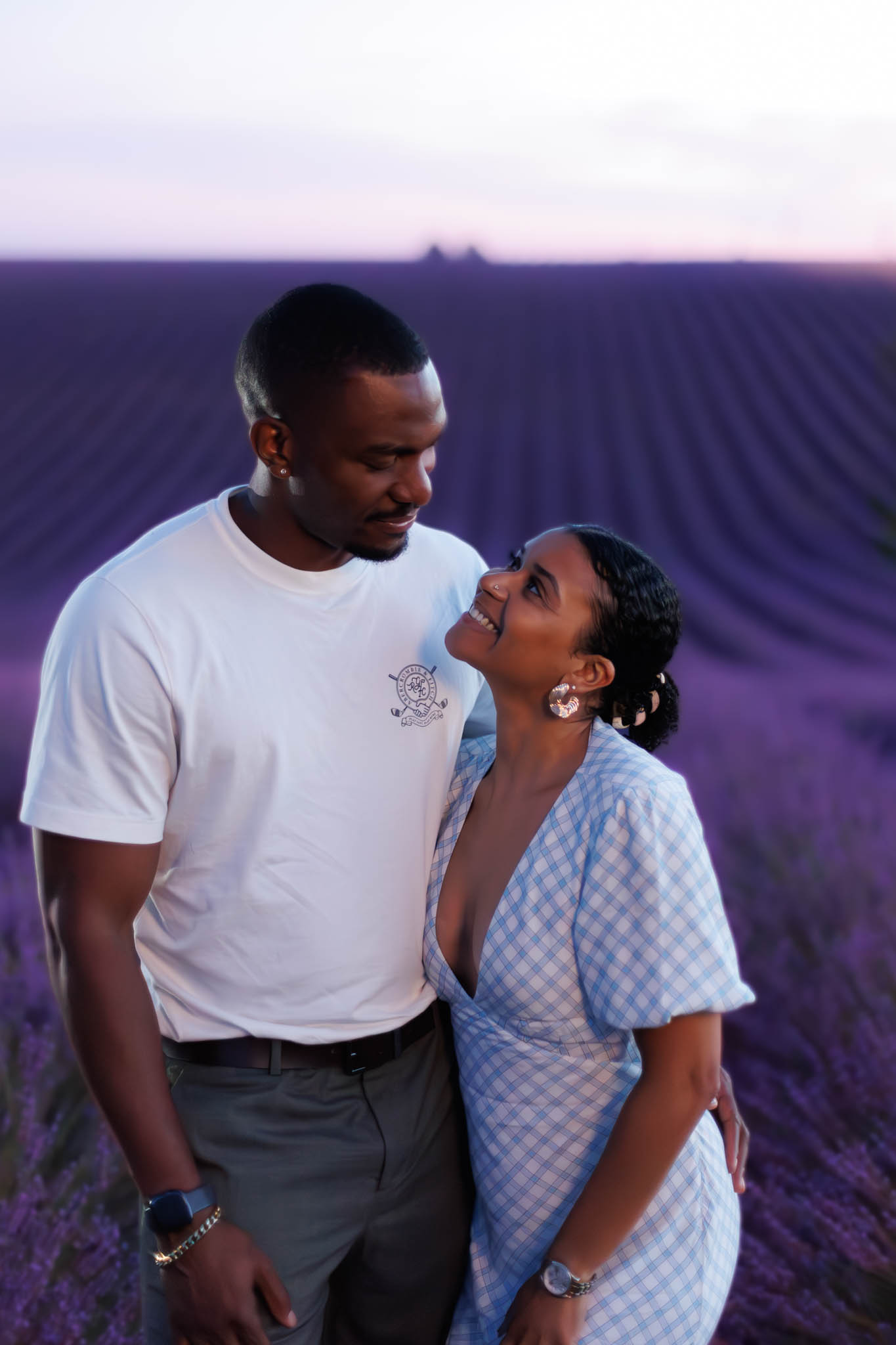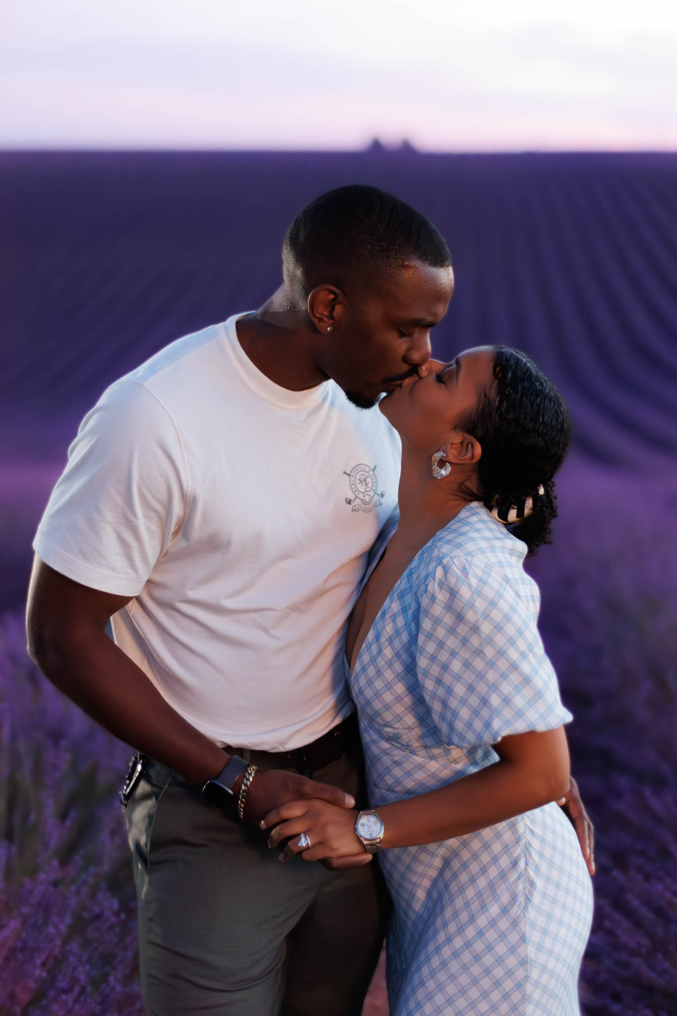 A few days later, we found out that T and B were planning to visit the lavender fields of Provence, and we were already shooting there at the same time. So after one of our sunset sessions, we were able to capture a pictures of them lavender fields of Valensole. The evening light and endless rows of lavender created a dreamy, whimsical atmosphere. These extra shots were the perfect way to continue capturing memories from their special time in the South of France.