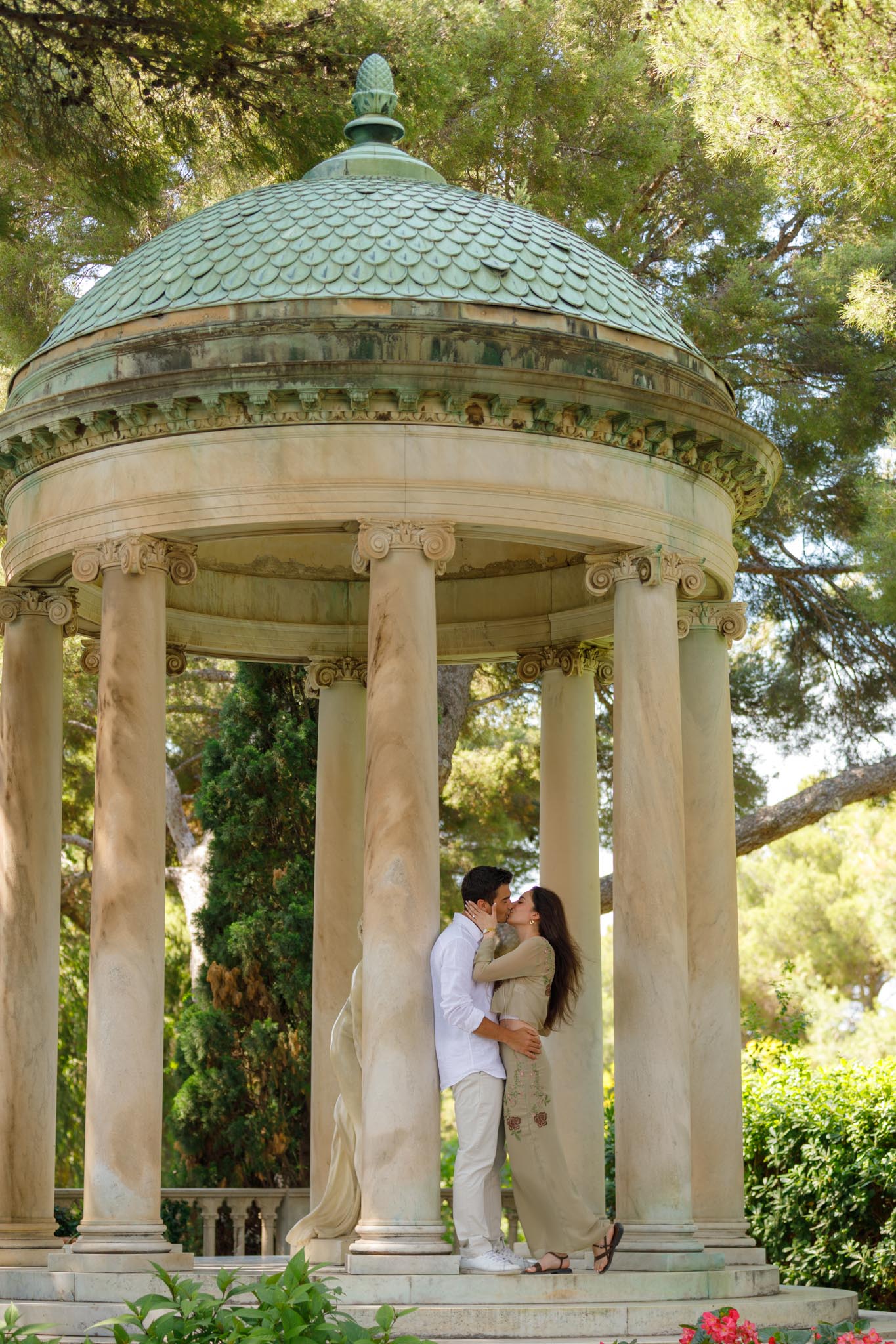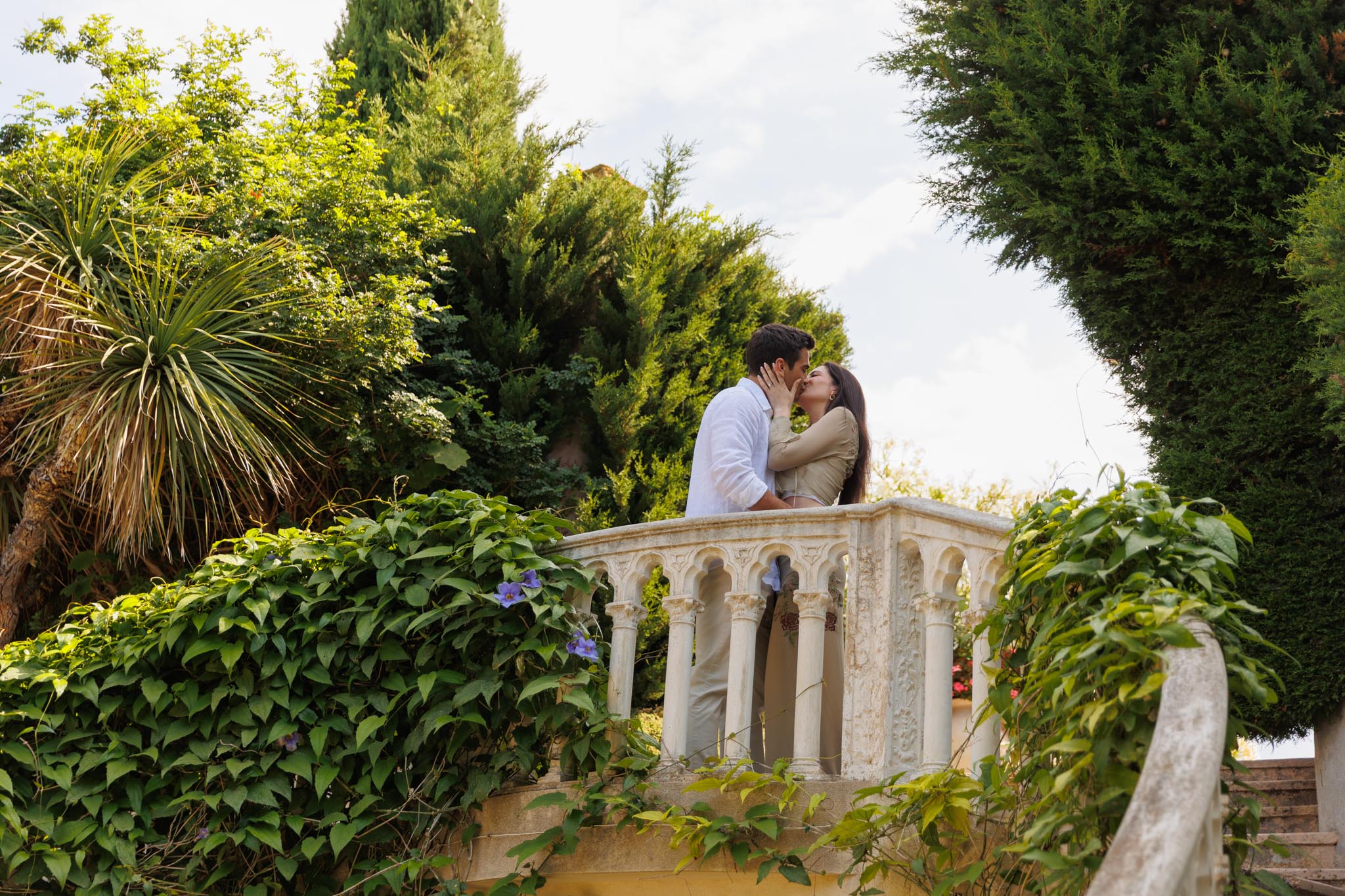 The session was scheduled for 10:00, shortly after the villa opened to the public. This timing was intentional, as mornings are typically quieter and less crowded, especially during the summer season. Arriving early also helped with lighting and temperature. Later in the day, temperatures can rise significantly, which is worth considering when planning a proposal here. We arrived before the garden opened to do some test shots at the location.