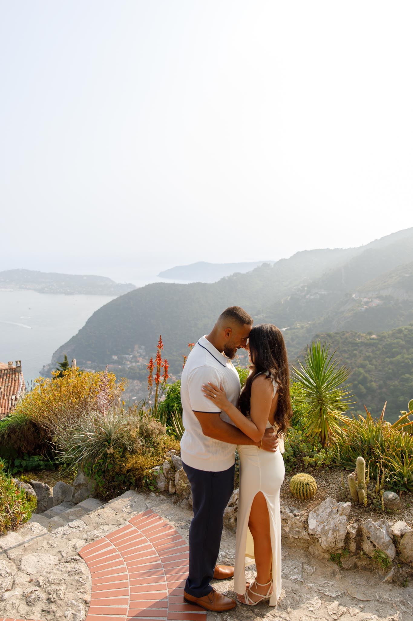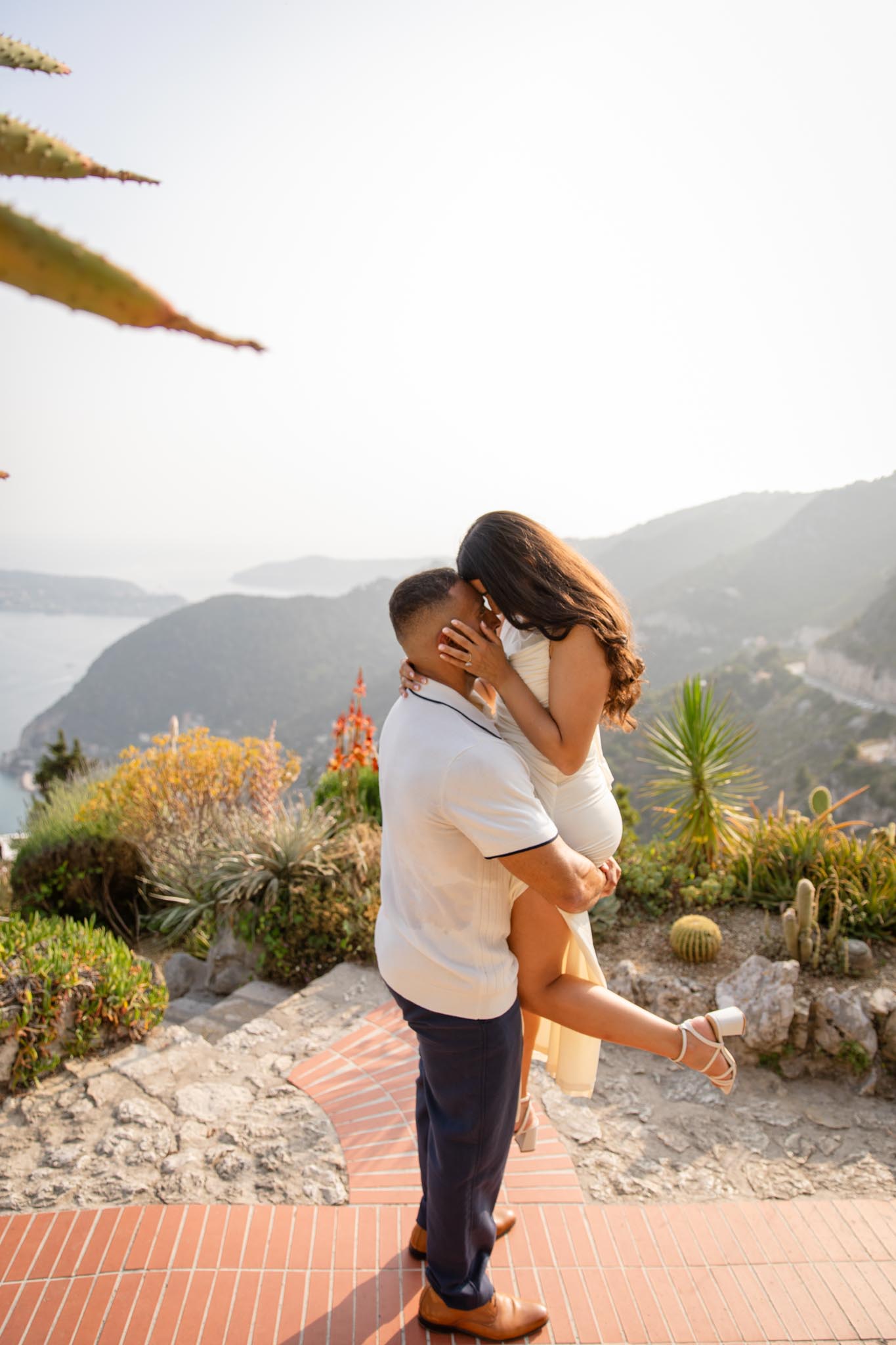 In early June, B planned a romantic proposal for his partner, N, in the Jardin Exotique of Èze. He chose one of the highest viewpoints in the garden, a location with a wide and unobstructed view over the mountains, the village, and the Mediterranean. It is one of the most breathtaking public viewpoints in Èze and offers a truly iconic Riviera backdrop.
