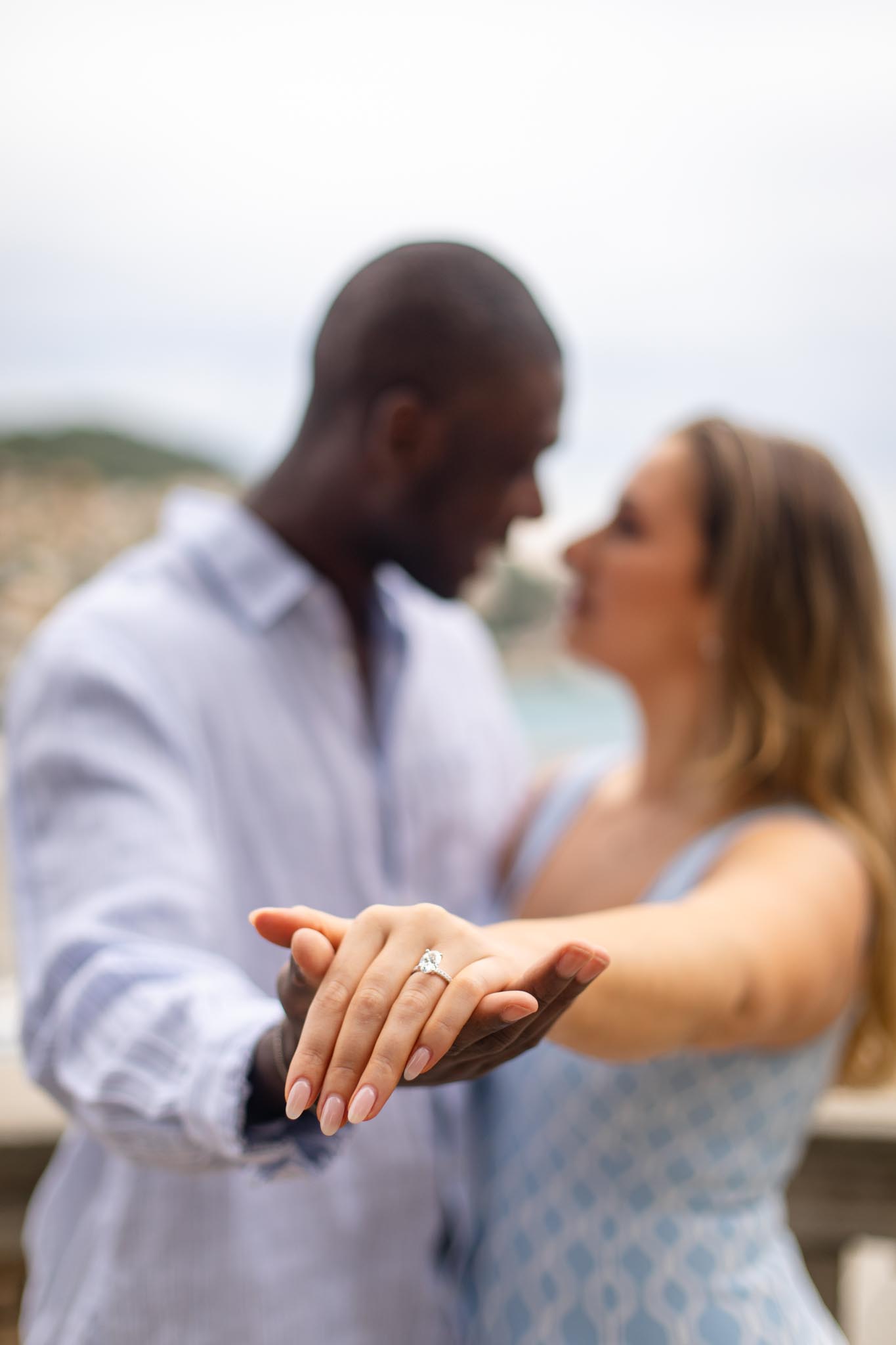 S reached out hoping for a private and meaningful proposal location. The moment was emotional and genuine. She was completely surprised and visibly moved, taking in both the proposal and the sweeping coastal scenery around her.