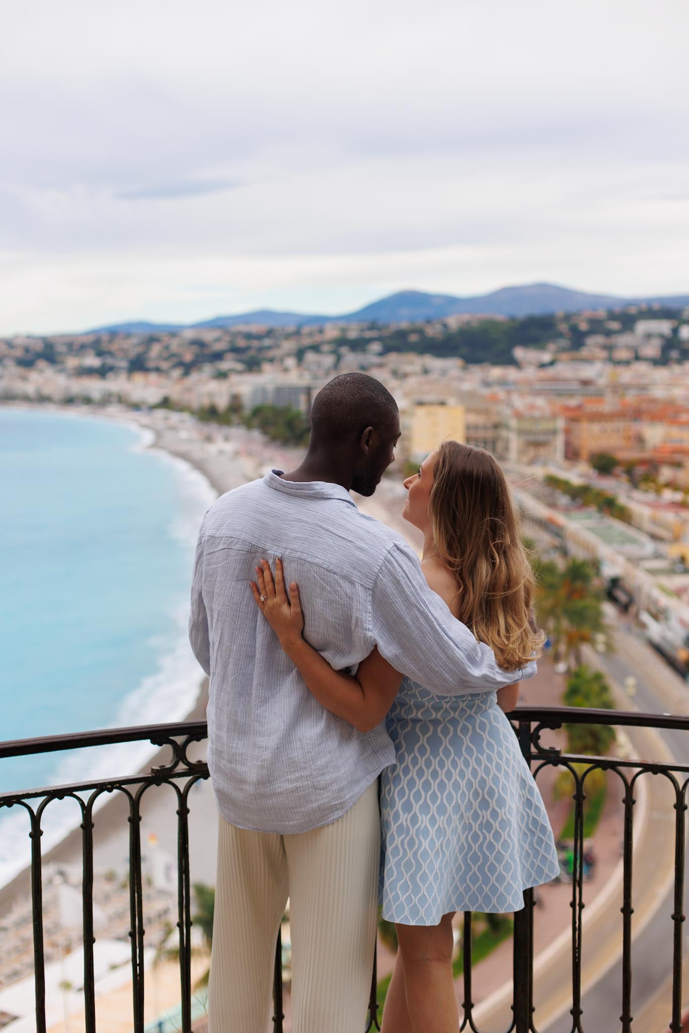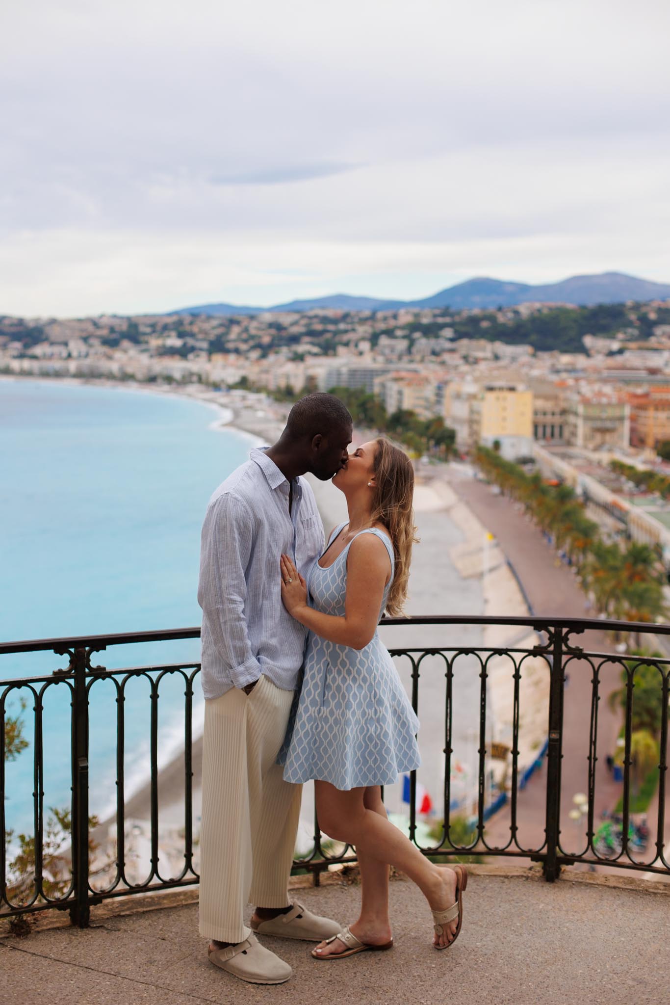 The result was a soft, emotional collection of images shaped by gentle morning light, striking sea colours, and the quiet intimacy of a simple proposal in one of Nice’s most beautiful viewpoints.