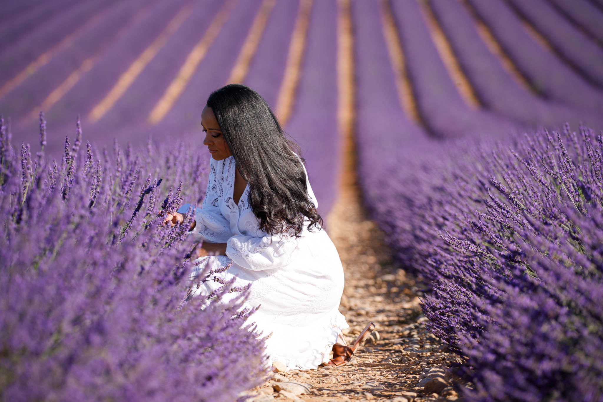 To give a different perspective, we moved to a second part of the field, which curls to the left and has a unique feel compared to the first section. The contrast between the two areas gives variety in the photos and makes the session feel like it covers more of Valensole than just one spot. This was a fun way to create diverse images within a short session.