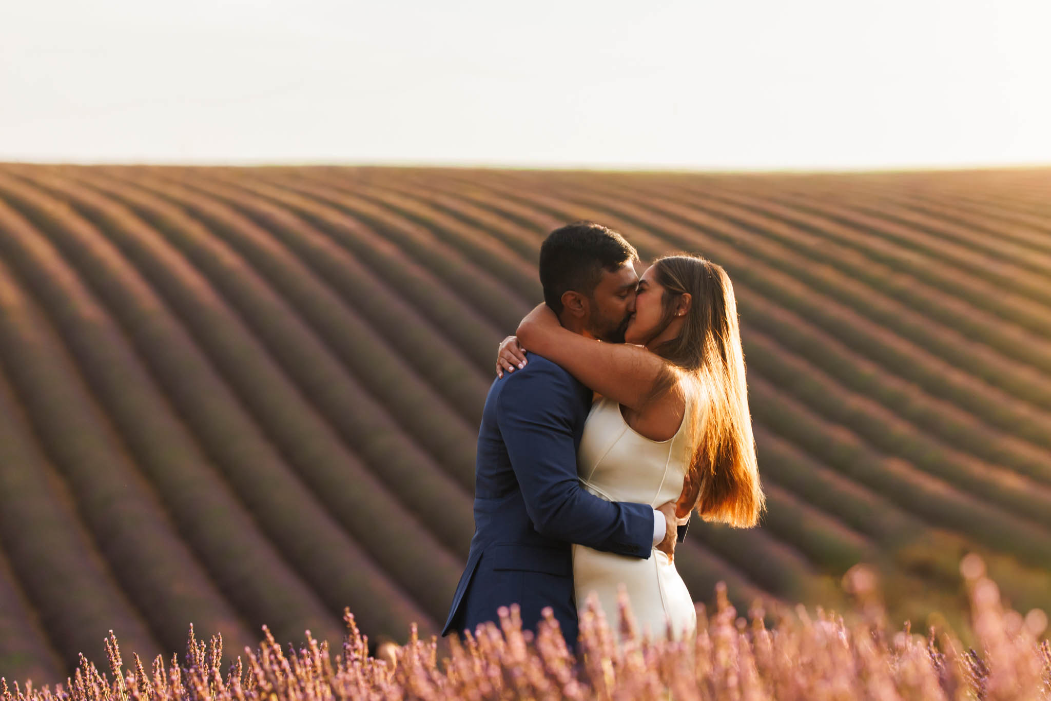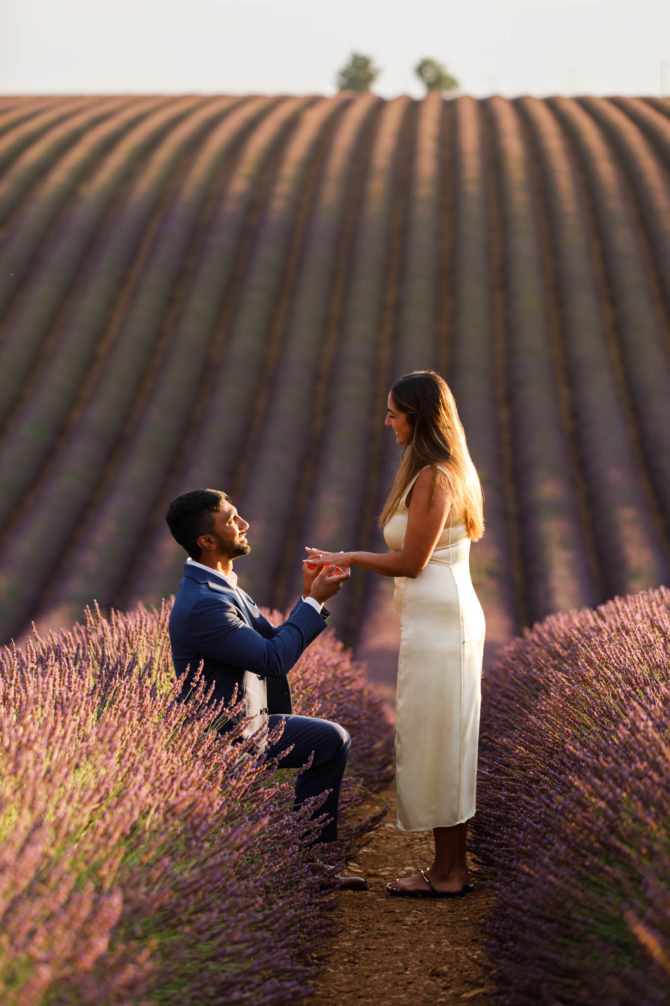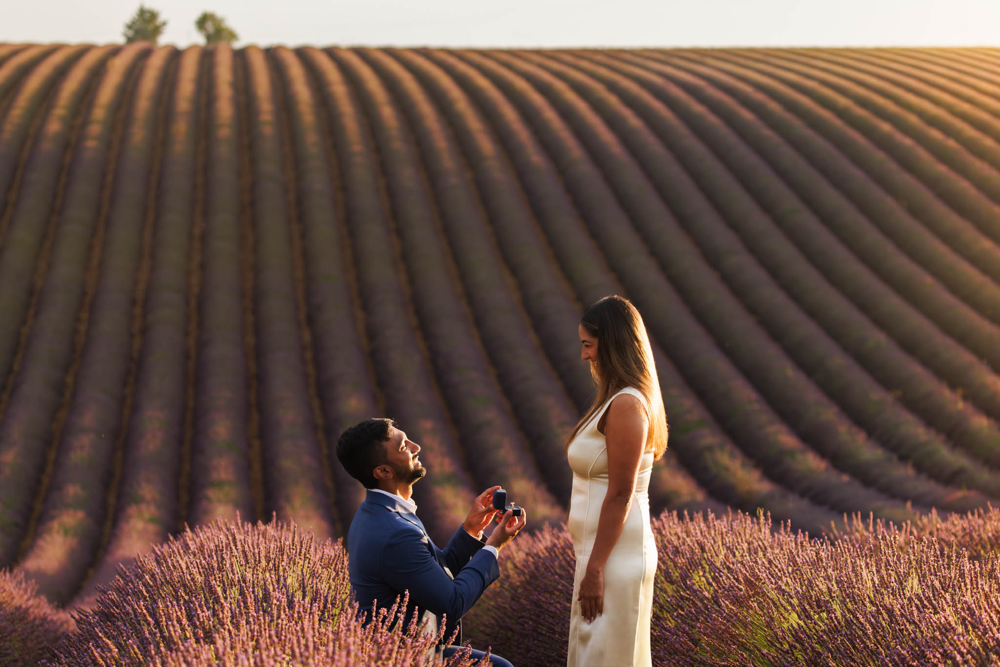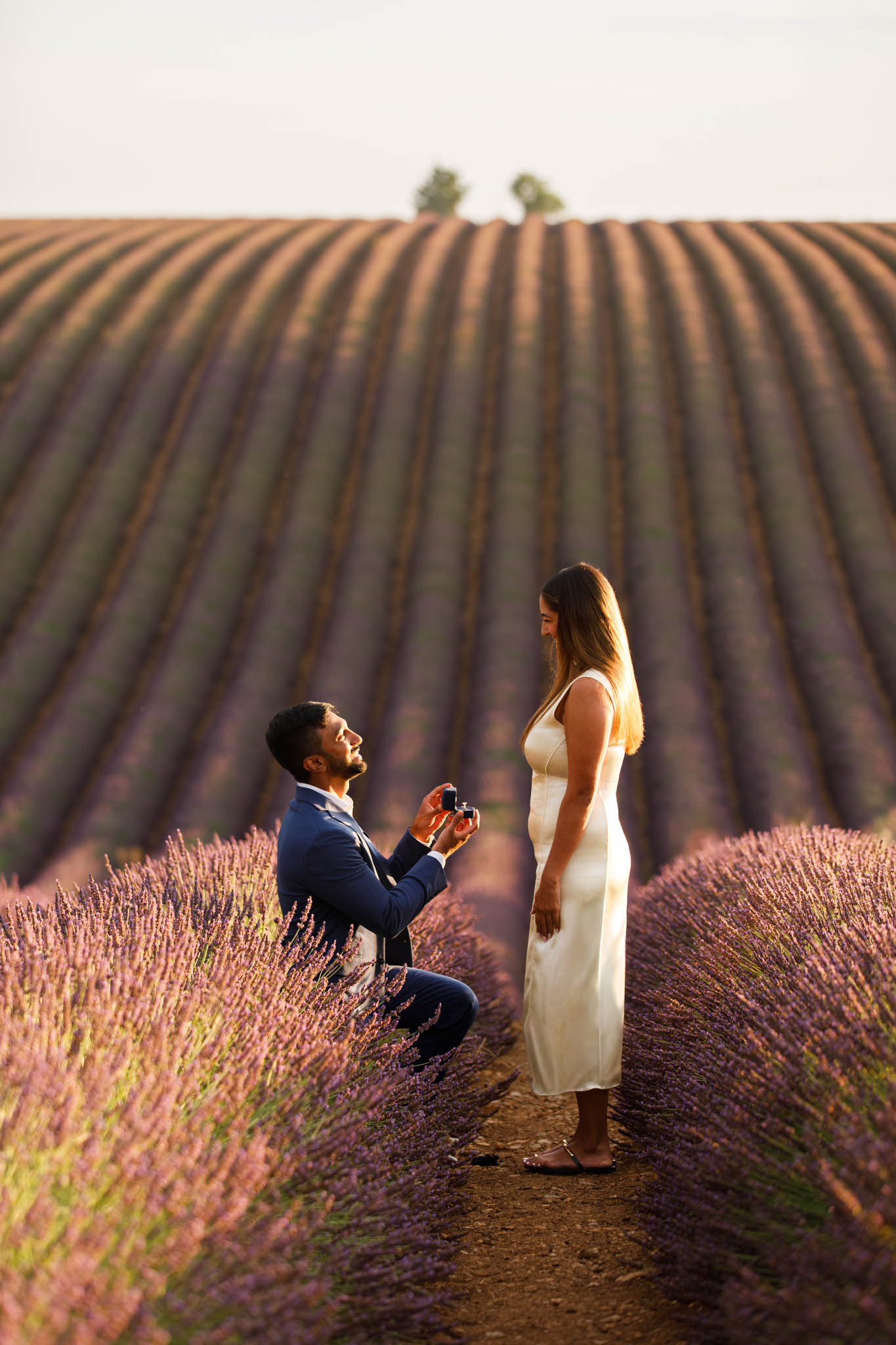 G proposed at exactly the right moment, with the sun dipping low and the light turning soft and golden. The lighting that evening was especially beautiful, casting a warm glow across the lavender and creating a romantic atmosphere for the proposal.