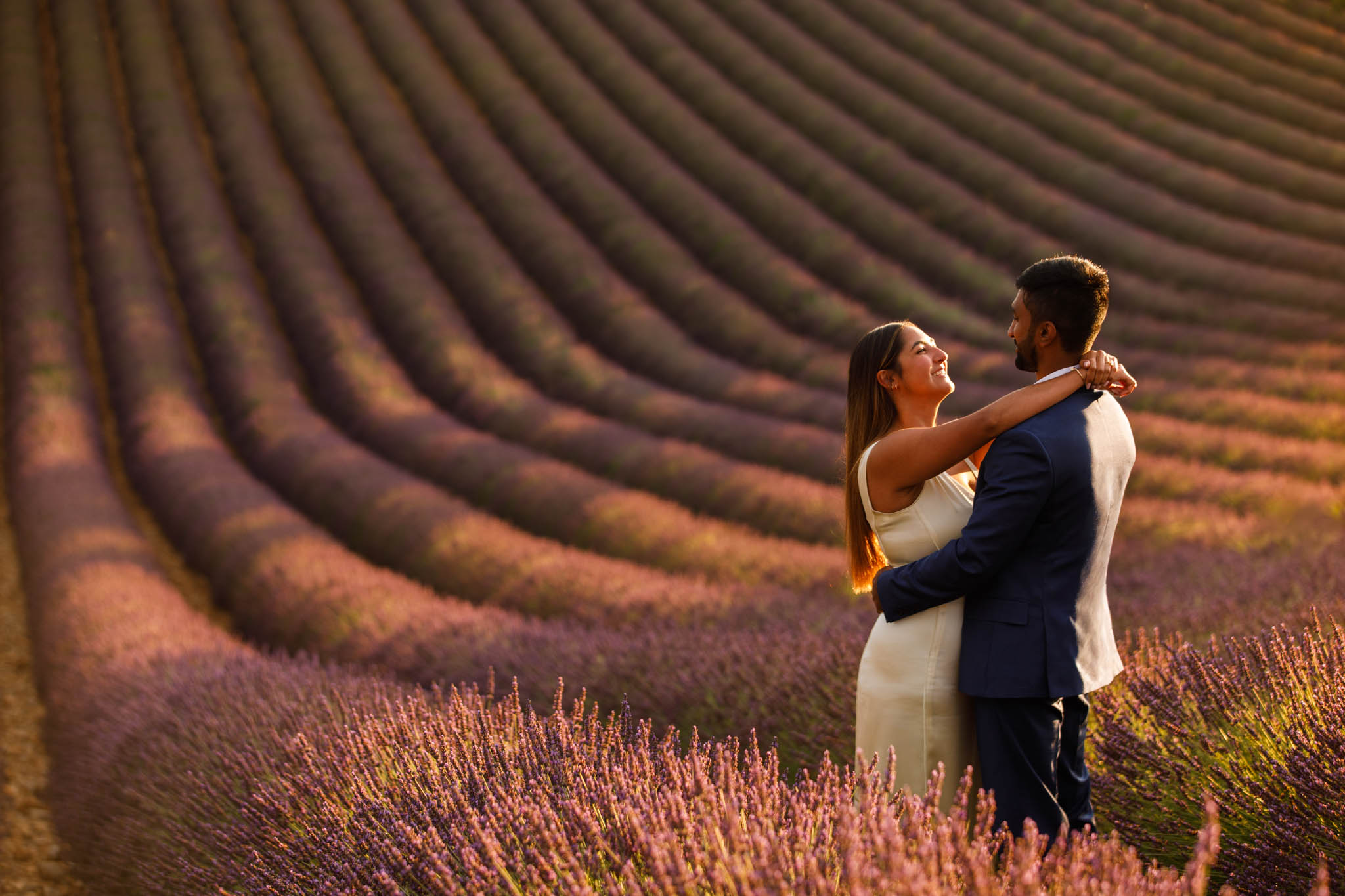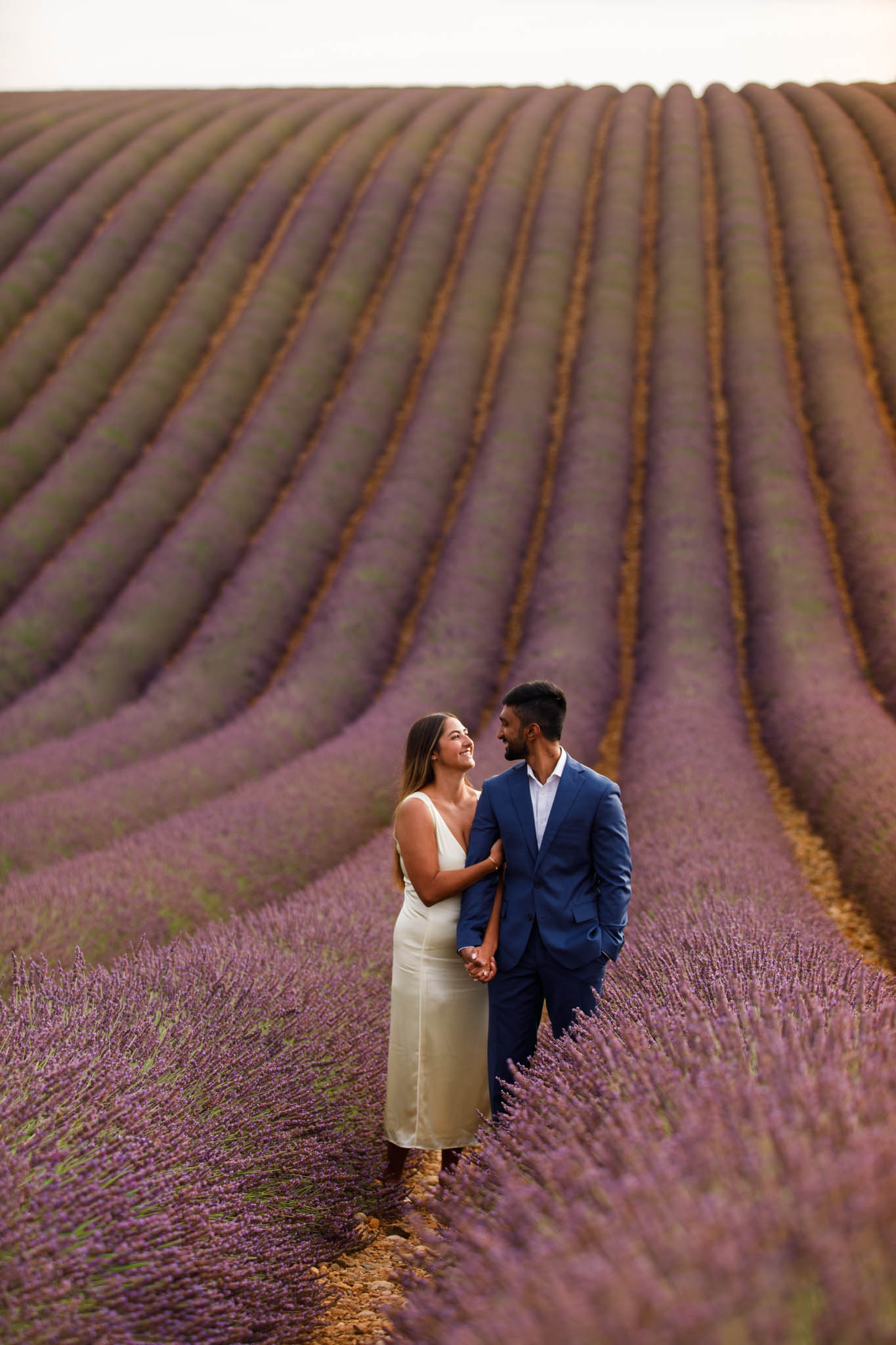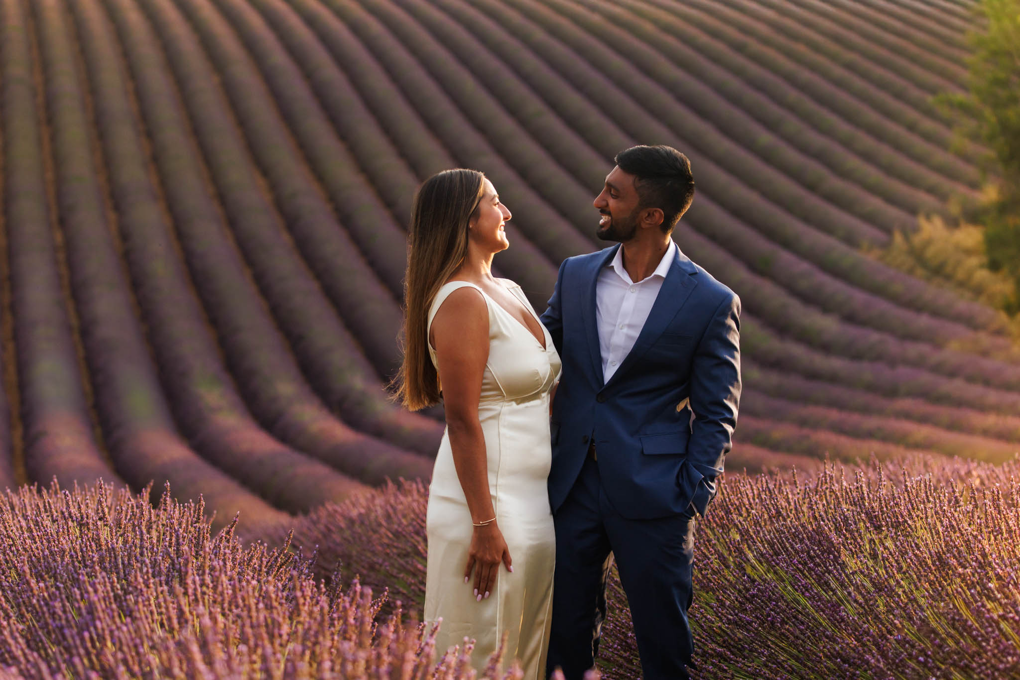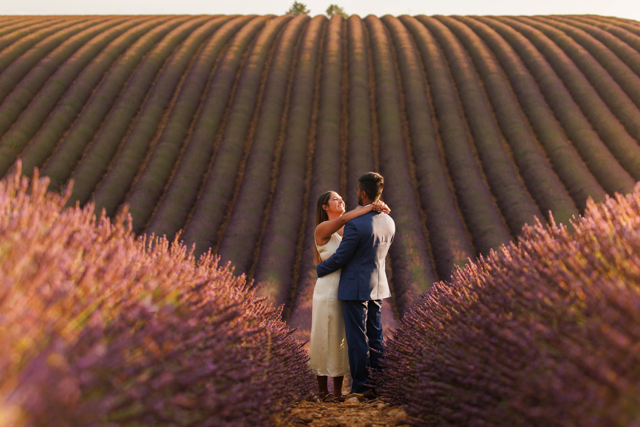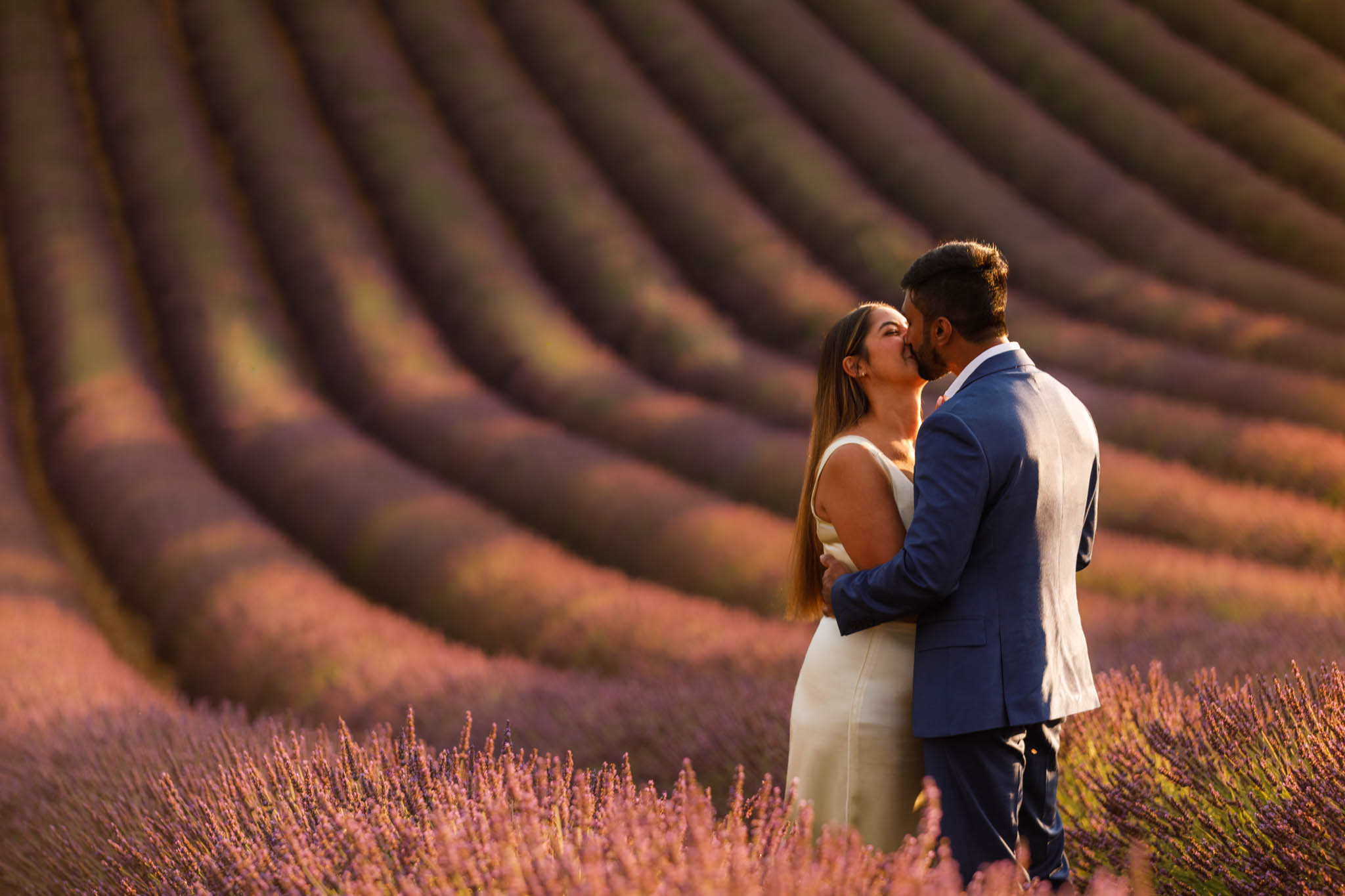 G proposed at exactly the right moment, with the sun dipping low and the light turning soft and golden. The lighting that evening was especially beautiful, casting a warm glow across the lavender and creating a romantic atmosphere for the proposal.