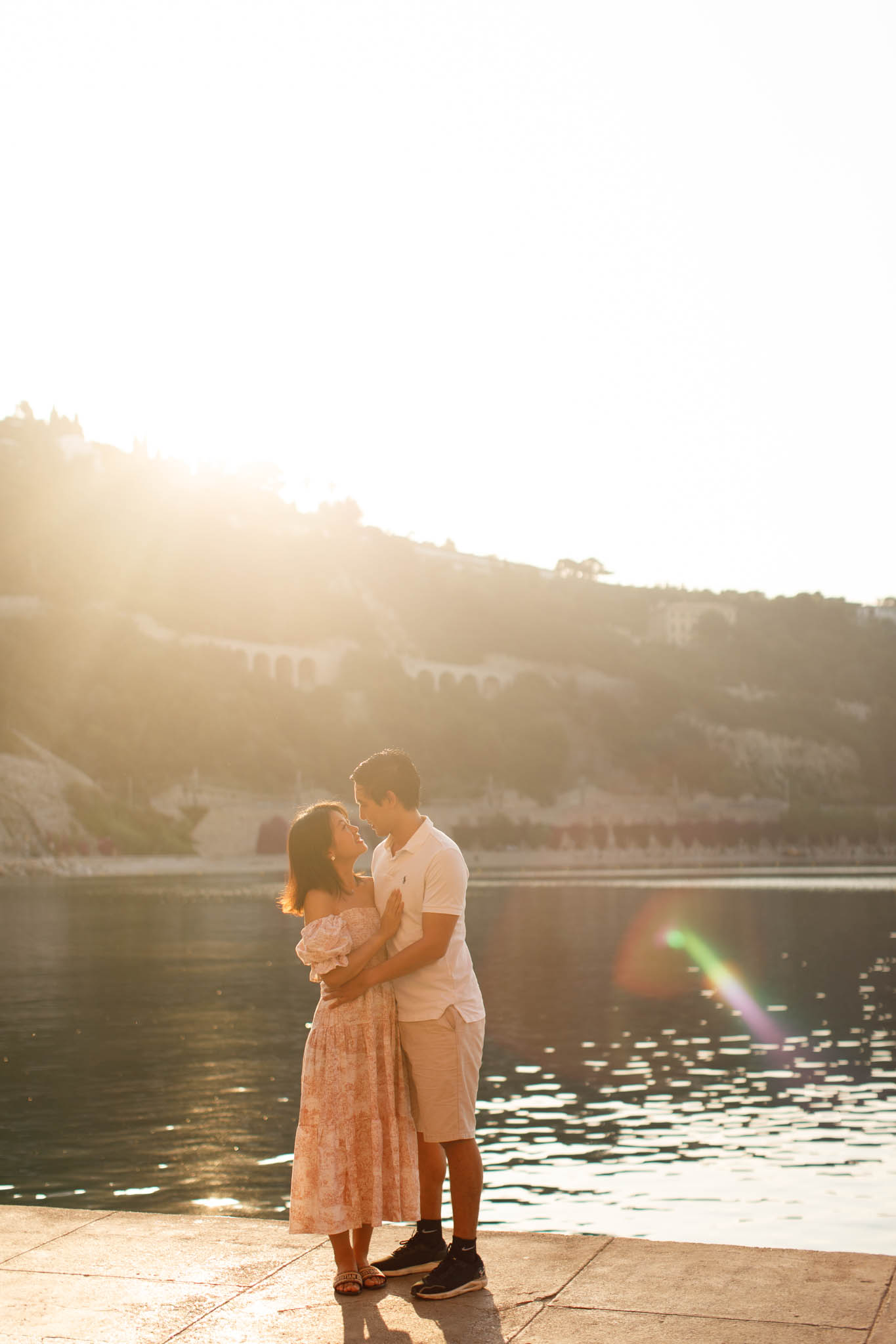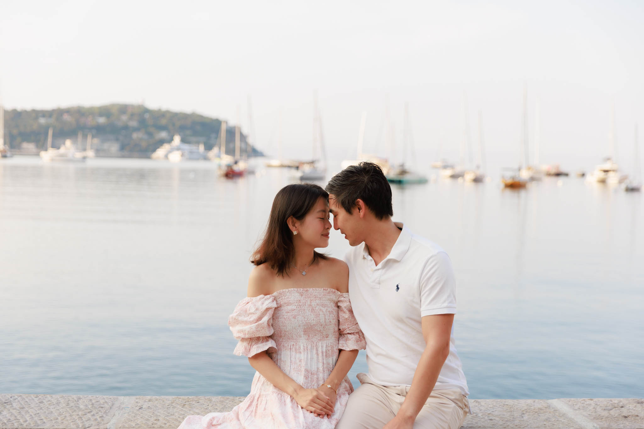 This sunrise session with M and M took place on 23 June, from 07:00 to 08:00, in the quiet coastal town of Villefranche-sur-Mer. The couple were staying in Nice, and since we were already travelling in the same direction that morning, we met them early and drove together to the location. This created a calm and relaxed beginning to the day, setting the tone for a peaceful hour of photography by the sea.