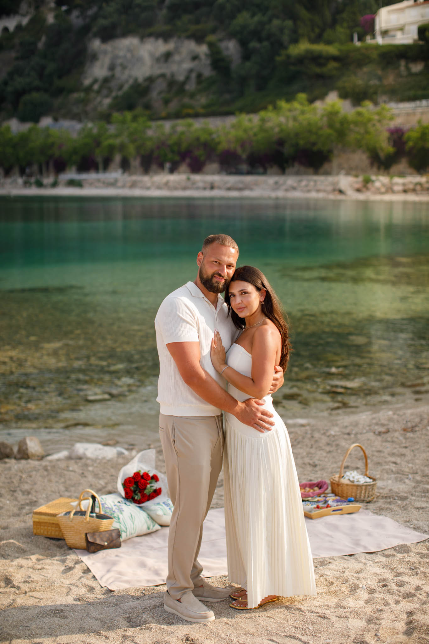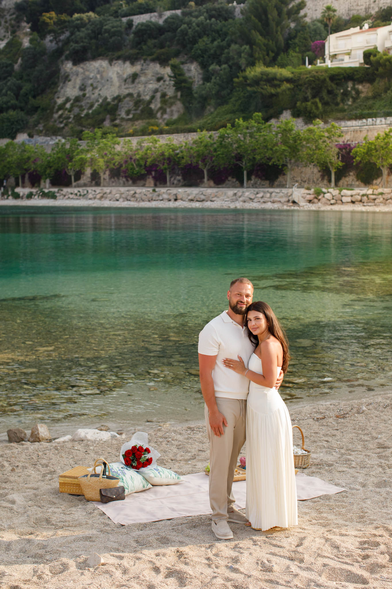The session concluded around 10.00. The timing, location, and setup worked perfectly, providing both a memorable proposal experience and a beautiful series of images to capture the day. Sunrise proposals on the Riviera, especially in June, remain one of the best ways to enjoy privacy while taking advantage of stunning light and scenery.