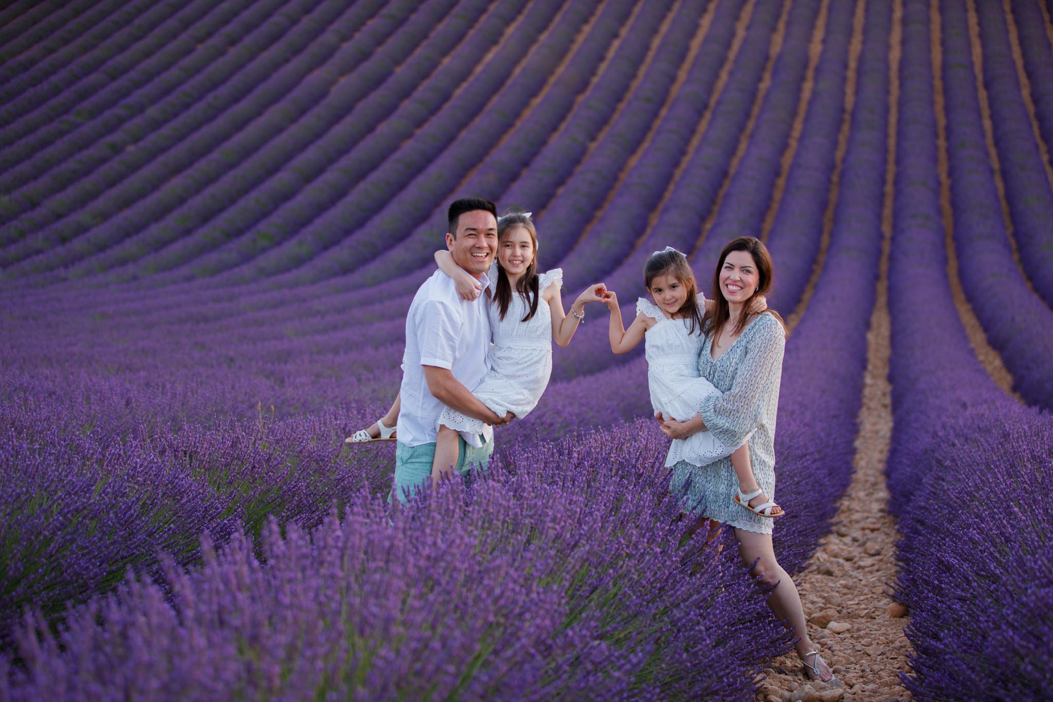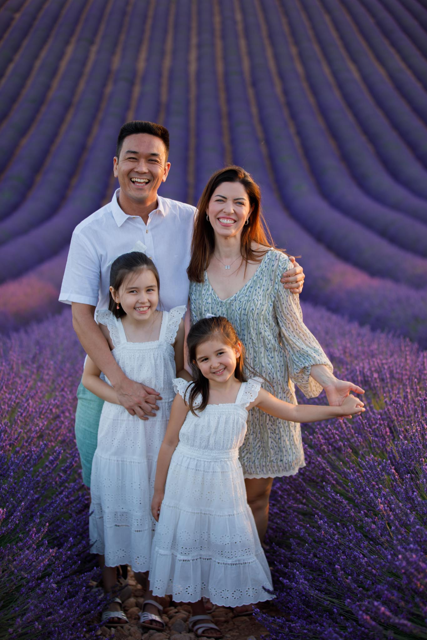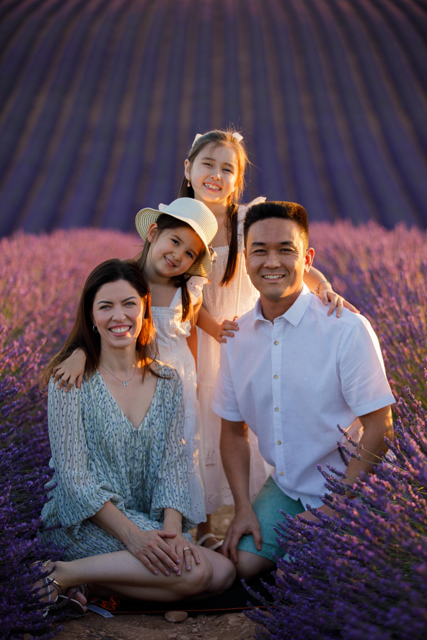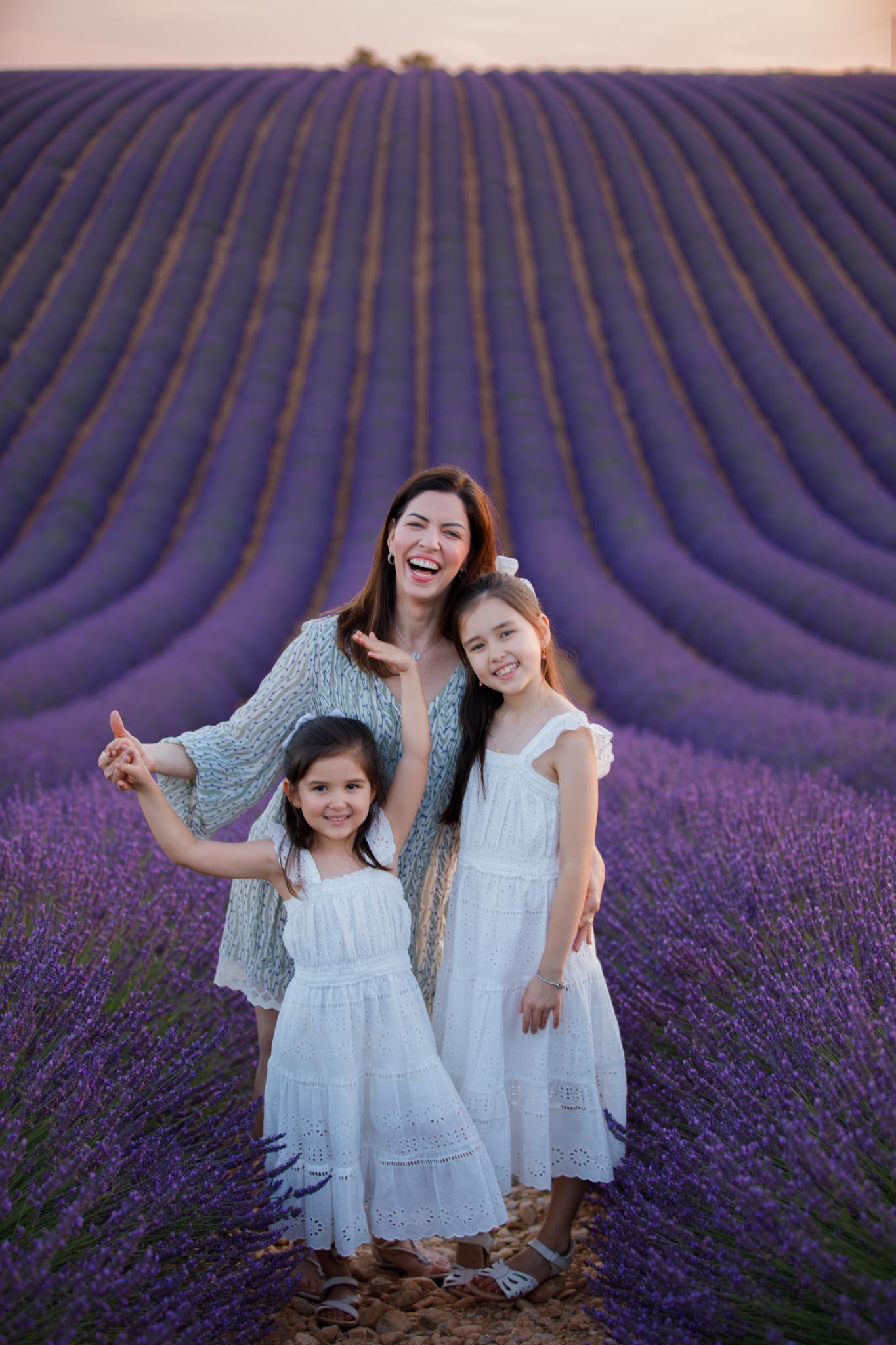We captured a family session in the lavender fields of Valensole, Provence, for a family of four with two adorable little girls in early July. For family shoots, one of the biggest factors that elevates the photos is colour coordination and outfits. When everyone wears complementary or matching clothing, it creates a cohesive, polished look that really pops in the photos.