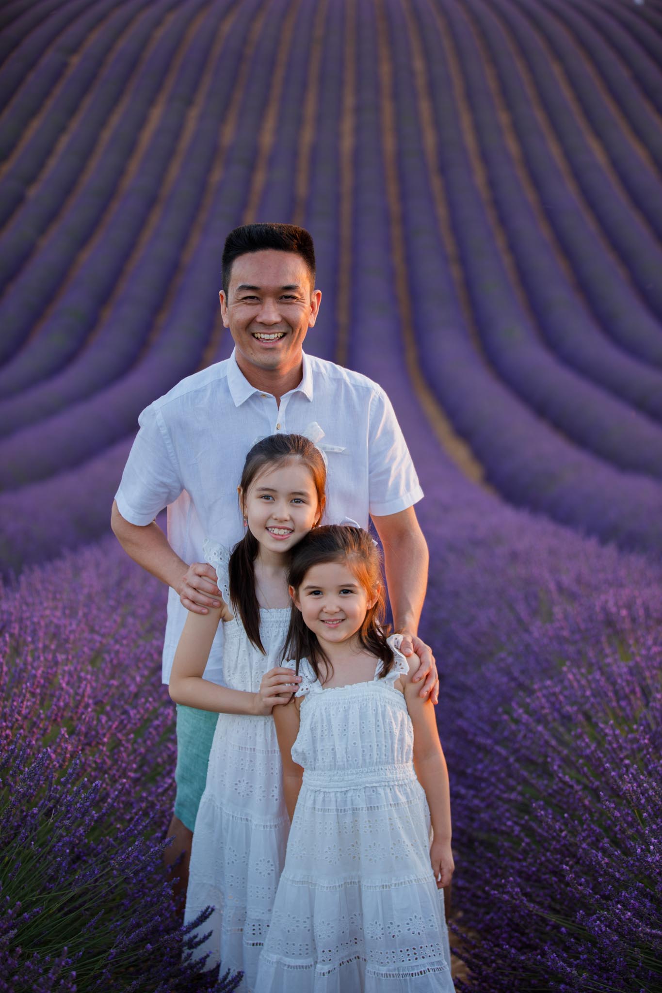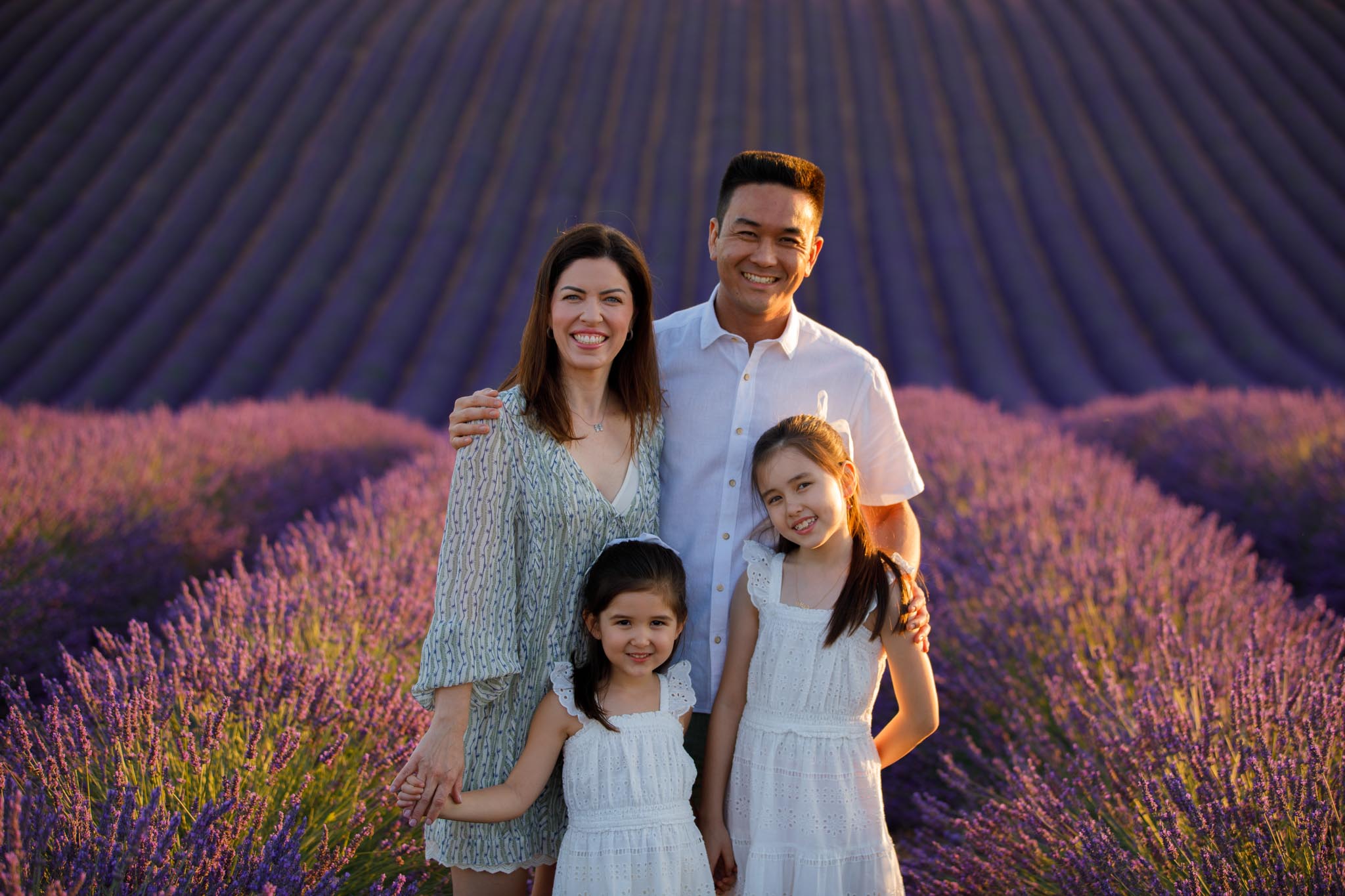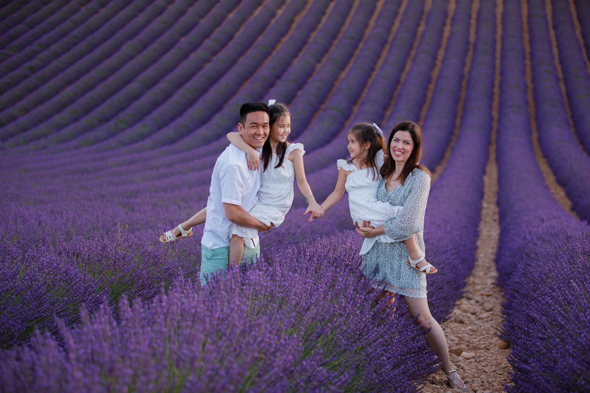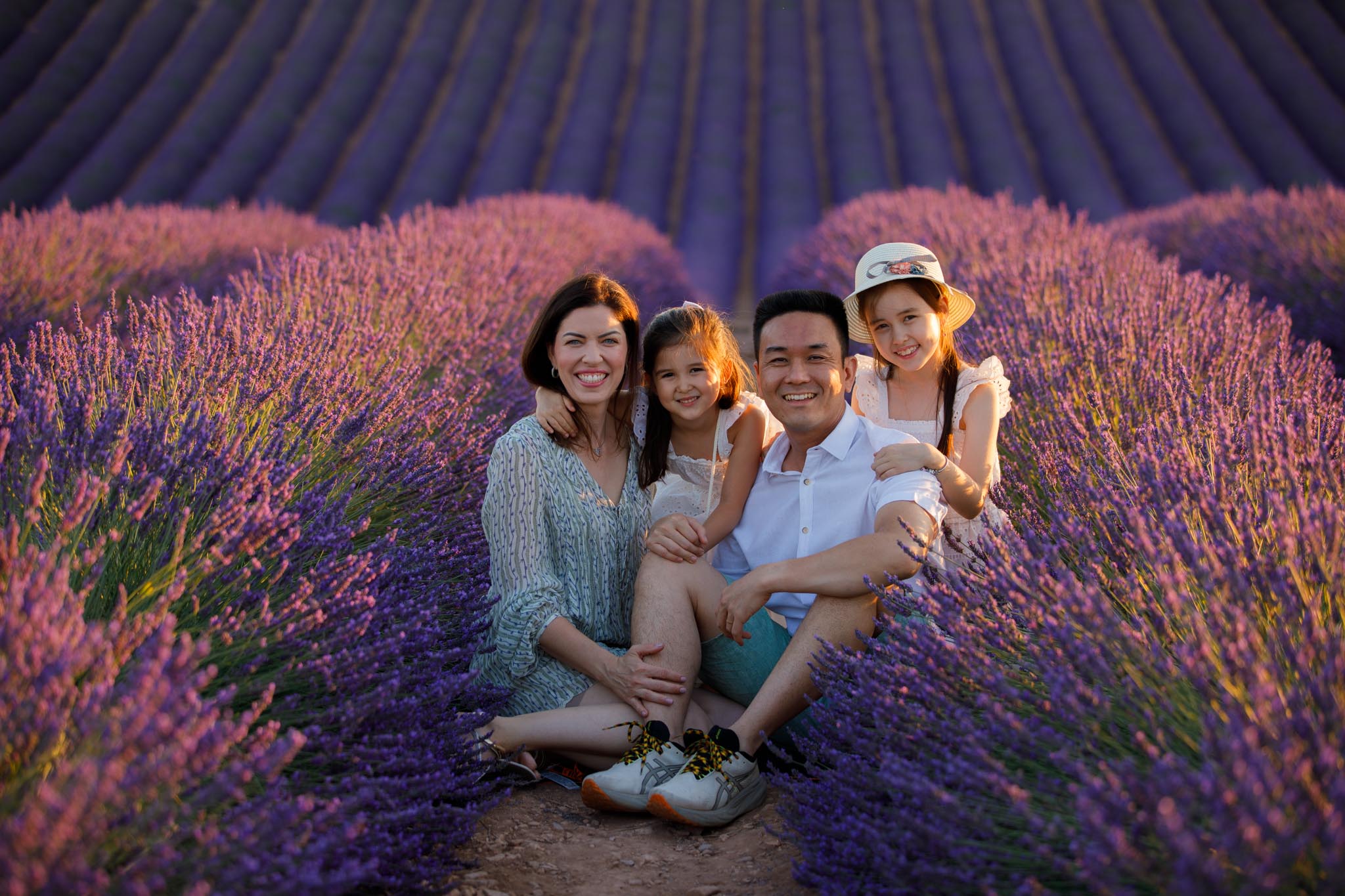 We captured a family session in the lavender fields of Valensole, Provence, for a family of four with two adorable little girls in early July. For family shoots, one of the biggest factors that elevates the photos is colour coordination and outfits. When everyone wears complementary or matching clothing, it creates a cohesive, polished look that really pops in the photos.